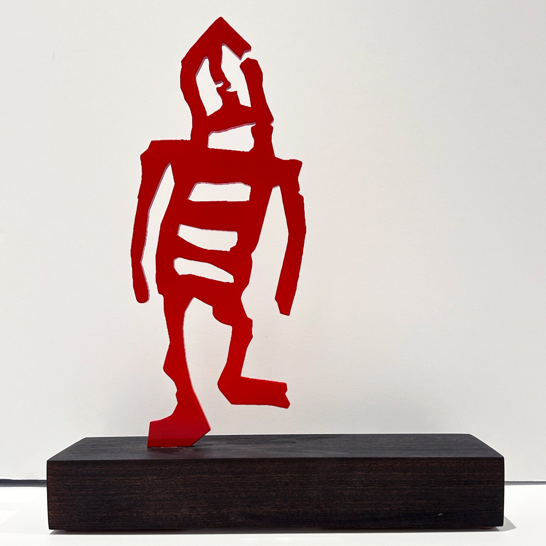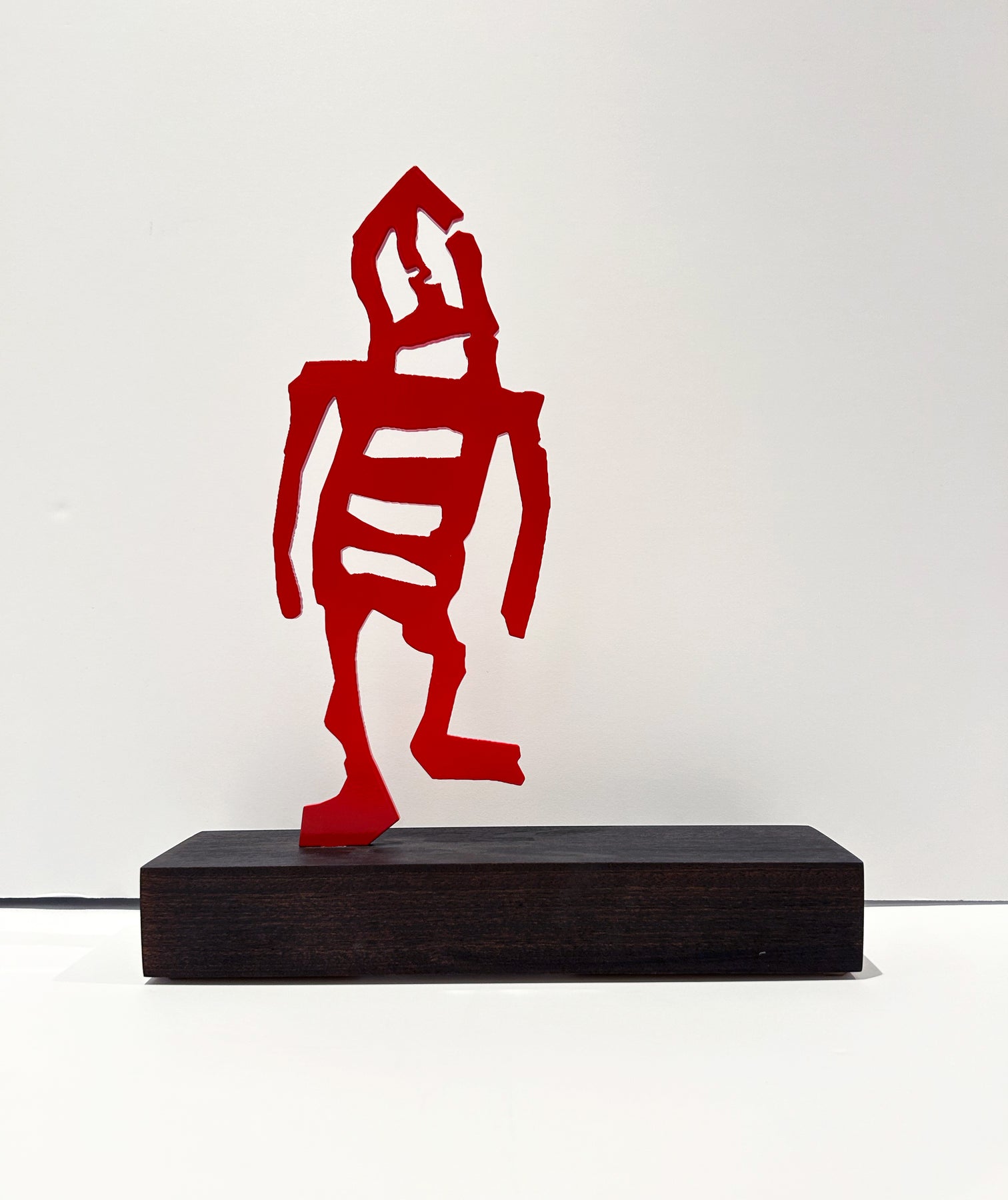 Medium: Laser cut powder-coated steel sculpture on wood base