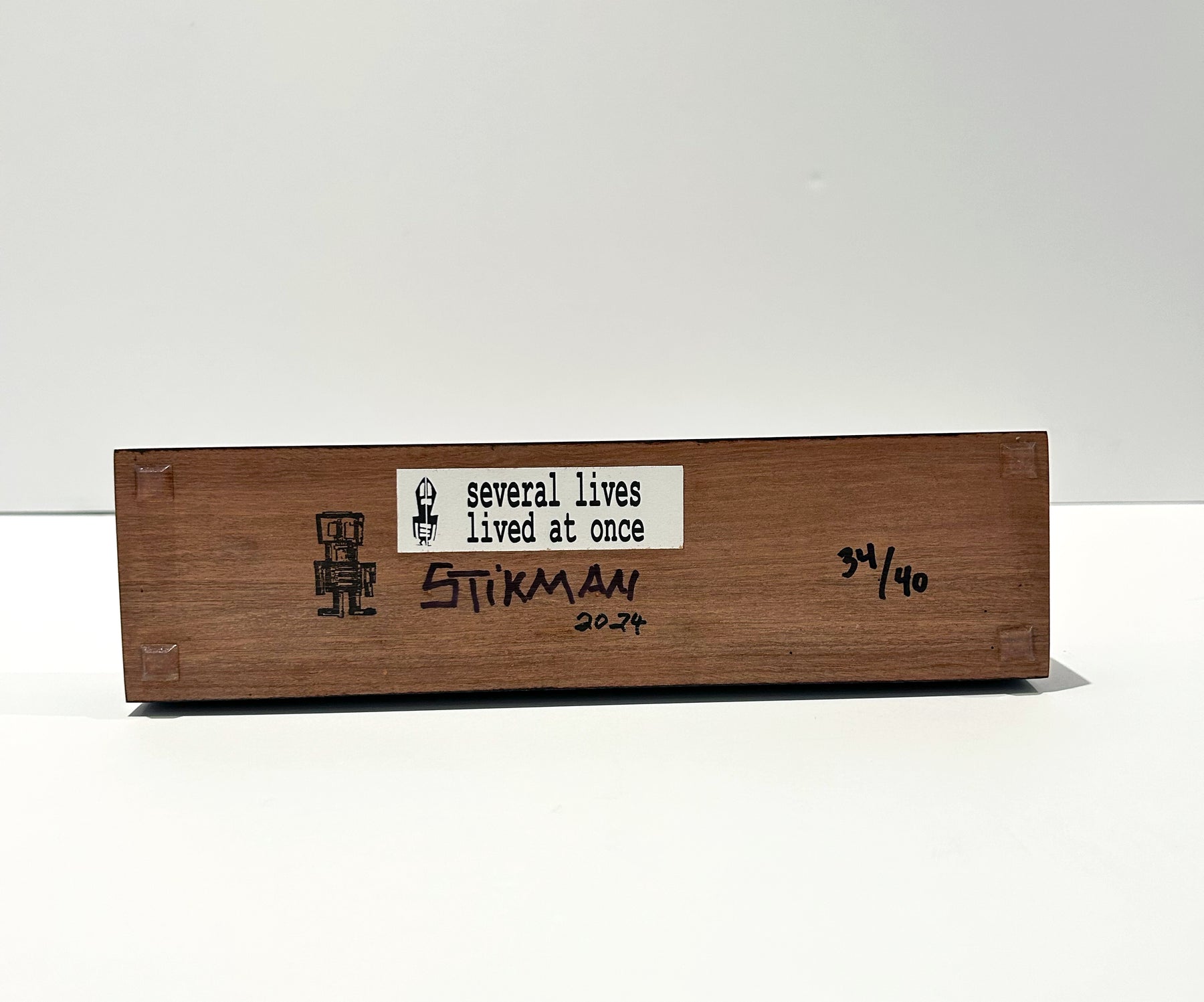 The self taught Artist who constructs little men made of sticks, known as stikman, has less of a spiritual cognition, and has an obscure fascination with urban decay. His goal may be to show that everything is ephemeral and nothing stays the same. He believes that art should speak for itself, hence he has maintained an anonymity—and allure—since living in the Germantown section of Philadelphia during college in 1970. He started to build his figurative stick entities in lower Manhattan the next year. Evolution forced by gravity, time and the vast expanse of human activity are interconnected in his work.