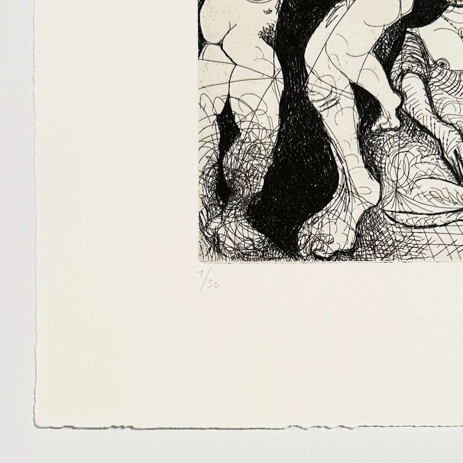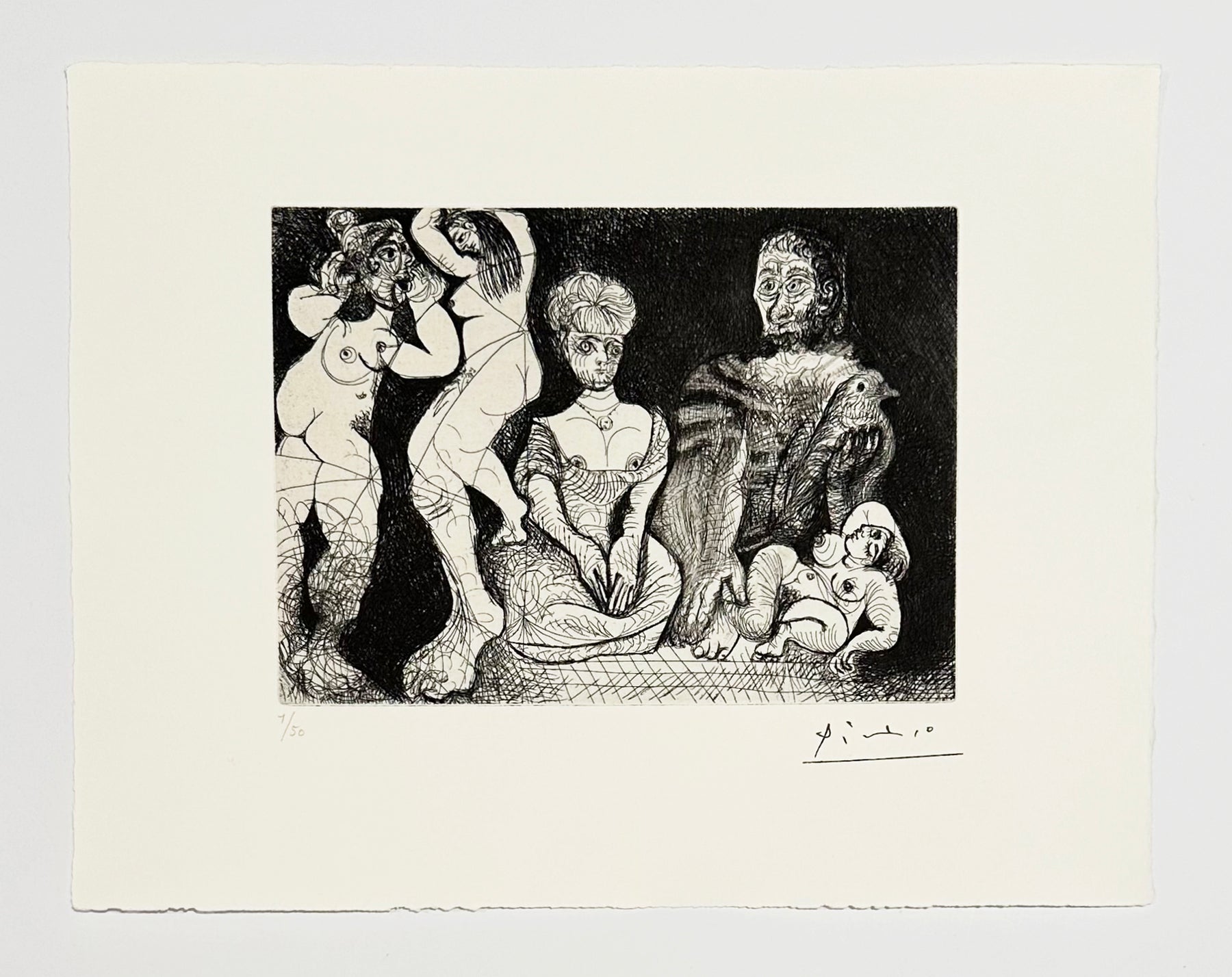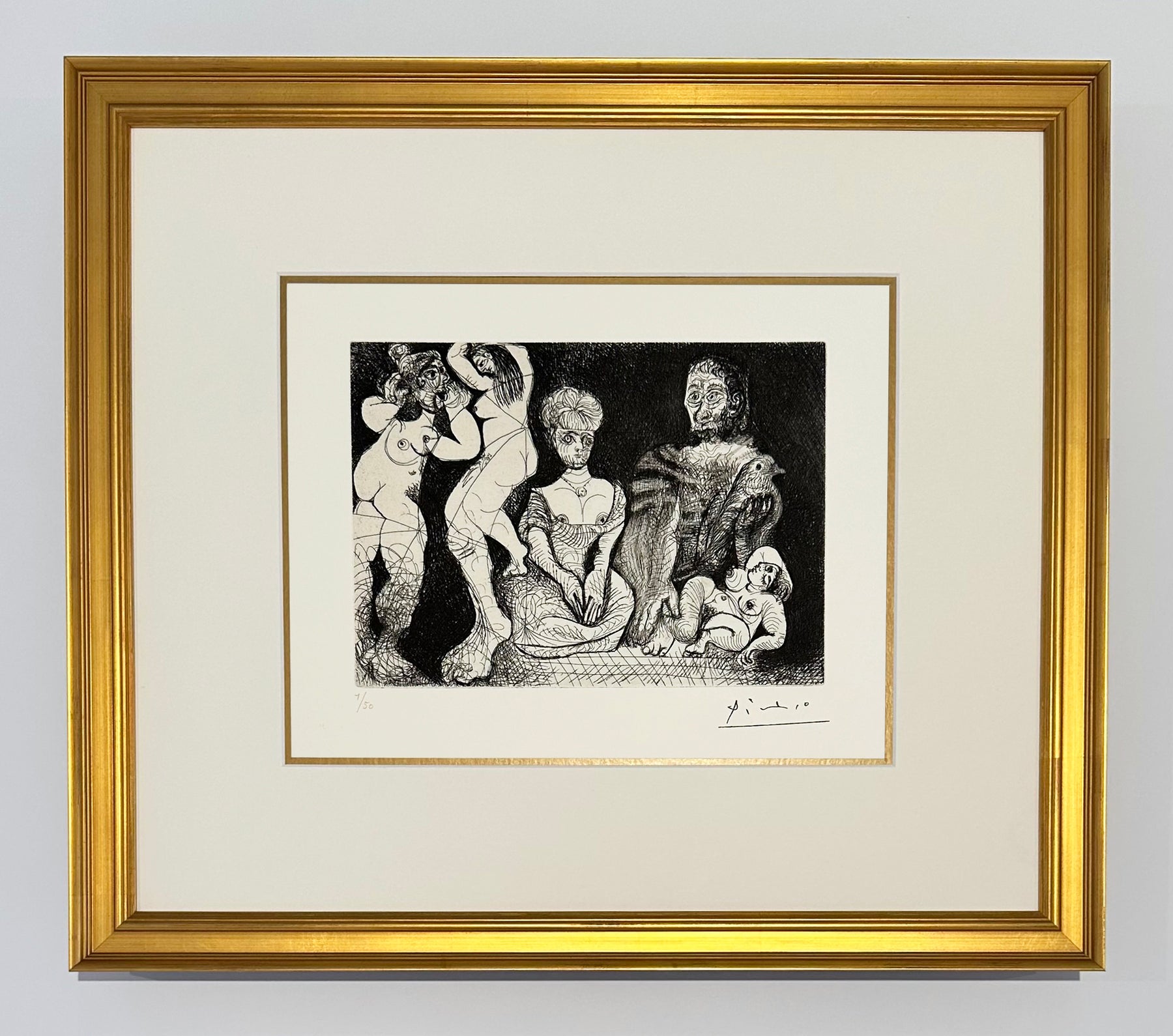 Pablo Picasso, Monument Funeraire d'un Sculpteur, avec sa Femme, son Pigeon Heraldique et une Sculpture, et Bacchantes, 1971 Series 156 Portfolio, (Baer 1872 V), 1970, Unsigned, Etching, Edition 1/50, 16 7/8" x 19 1/8" Framed Size, 9 7/8" x 12 7/8" Sheet Size, 5 3/4" x 8" Image Size