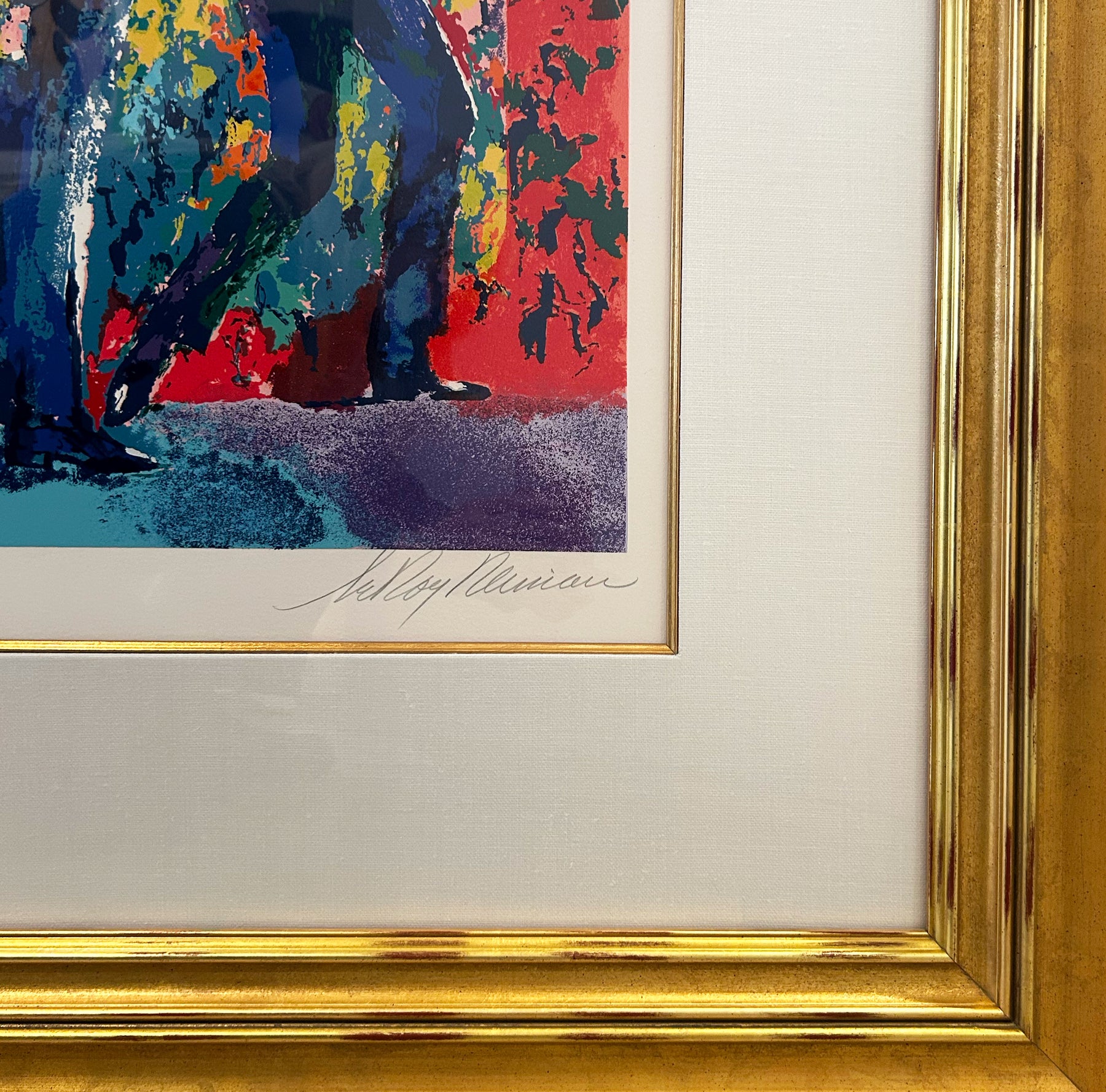 LeRoy Neiman was an American painter and printer whose kinetic, brightly-colored works of art illustrated many of the key figures and events in American sports and society throughout the second half of the twentieth century. Born on June 8th, 1921 in St. Paul, Minnesota, Neiman worked as a cook in the United States Army before he went to work producing sketches and paintings for a feature entitled "Man at His Leisure" that ran in Playboy magazine for the next 15 years. The column featured Neiman's impressions of sporting events, celebrities, and social occasions around the world, including the running of the bulls in Spain, the Beatles on Carnaby Street in London, and the Cannes Film Festival. His vivid and energetic painting style—developed from experimenting with flowing daubs of quick-drying house paint—was well-suited to capturing single frames of fast-moving action, and he came to be known as an "American Impressionist." Neiman covered seminal events such as the 1972 chess match between Boris Spassky and Bobby Fischer, and was commissioned to be filmed sketching on live television at five consecutive Olympic Games and numerous Super Bowls. A prolific artist of boundless creative energy, Neiman also produced portraits of the likes of Muhammad Ali, Joe Namath, Leonard Bernstein, John Lennon, and Sylvester Stallone. He also published a number of books on athletics, art, and travel; his memoir, "All Told: My Life Among Athletes, Playboys, Bunnies, and Provocateurs" was published in 2012, the same year as his death. An artist whose popularity rivaled American icons such as Norman Rockwell and Andrew Wyeth, LeRoy Neiman proved to be a brilliant interpreter of feats and figures around the world whose work still carries its expressive, emotional charge today.