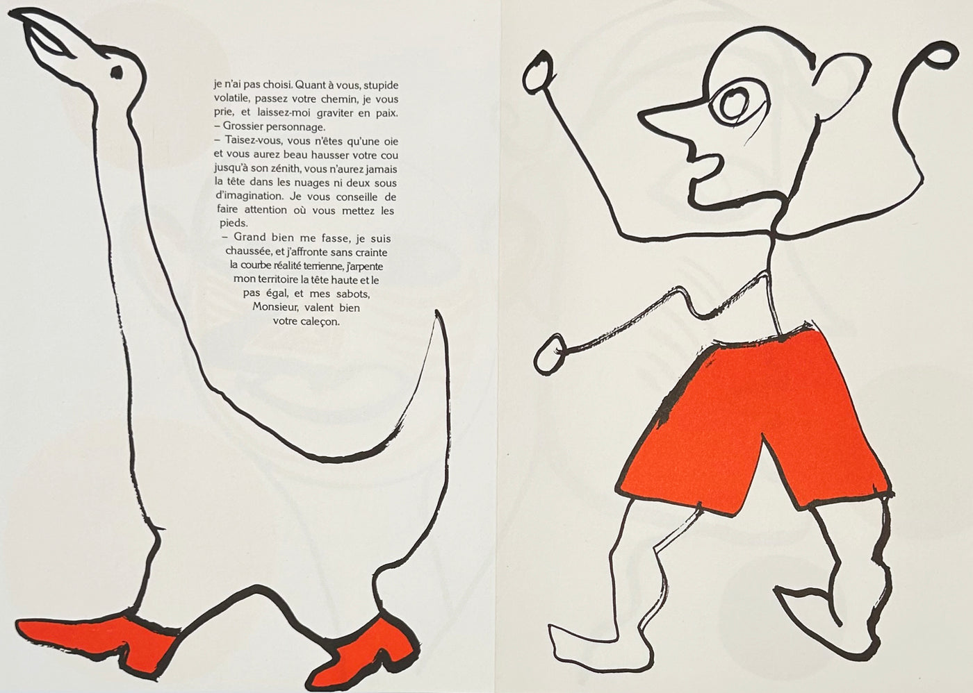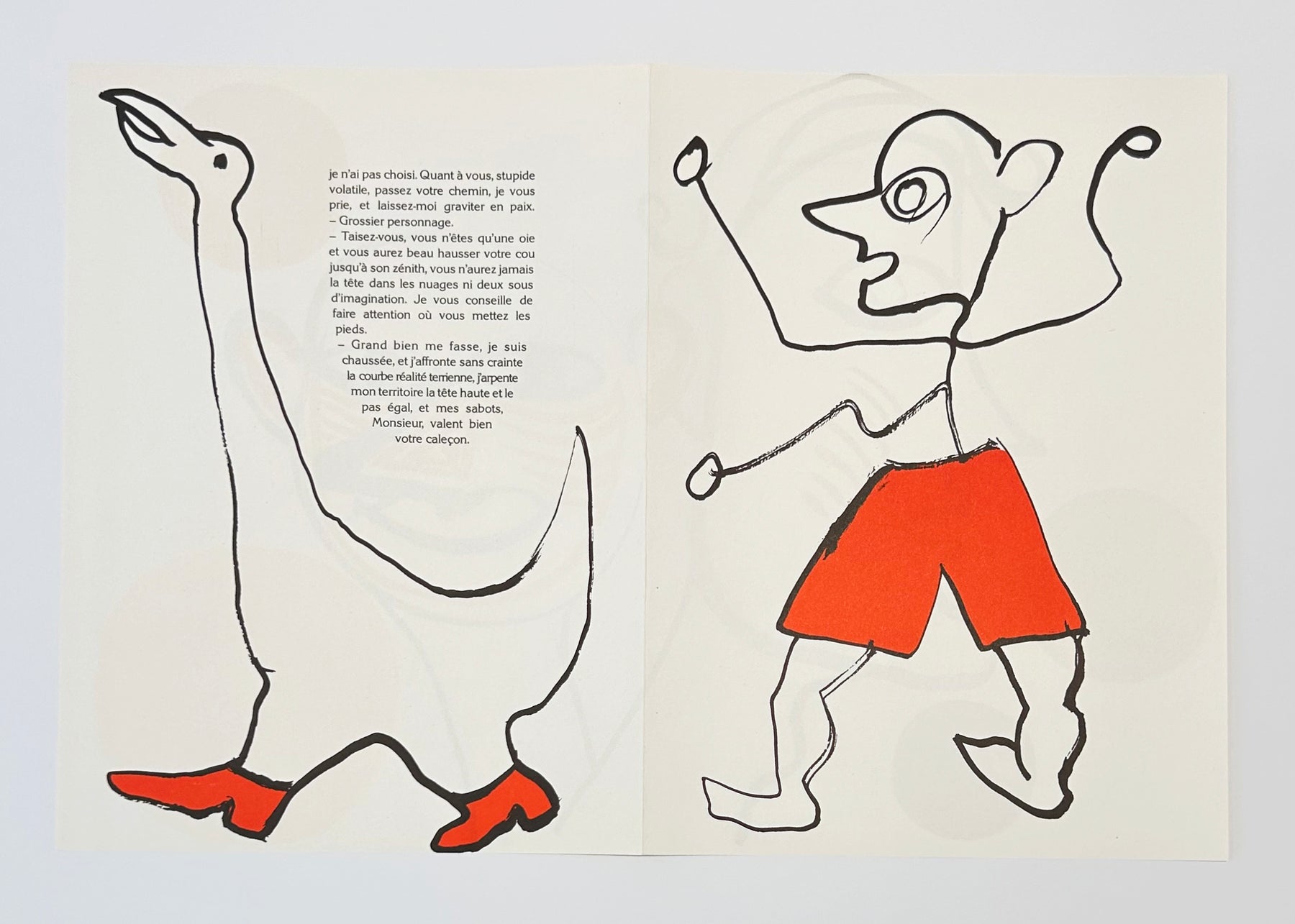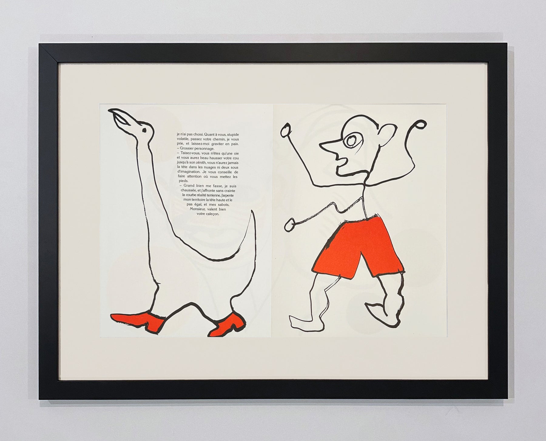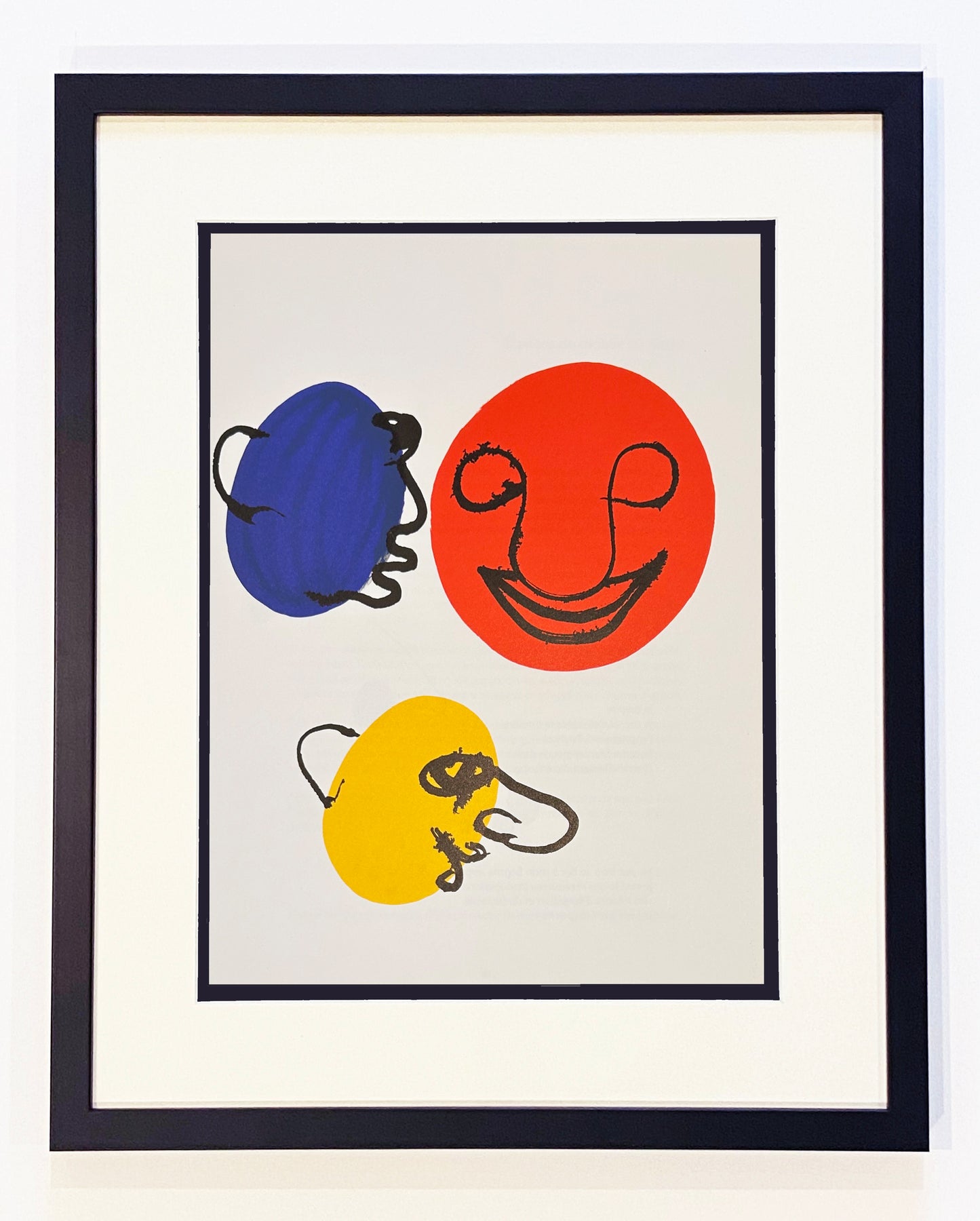 Alexander Calder was born July 22, 1898, in Lawnton, Pennsylvania. Despite coming from a family of artists -his father was a sculptor and his mother a painter- Calder did not originally intend to become an artist. After high school, he enrolled at the Stevens Institute of Technology and graduated in 1919 with a degree in engineering. He worked as a hydraulic and automotive engineer, timekeeper in a logging camp, and fireman in a ship's boiler room. While serving in the latter occupation, on a ship from New York bound for San Francisco, Calder awoke on the deck to see both a sunrise and a full moon. This image remained with Calder, and would later appear in several of his works. Calder pursued art shortly thereafter. In 1923, he moved to New York and enrolled at the Art Students' League. He also took a job illustrating for the National Police Gazette, which sent him to the Ringling Brothers and Barnum & Bailey Circus to sketch circus scenes for two weeks in 1925. The circus became a lifelong interest of Calder's, and after moving to Paris in 1926, he created the Cirque Calder, a complex and unique body of art. The assemblage included diminutive performers, animals, and props he had observed at the Ringling Brothers Circus. Fashioned from wire, leather, cloth, and other found materials, the Cirque was designed to be manipulated manually by Calder himself. The work predated the modern notion of performance art by nearly forty years. Calder developed working with wire in later works. It was from wire that he soon began to sculpt portraits of his friends and public figures of his day. His first solo gallery whow was in 1928 at the Weyhe Gallery in New York. He soon exhibited in Paris, Berlin, and elsewhere, and met such artists as Joan Miro, Fernand Leger, James Johnson Sweeney, Marcel Duchamp, and Piet Mondrian. Calder later claimed that it was meeting Mondrian and seeing his geometric painting and collages that "shocked" him toward total abstraction. He thereafter delved into abstraction, and in the fall of 1931 created a series of objects that were moved by systems of cranks and motors. Marcel Duchamp called these objects 'mobiles.' Calder later eliminated the mechanical elements of these works when he realized mobiles could move autonomously via the air's currents. It was in Paris that he also met the renowned printmaker Stanley William Hayter. While Calder is known for his sculpture, he was also talented painter, engraver, and printmaker. Throughout the 1940s and 1950s, Calder produced gouache paintings depicting the same swirling, abstract forms found in his mobiles. Numerous lithographs were produced from these paintings. In 1933, Calder left France and returned to the United States, buying a farmhouse in Roxbury, Connecticut and turning it into a studio. He also attempted large, outdoor sculptures in that decade. In 1937, Calder created his first large bolted stabile fashioned entirely from sheet metal, which was titled Devilfish. After its exhibition at the Pierre Matisse Gallery, Calder soon received commissions for works to be exhibited at the Parisian World Fair and the Museum of Modern Art in New York. In 1945, he made a series of small-scale works. Duchamp saw these works while visiting Calder's studio. Inspired by the notion of art objects that could be easily dismantled, mailed to Europe, and re-assembled for an exhibition, Duchamp planned a Calder show at Galerie Louis Carre. in Paris. The renowned French author Jean-Paul Sartre wrote his now-famous essay on Calder's mobiles for the exhibition catalogue. Galerie Maeght in Paris held a Calder show in 1950, and subsequently became his exclusive dealer in France. The Guggenheim Museum in New York held a retrospective for Calder in 1964, and Fondation Maeght, in Saint-Paul-de-Vence, France, held its own retrospective in 1969. Calder died on November 11, 1976 in New York.