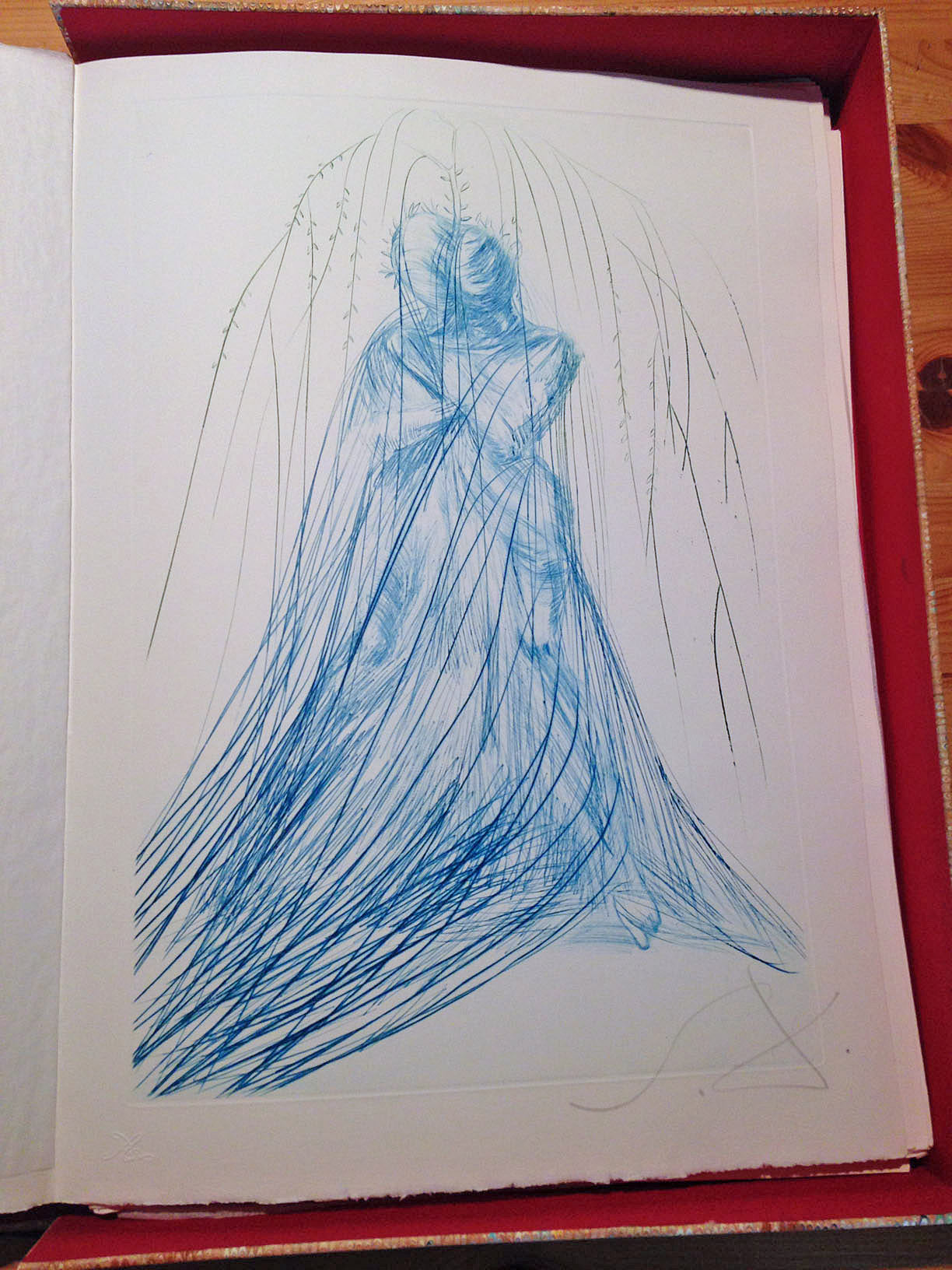 The surrealist Salvador Dali is considered to be one of the masters of 20th-Century art. His work juxtaposes a meticulous academic technique with depictions of hallucinatory characters in fantastic dreamscapes. He described his art as 'hand-painted dream photographs,' and had certain preferred and recurring images, such as the human figure with half-open drawers protruding from it, burning giraffes, and watches bent and flowing as if made from melting wax. Salvador Domenec Felip Jacint Dali Domenech was born May 11, 1904 in Figueras, Catalonia, Spain. His father, a prominent notary, encouraged his artistic inclinations and arranged for drawing lessons at age ten from the Spanish impressionist painter, Ramon Pichot. At eighteen, Dali moved to Madrid to study painting at the Academy of Arts. He developed a reputation as an eccentric, attracting attention with his manner of dress, hairstyle, and provocative comments on art. The artist experimented with forms of Cubism and Dadaism during his studies. Dali was expelled before final exams, after asserting that those judging his work were not competent enough to grade him. After leaving the Academy, Dali went to Paris where he met Spanish painters Pablo Picasso and Joan Miro. He established himself as the principal figure of a group of surrealist artists grouped around French poet Andre Breton. The surrealists hailed what Dali called the 'paranoiac-critical' method of accessing the subconscious for greater artistic creativity. Essentially, it is the ability of the artist or the viewer to perceive multiple images within the same configuration and a process through which Dali found new and unique ways to view the world around him. Years later Breton turned away from Dali, accusing him of supporting fascism, excessive self-presentation, and financial greediness. He was officially expelled from the group in 1934, in part because of his controversial political views, and was henceforth spoken about by the surrealists in past-tense, as if he were dead. Breton later coined the nickname Avida Dollars for Dali, an anagram of his name meaning 'greedy for dollars.' In addition to Surrealism, psychologist Dr. Sigmund Freud's theory of the unconscious -introduced to Dali in Freud's book The Interpretation of Dreams- also strongly influenced Dali's work and philosophy. Throughout the 1920s and early 1930s, Dali perfected the personal style that made him famous: a world of the unconscious that is recalled during one's dreams. In his work, he would juxtapose incongruous, unrelated, and often bizarre objects against desolate landscapes. This disturbing blend of precise realism and dreamlike fantasy became his hallmark. In 1929, Dali met his wife-to-be Gala. Gala (born Elena Ivanovna Diakonova), a Russian immigrant eleven years his senior, was then married to the surrealist poet Paul Éluard. Dali and Gala were married in a civil service in 1934, and again in a church after Eluard's death. Gala was Dali's muse, inspiration, lover, and model, as well as his business manager. Dali had his first one-man show in New York in 1933. With a $500 loan from Pablo Picasso, Dali was able to visit the United States for the first time a year later. In the late 1930s, he made several trips to Italy to study the art of the sixteenth and seventeenth centuries, eventually becaming an admirer of Raphael. In 1940, Dali and Gala claimed permanent residency in the United States in order to evade World War II. During his eight years in the U.S., Dali found great success, having a series of spectacular exhibitions, including a retrospective show at the Museum of Modern Art in New York. He also understood how the media worked and used it to its full potential. His attention seeking comments and flamboyant appearance -a long cape, walking stick, haughty expression, and upturned waxed mustache- helped raise him to celebrity status. He once famously said: "Every morning upon awakening, I experience a supreme pleasure: that of being Salvador Dali." His persona brought him numerous patrons. He executed portraits commissioned by celebrities such as Helena Rubinstein or Jack Warner, designed jewelry for Coco Chanel, and even storyboarded the Walt Disney short film Destiny and designed a dream sequence for Alfred Hitchcock's Spellbound. Dali had been producing limited edition prints as early as the 1930s, however the images he created in the 1960s with publishers Sidney and Phyllis Lucas are considered by collectors the apex of Dali's lithographs. His publishers encouraged the incorporation of classical themes with Surrealism, and together they assembled fascinating graphic works. Gala died in 1982, and Dali's health deteriorated thereafter. He suffered from palsy, and had injuries from a suspicious fire in his house in Pubol in 1984. The end of his life was spent in seclusion, first in Pubol and later in his apartments at Torre Galatea. Dali died on January 23, 1989 in his birth town, Figueras.