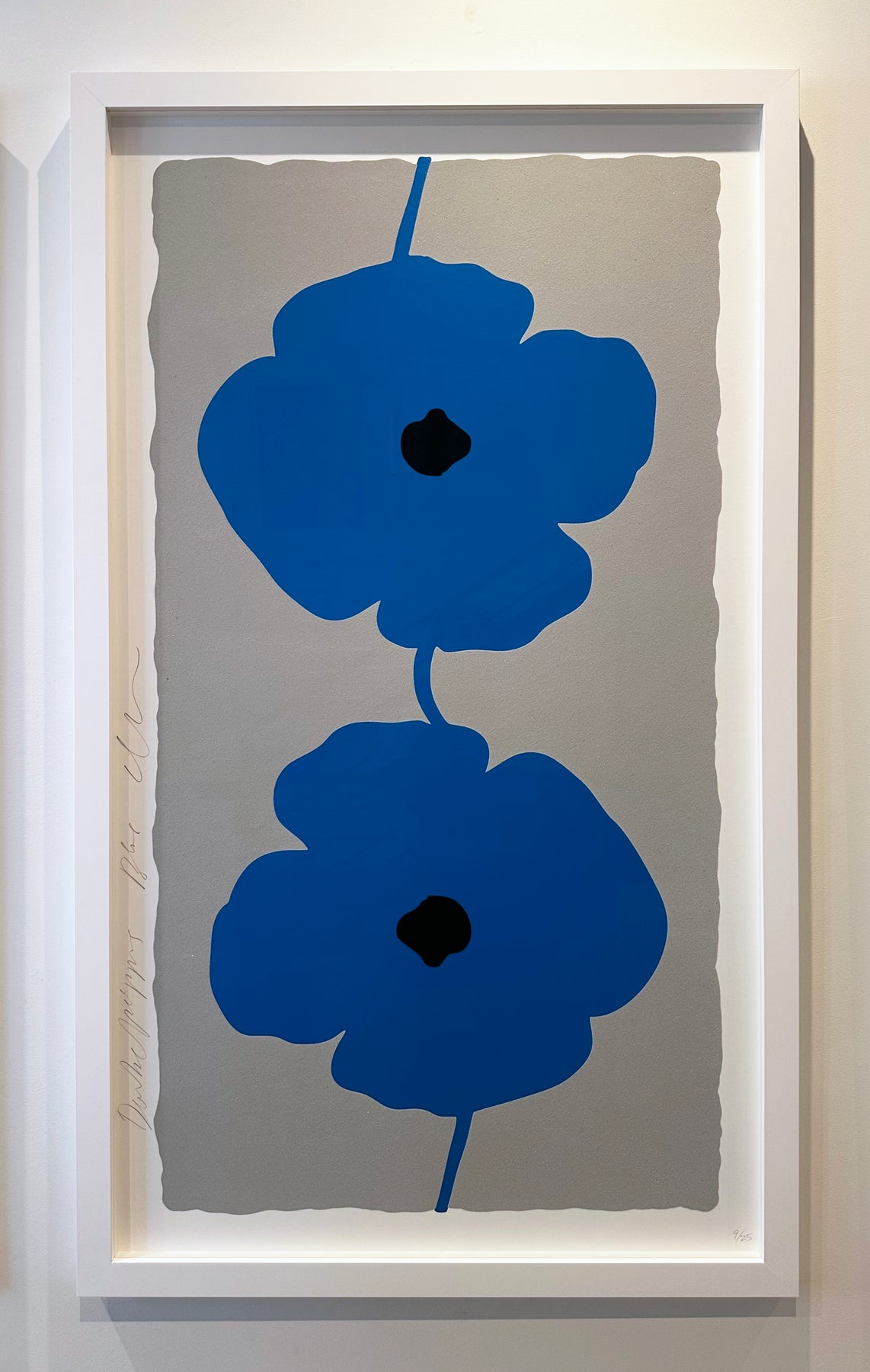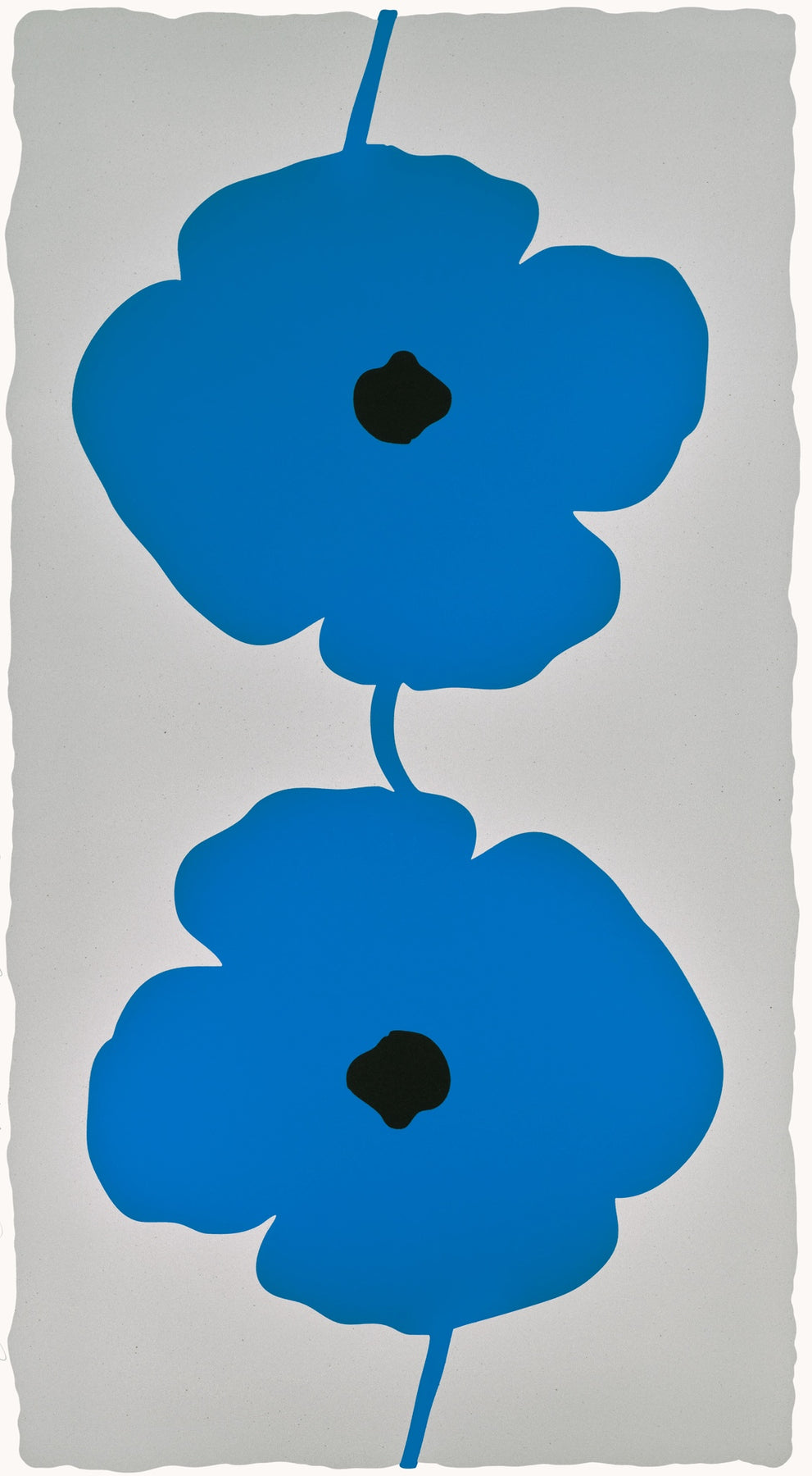 Donald Sultan, Blue Double Poppies, 2025 Double Poppies Portfolio, 2025, Signed, Silkscreen with enamel inks, flocking, and sand on Rising 4-ply museum board, Edition 9/25, 55 1/4" x 32 5/8" Framed Size, 52 1/2" x 30" Sheet Size, 48 1/2" x 26" Image Size