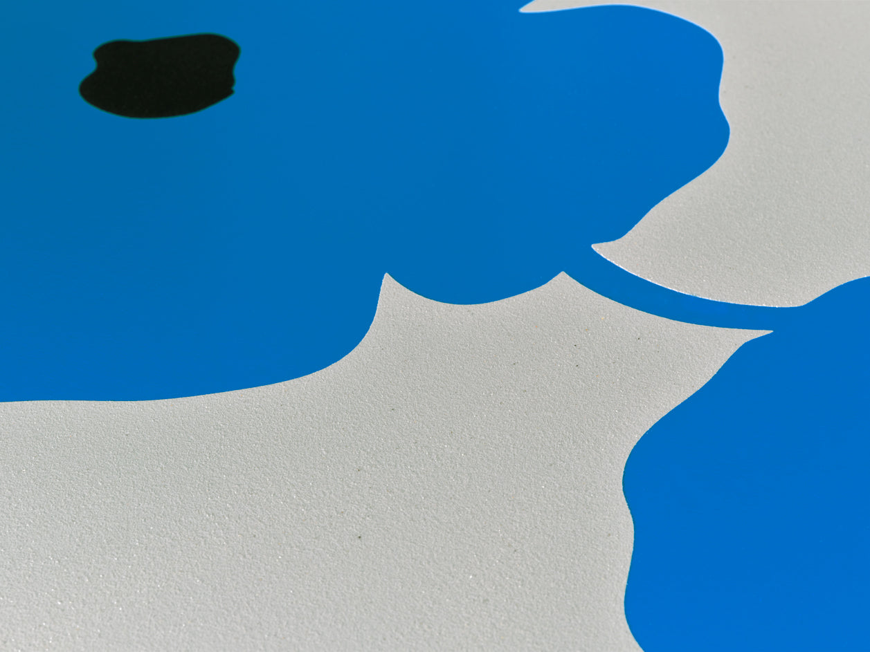 Medium: Silkscreen with enamel inks, flocking, and sand on Rising 4-ply museum board