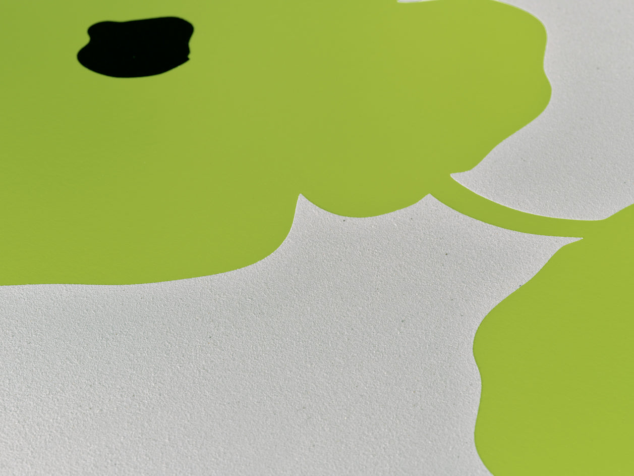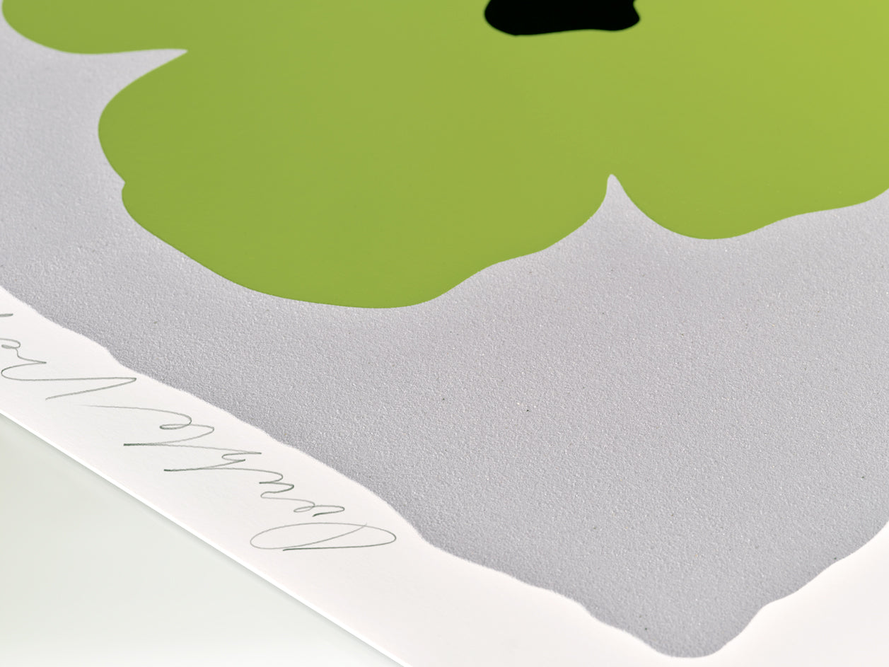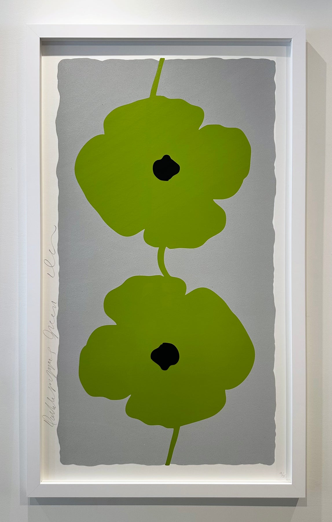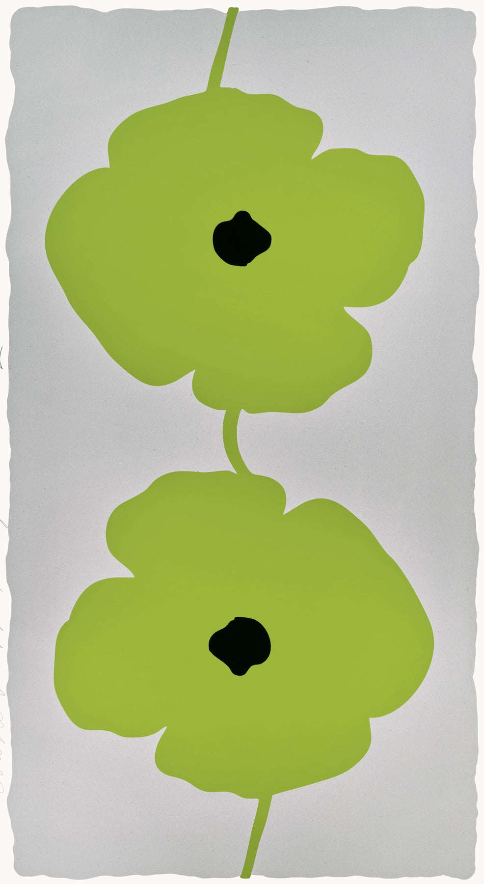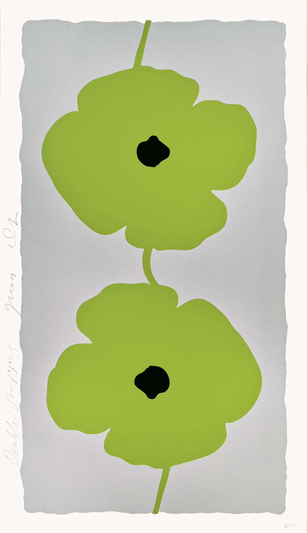 Donald Sultan, Green Double Poppies, 2025 Double Poppies Portfolio, 2025, Signed, Silkscreen with enamel inks, flocking, and sand on Rising 4-ply museum board, Edition 25, 55 1/4" x 32 5/8" Framed Size, 52 1/2" x 30" Sheet Size, 48 1/2" x 26" Image Size