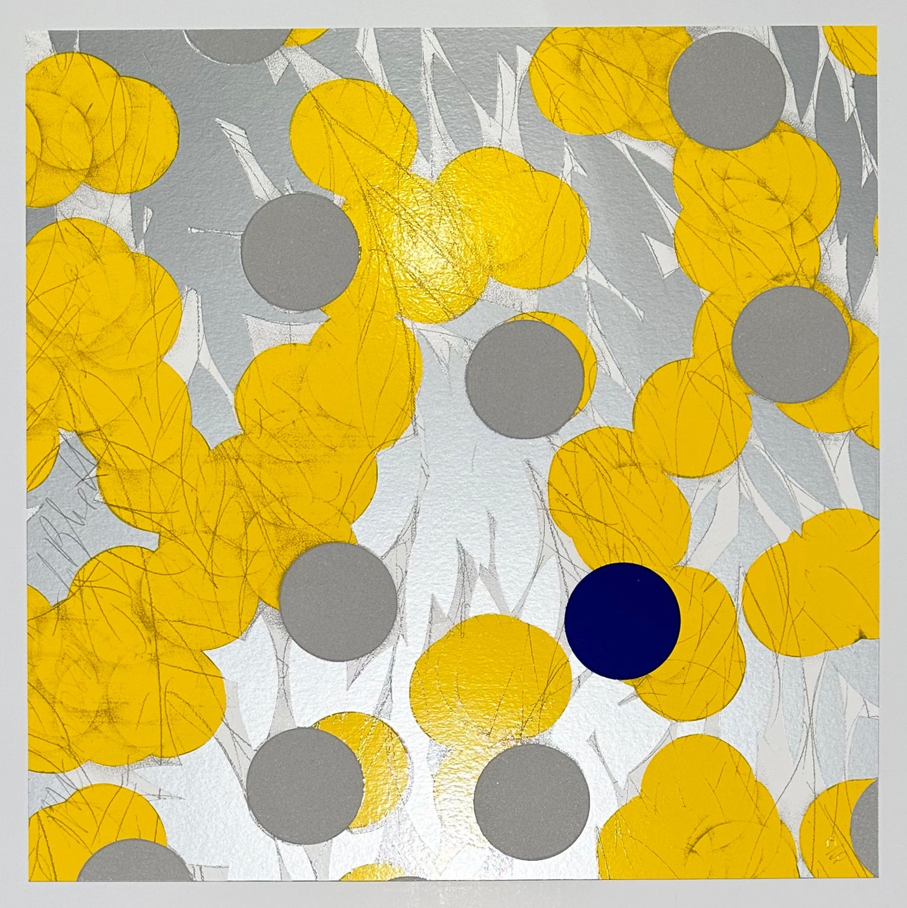 Medium: Color silkscreen with enamel inks, graphite powders, and sand on 4-ply museum board