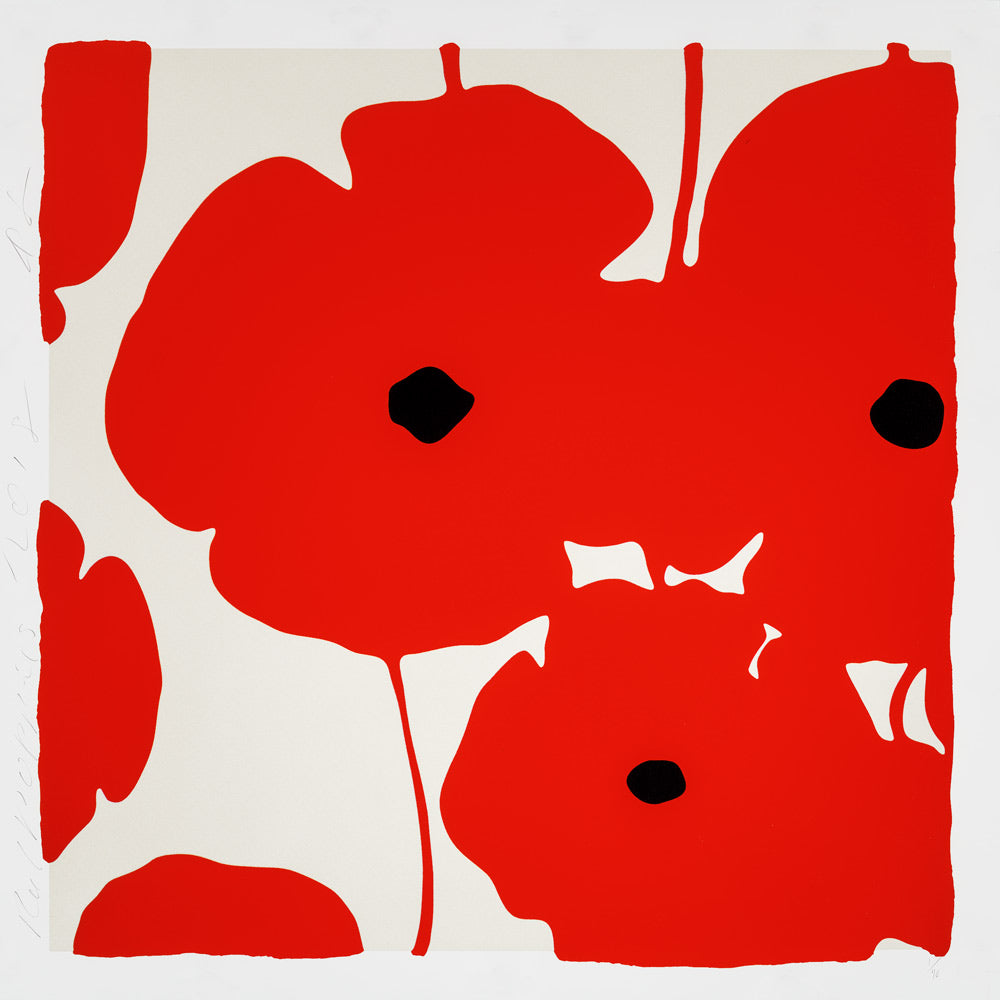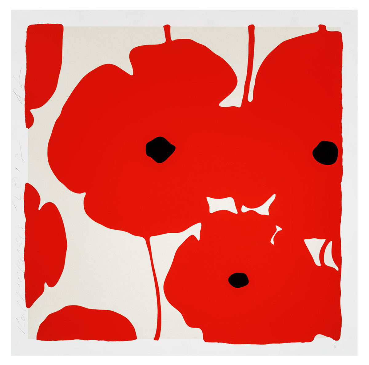 Donald Sultan, Red Poppies, 2018, 2018 Four Poppies Portfolio, 2018, Signed, Color silkscreen with enamel inks, flocking, and tar-like texture on 2-ply museum board, Edition AP 10/14, 39 1/2" x 39 1/2" Framed Size, 39" x 39" Sheet Size