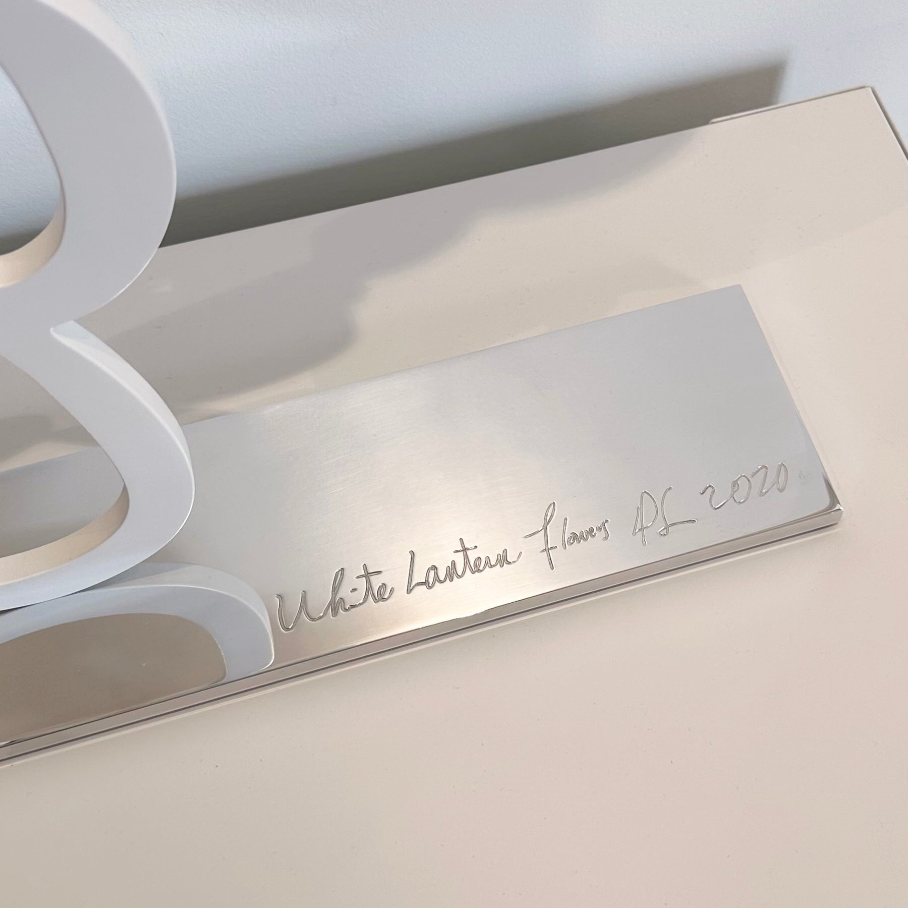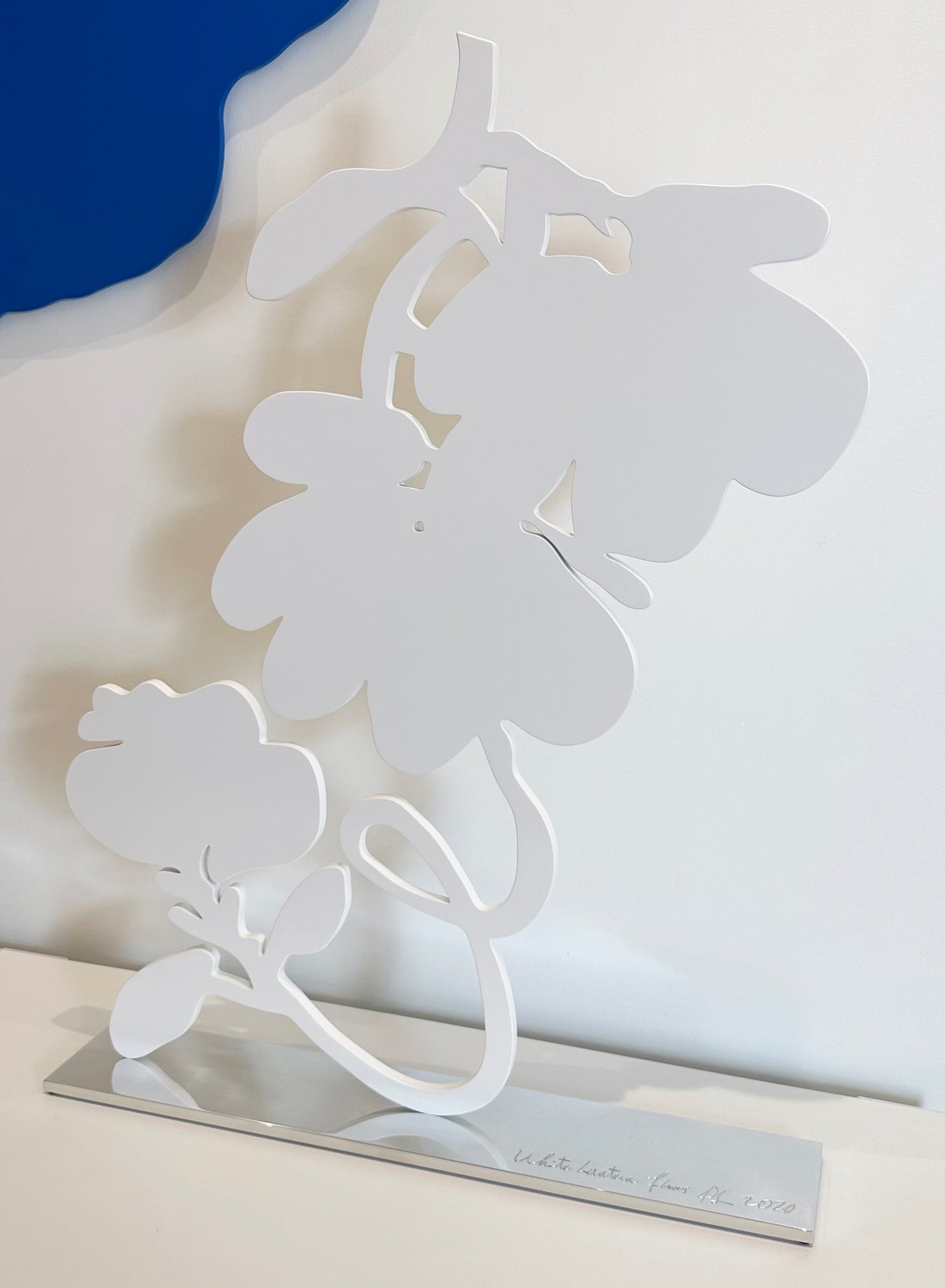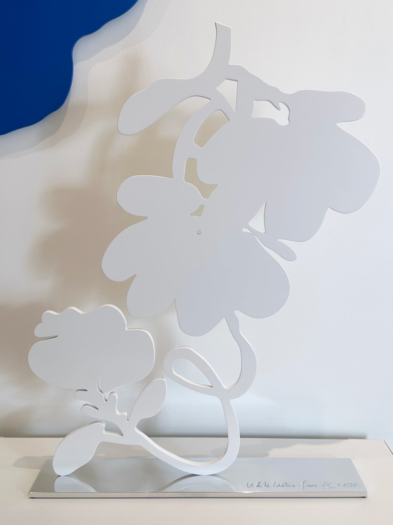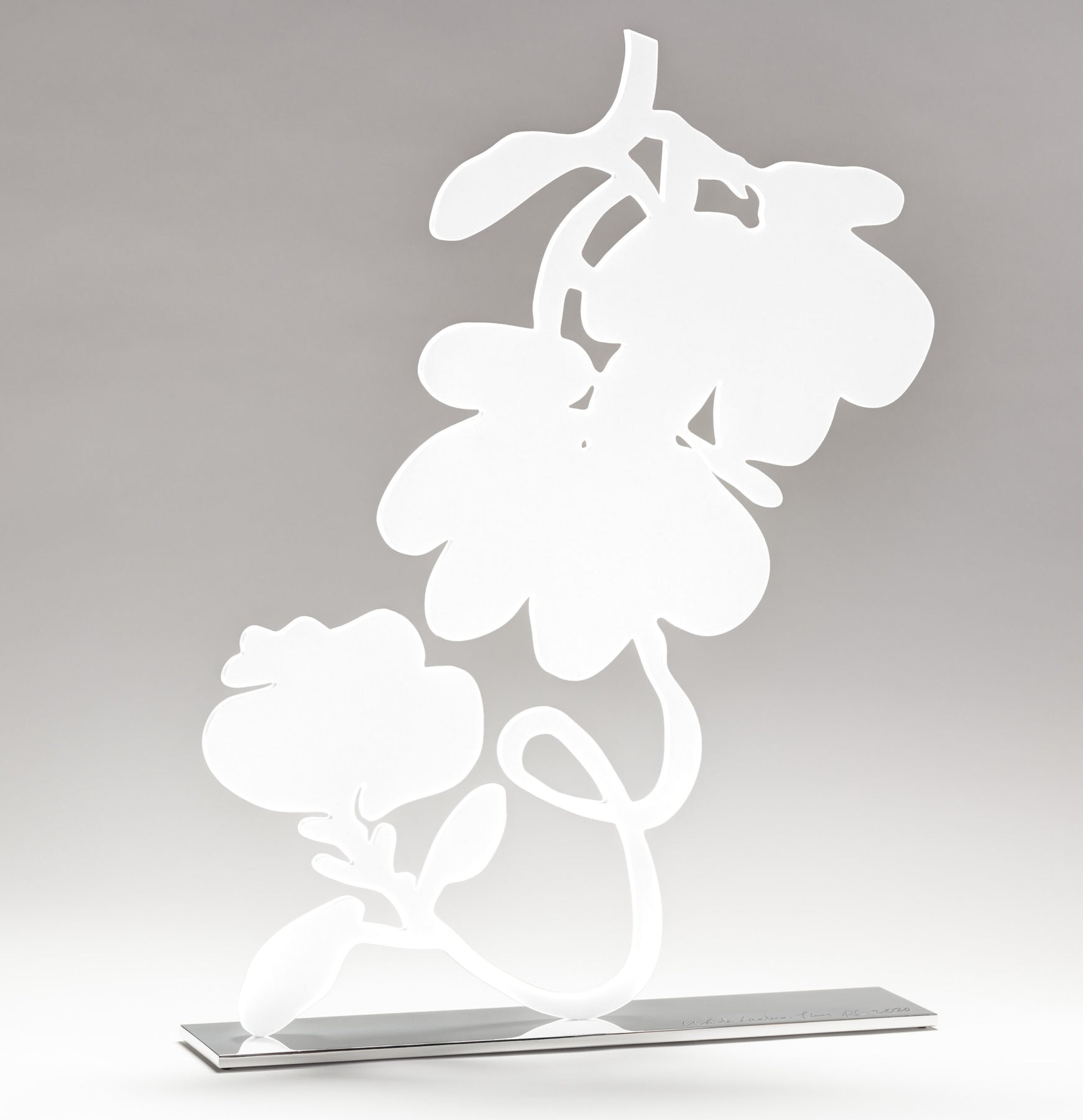 Medium: Shaped aluminum sculpture with white powder coat on polished aluminum base