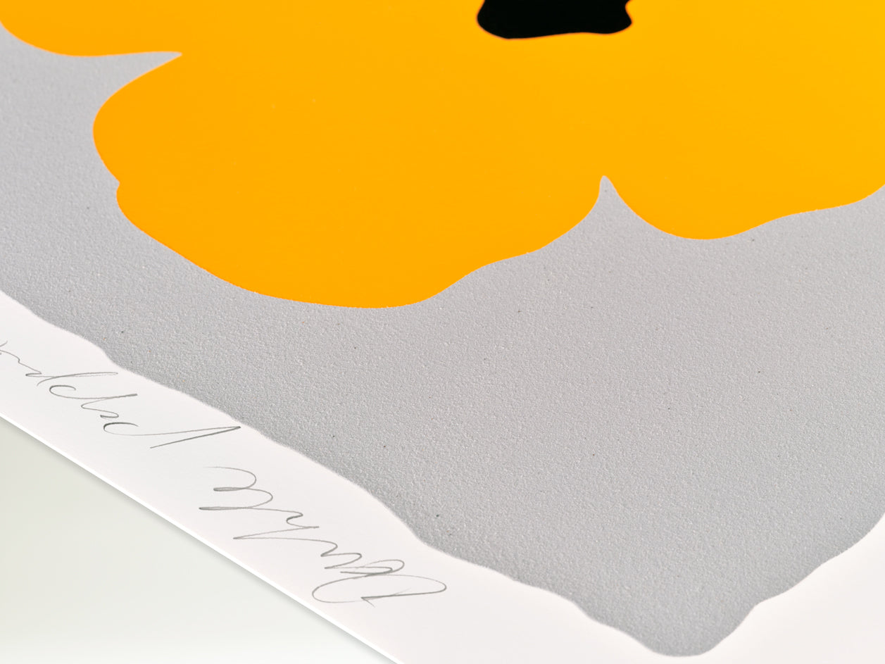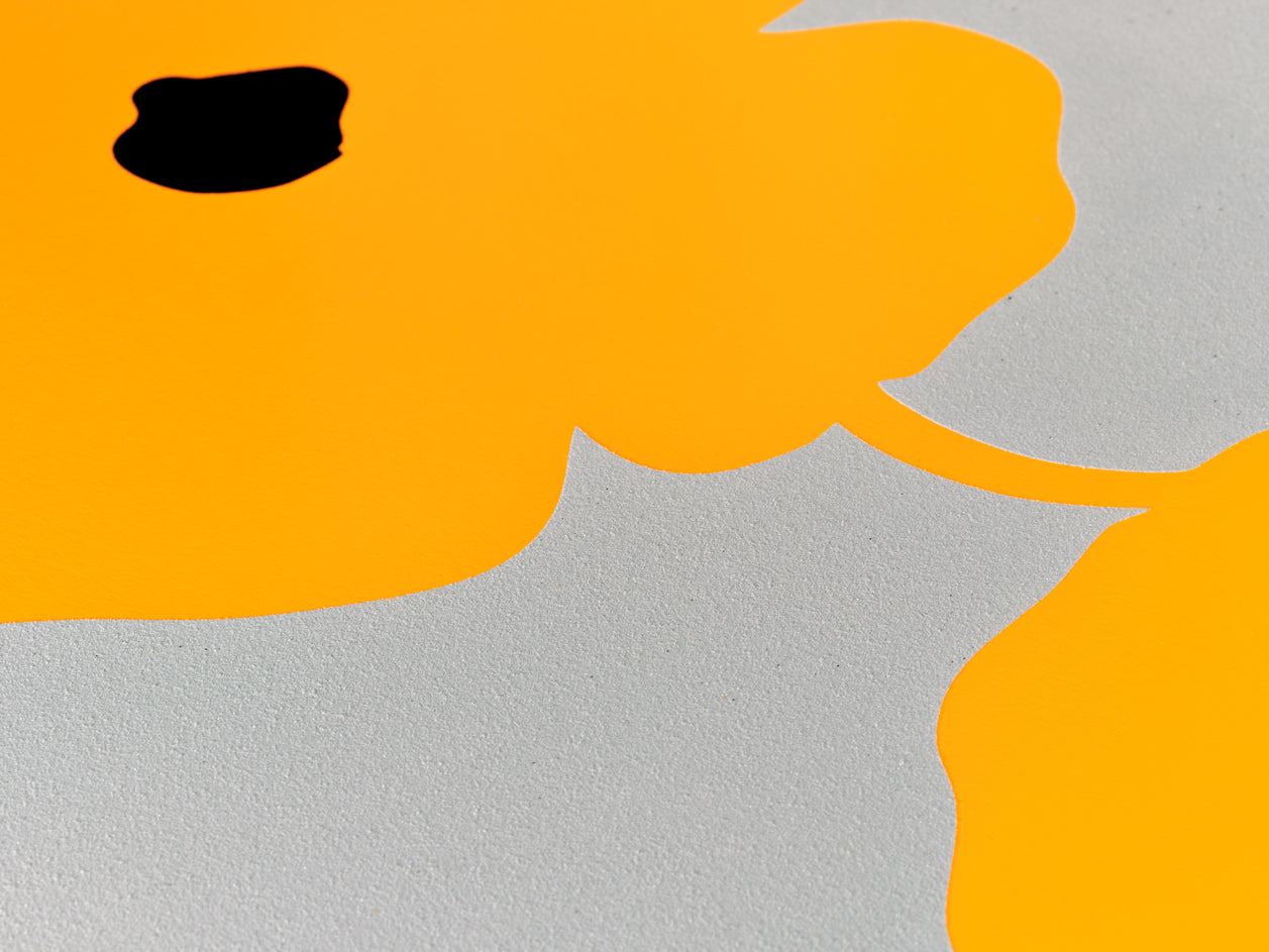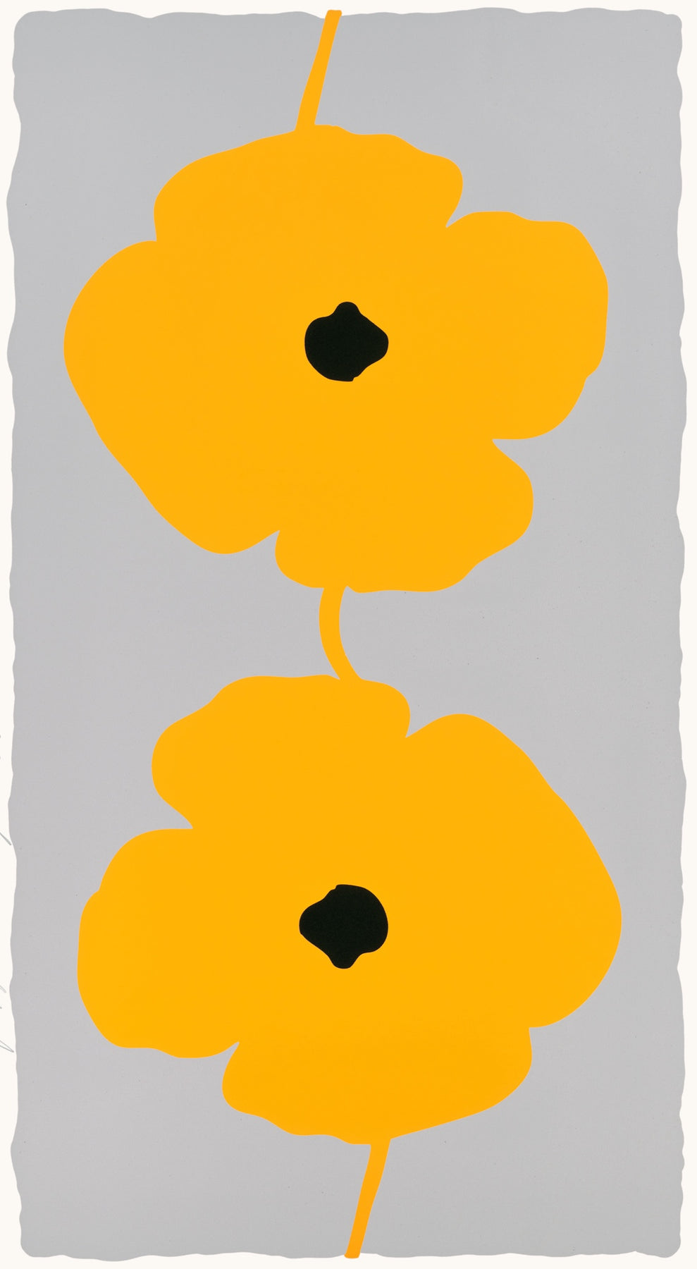 Donald Sultan, Yellow Double Poppies, 2025 Double Poppies Portfolio, 2025, Signed, Silkscreen with enamel inks, flocking, and sand on Rising 4-ply museum board, Edition 9/25, 55 1/4" x 32 5/8" Framed Size, 52 1/2" x 30" Sheet Size, 48 1/2" x 26" Image Size