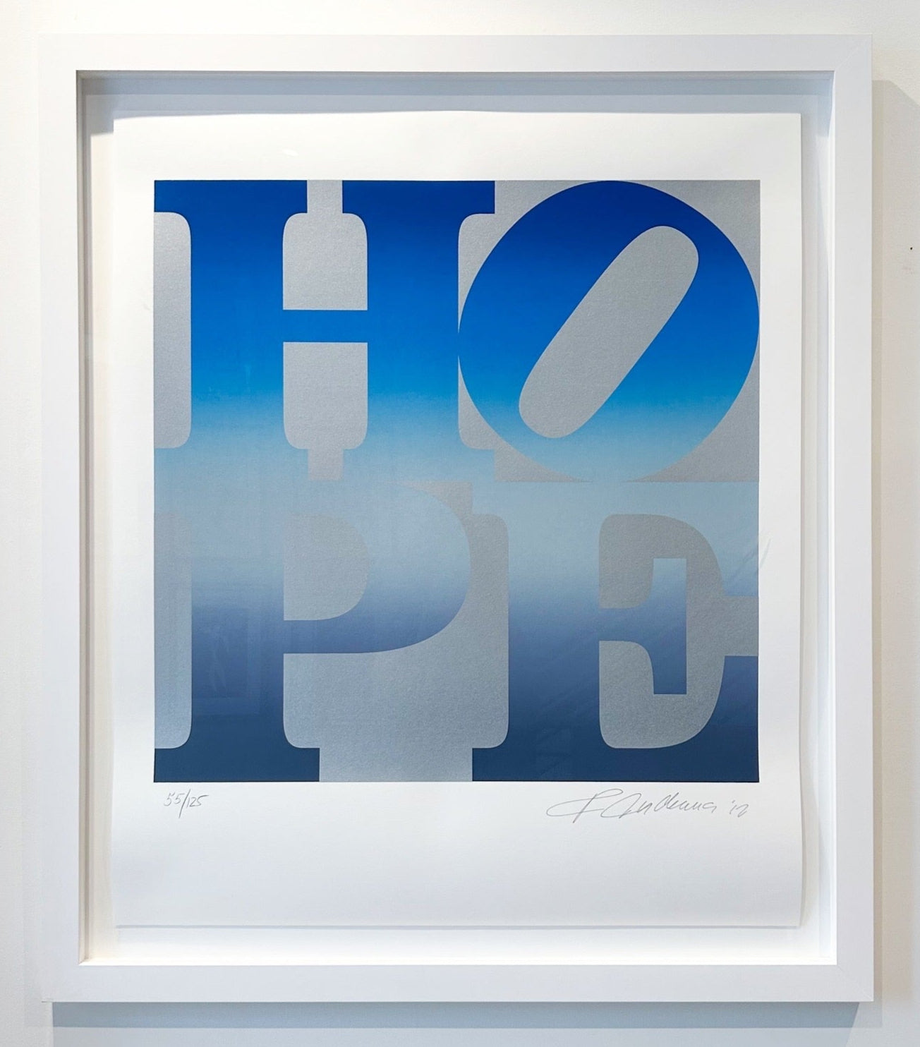 Robert Indiana was born Robert Clark in New Castle, Indiana, on September 13th, 1928. His family later located to Indianapolis, where he attended high school. He moved to New York City in 1954, where he joined the pop art movement. Robert Indiana first gained international attention in the 1960s for combining the American vernacular of road and shop signs with an elevated, conceptual approach that transformed these familiar images into abstractions of American identity. Indiana's best-known works consist of bold, simple, or iconic images, often encapsulated in short words such as EAT, HUG, or his most famous example, LOVE. The image for the LOVE piece was originally designed for a Christmas card for New York's Museum of Modern Art in 1964. Later, the same image was featured on an eight-cent United States Postal Service stamp, the first of their regular series of "love stamps." Three-dimensional sculptures of the same image can be found at a number of American museums and institutions. More recently, Indiana reformulated his iconic style to suit a new political generation by designing a logo for President Barack Obama's 2008 campaign, substituting the word "hope" for "love." A stainless steel sculpture of HOPE was unveiled at the Pepsi Center in Denver in advance of the 2008 Democratic National Convention formally recognizing Obama's candidacy. Indiana continues to produce works of art that are both novel and familiar, most recently designing a variation of LOVE for Google to replace the search engine's well-known logo on Valentine's Day 2011.