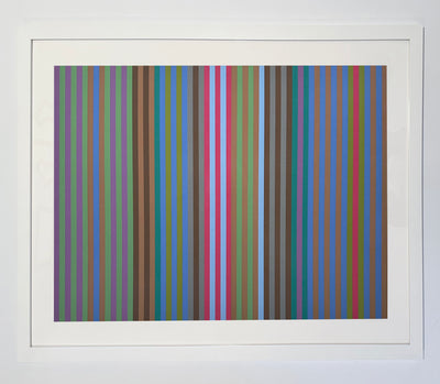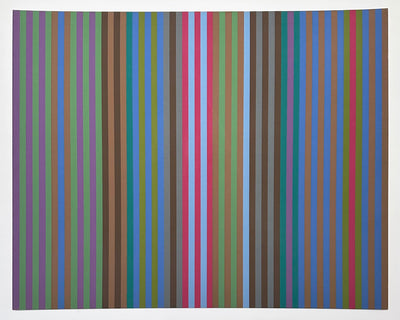 Gene Davis was born in Washington D.C. in 1920 and spent nearly all his life there. Before he began to paint in 1949, he worked as a sportswriter, covering the Washington Redskins and other local teams. Working as a journalist in the late 1940s, he covered the Roosevelt and Truman presidential administrations, and was often President Truman's partner for poker games.[1] A decade later he participated in the "Washington Color Painters" exhibit at the Washington Gallery of Modern Art in Washington, DC, which traveled to other venues around the US, and launched the recognition of the Washington Color School as a regional movement in which Davis was a central figure. Their work exemplified what the critic Barbara Rose defined as the 'primacy of color' in abstract painting. Davis is best known by far for his acrylic paintings (mostly on canvas) of colorful vertical stripes, which he began to paint in 1958. The paintings typically repeat particular colors to create a sense of rhythm and repetition with variations. Despite their calculated appearance, Davis's stripe works were not based on conscious use of theories or formulas. Davis often compared himself to a jazz musician who plays by ear, describing his approach to painting as 'playing by eye.' One of the best-known of his paintings, "Black Grey Beat" (1964), owned by the Smithsonian American Art Museum reinforces these musical comparisons in its title. Davis was a versatile artist who worked in a variety of formats and media: modular compositions consisting of discrete, but related, pieces that together form one composition; collages combining cutout fragments of images and text with painted and drawn elements; Klee-inspired images that resemble musical scores; and silhouette self-portraits. His works range in scale from miniscule micro-paintings to mammoth outdoor street paintings. Works in other media include printed conceptual pieces, video tapes, and abstract compositions in neon. "I became convinced that the way to make really good art was to do the outrageous, the unexpected---to be a renegade. That was my philosophy---to explore the seemingly impossible in art, to do things that were new for their own sake, whether they were good or bad."