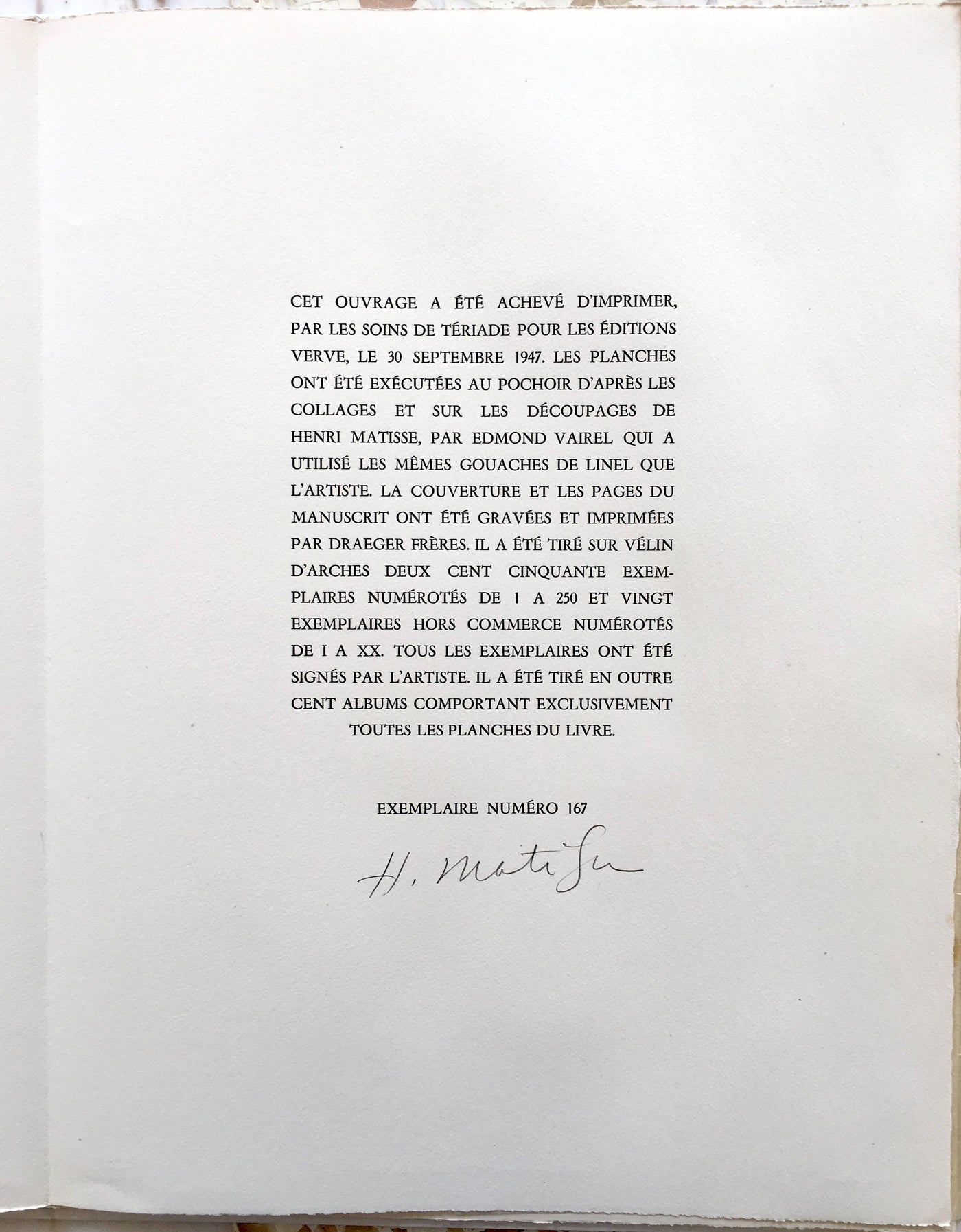 Henri Matisse Jazz Portfolio (Duthuit 22) 1947