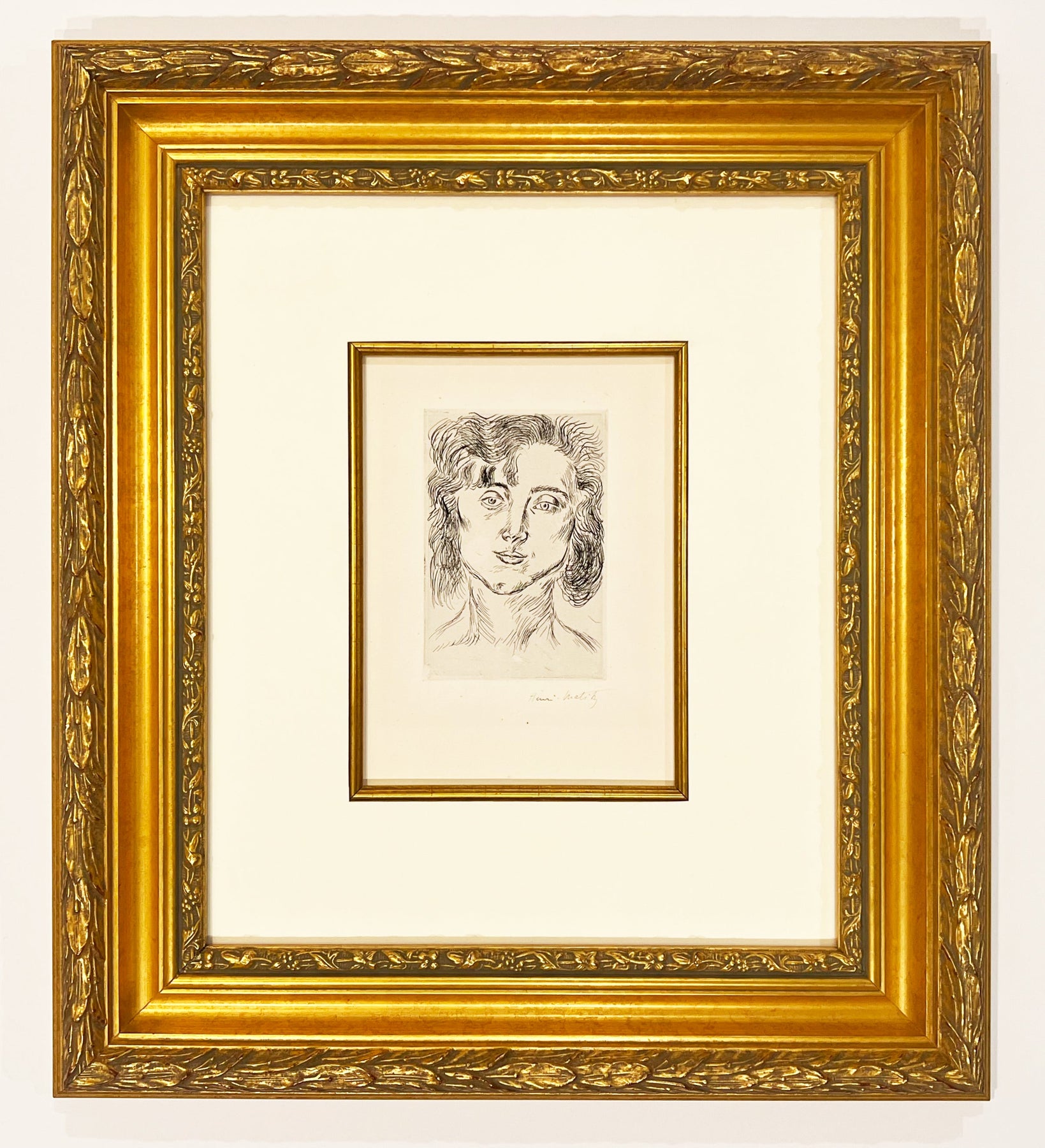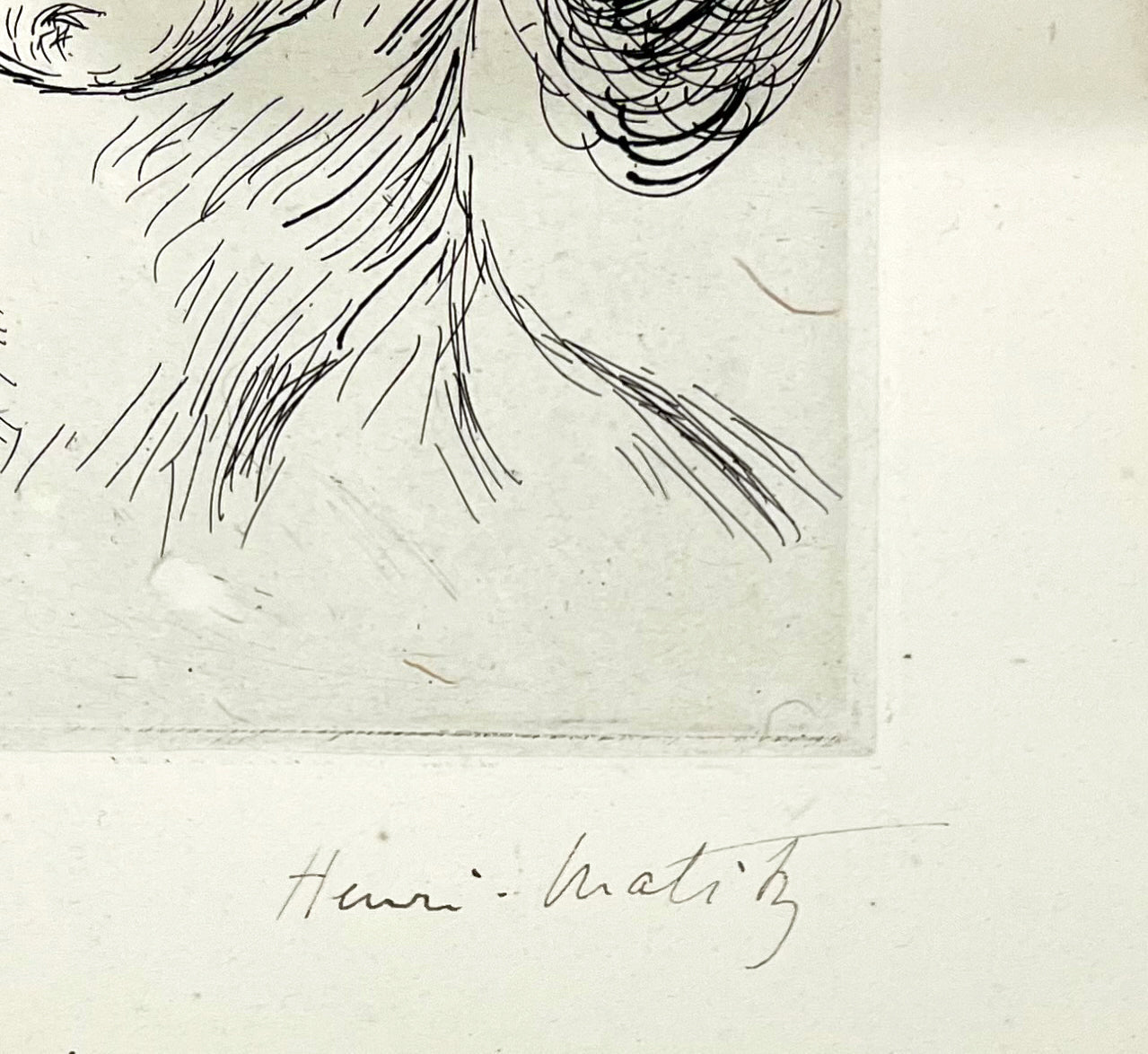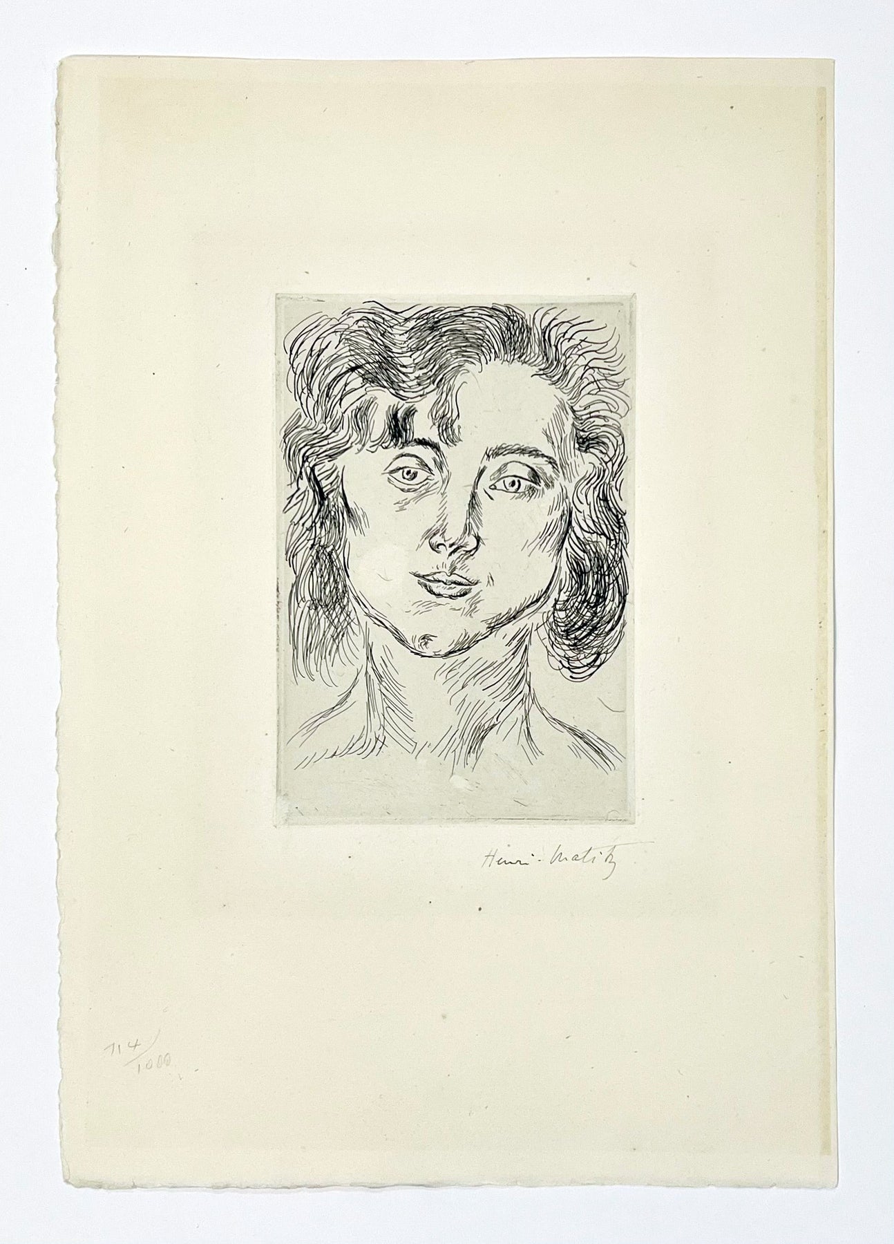 Henri Matisse, Portrait of Mlle. Marguerite Matisse, 1920 Cinquante Dessins Portfolio, (Duthuit 2), 1920, Signed, Original Etching, Edition 714/1000, 22" x 19 1/2" Framed Size, 12” x 8 3/8” Sheet Size