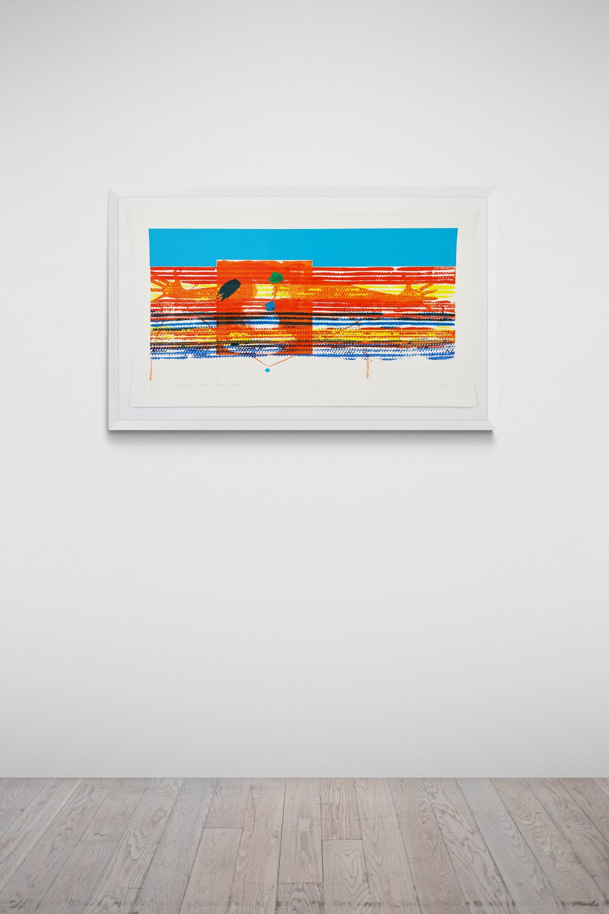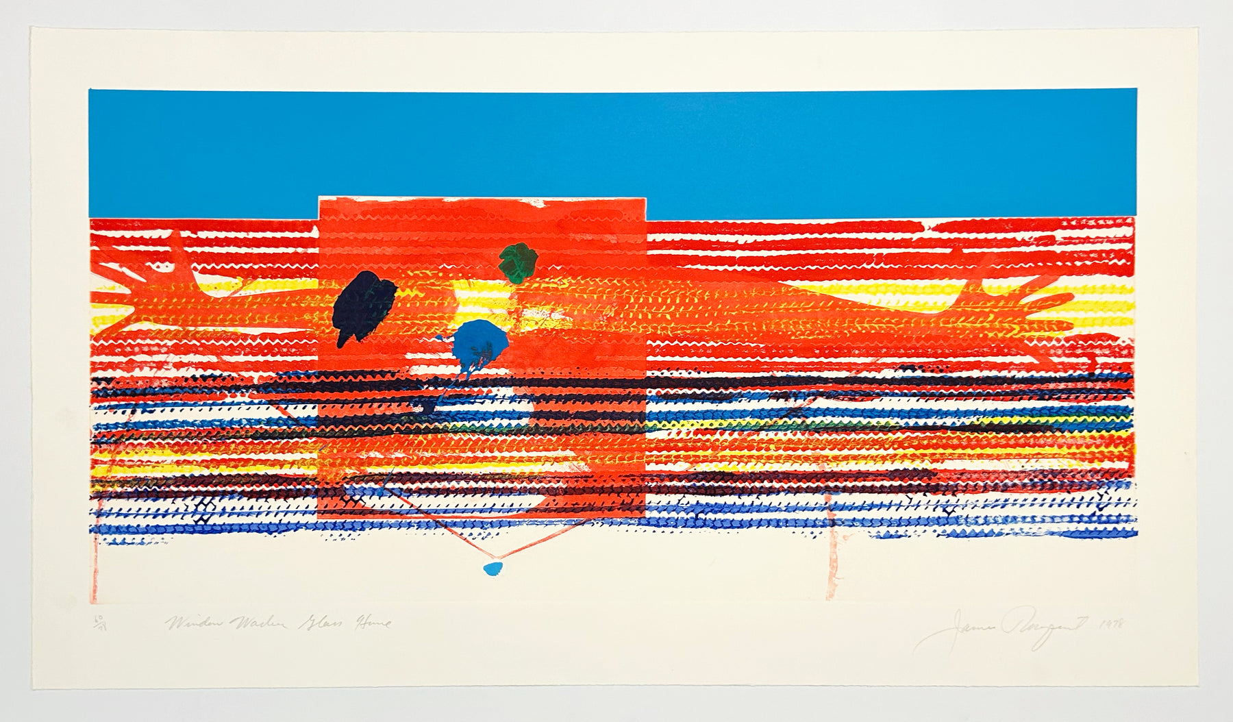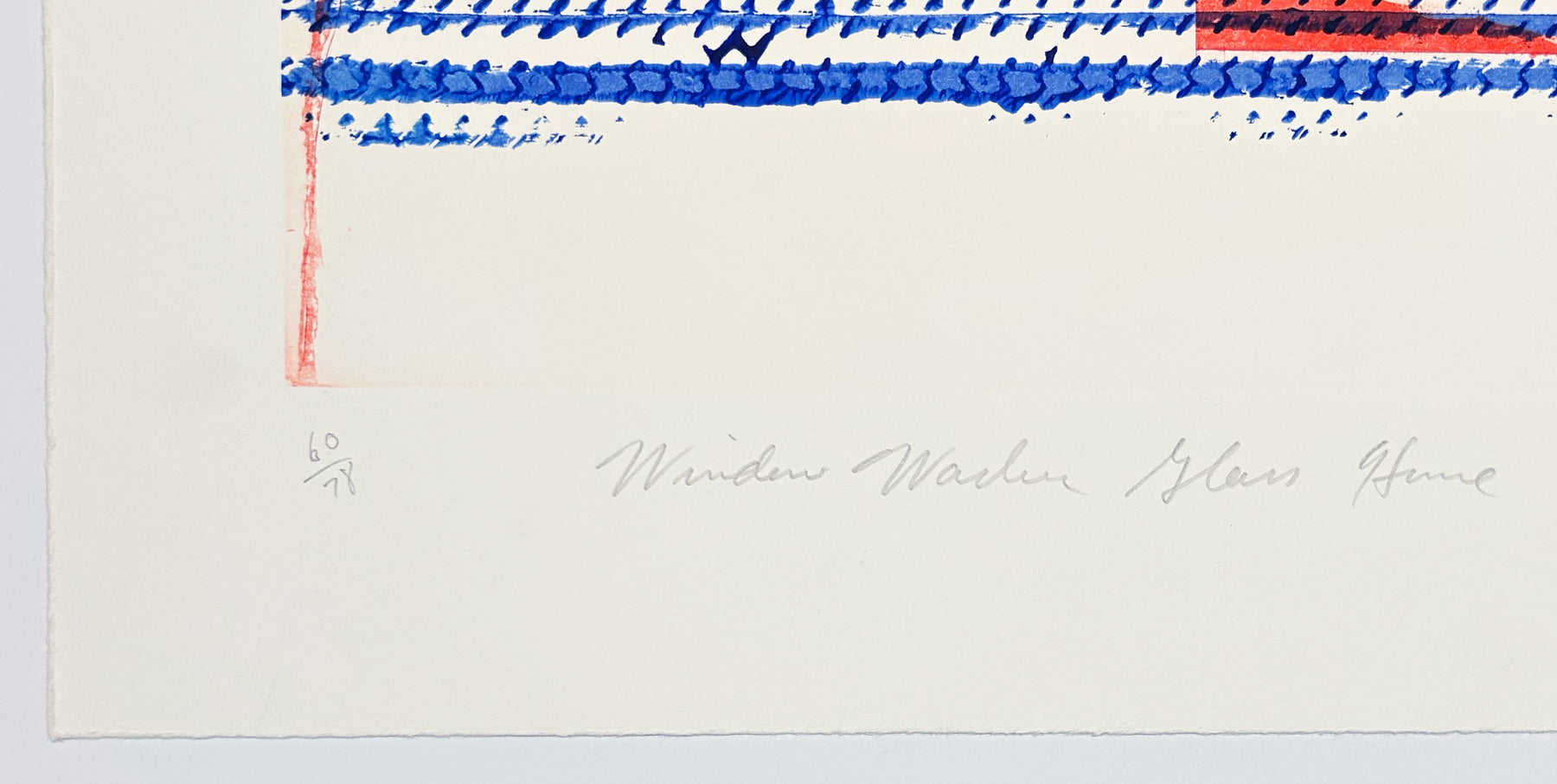 James Rosenquist, Window Washer Glass House, 1978, Signed, Color intaglio and relief print with hand coloring applied with a rubber tire on Pescia Italia paper, Edition 60/78, 29" x 46" Framed Size, 23" x 40" Sheet Size