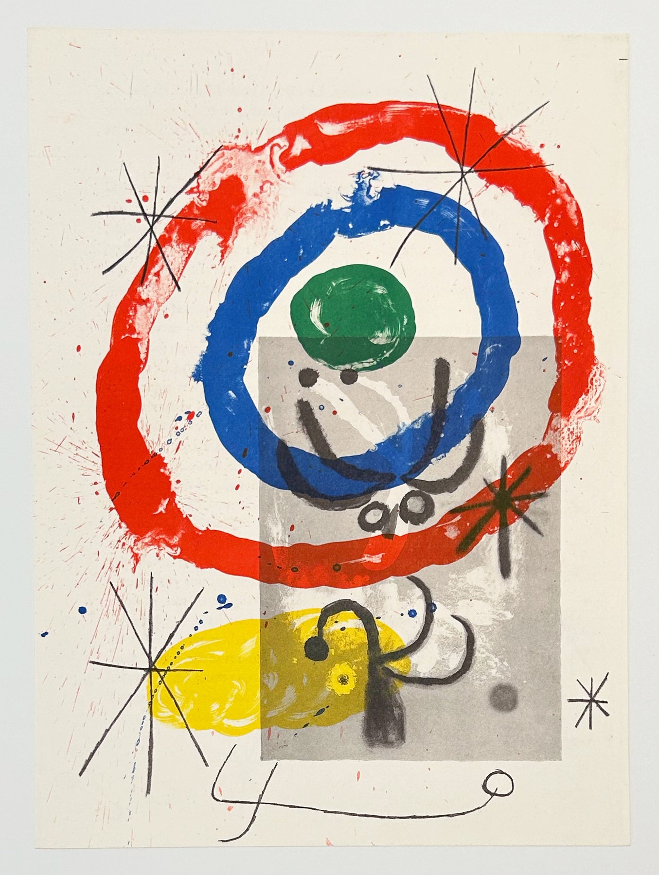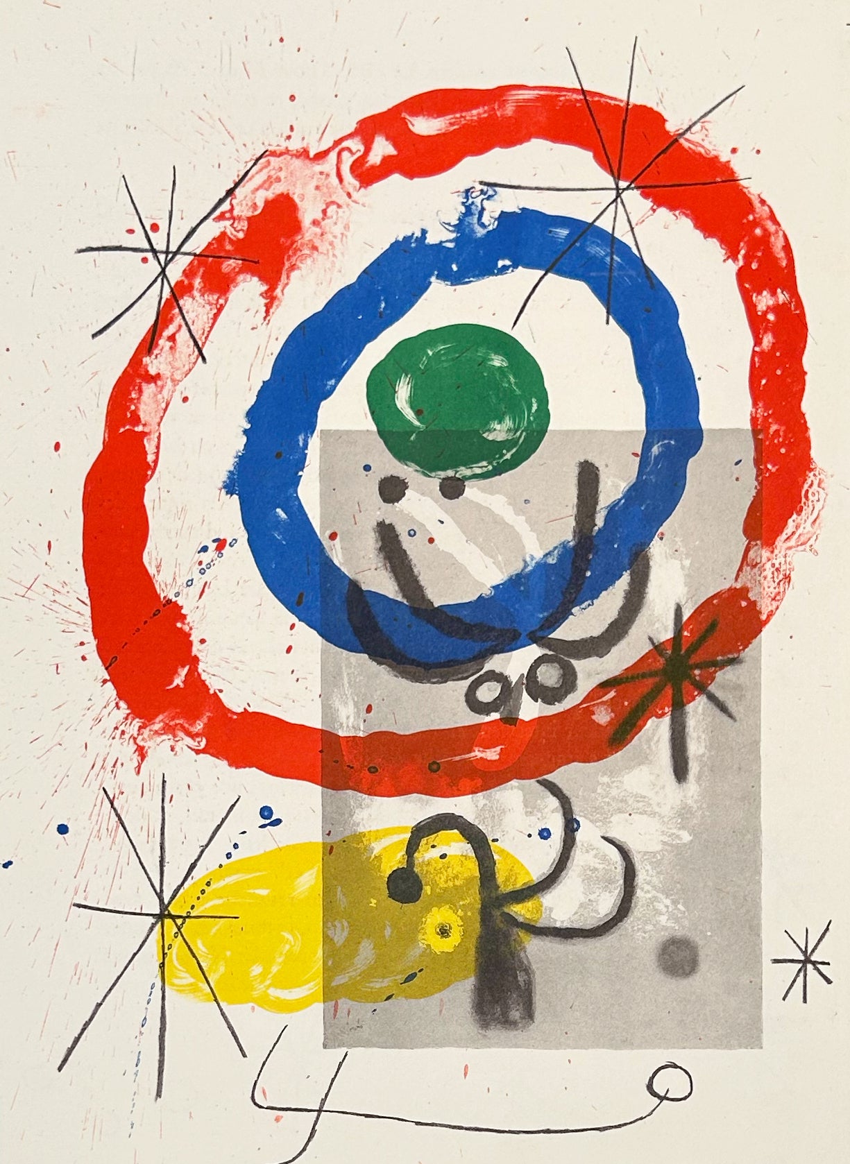 Joan Miro was born April 20, 1893 in Barcelona, Spain. Like Pablo Picasso, Henri Matisse, and Salvador Dali, Miro is one of the great pioneers of twentieth-century art. Miro began drawing at a young age, and his choice of subjects -tufts of grass, insects, birds- revealed an early affinity for the organic. Though based on his observations of nature, his works were abstractions, and bridged the gap between realistic and abstract imagery. The Surrealist concept of automatism (allowing the subconscious to dictate visual forms) helped to drive Miro's imagination throughout his career. As a result he produced vivid biomorphic imagery. Miro also identified strongly with the Surrealist poets, and collaborated with them on many artists books, to which he would contribute illustrations. In the 1960s, Miro devoted more time to printmaking, creating lithographs, etchings and aquatints. Miro was attracted to printmaking and sculpture as a respite from the solitary nature of painting, and as an opportunity to work together printers and other artisans. These experiences enhanced Miro's own creative repertoire. For instance, one notices the caligraphic nature of Miro's Femme dans la nuit ('Woman in the Night'), a wax crayona dn watercolor composition from 1967-1971, which could easily have been conceived as a study for a lithograph, despite its size and being of mixed-media. Miro recognized an advantage in printmaking, stating: "A painting is a unique example for a single collector. But if I pull seventy-five examples, I increase by seventy-five times the number of people who can own a work of mine. I increase the reach of my message seventy-five times." Miro died on December 25,1983, in Palma de Mallorca, Spain.