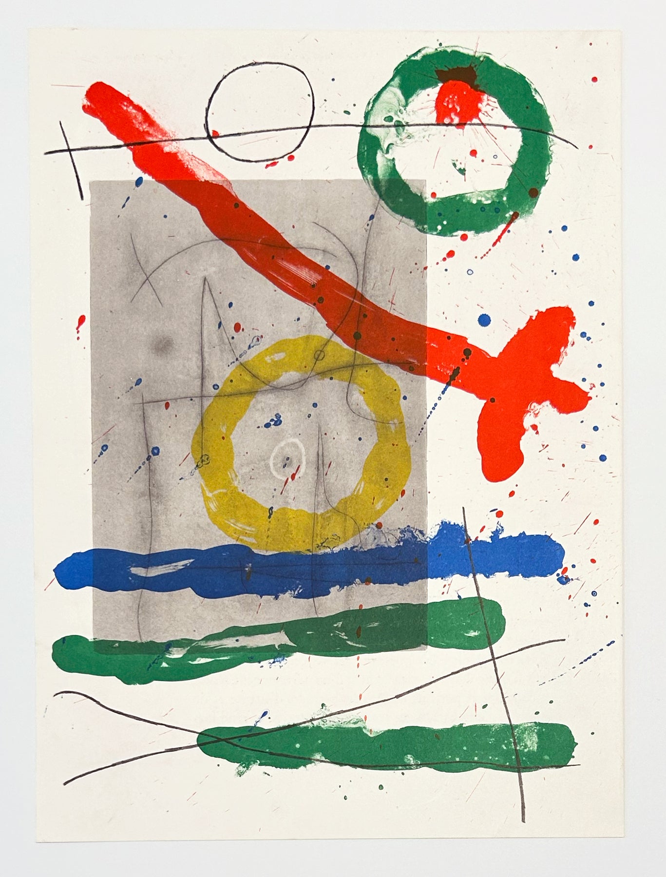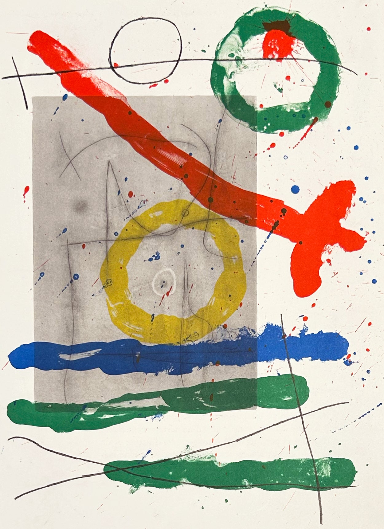 Joan Miro was born April 20, 1893 in Barcelona, Spain. Like Pablo Picasso, Henri Matisse, and Salvador Dali, Miro is one of the great pioneers of twentieth-century art. Miro began drawing at a young age, and his choice of subjects -tufts of grass, insects, birds- revealed an early affinity for the organic. Though based on his observations of nature, his works were abstractions, and bridged the gap between realistic and abstract imagery. The Surrealist concept of automatism (allowing the subconscious to dictate visual forms) helped to drive Miro's imagination throughout his career. As a result he produced vivid biomorphic imagery. Miro also identified strongly with the Surrealist poets, and collaborated with them on many artists books, to which he would contribute illustrations. In the 1960s, Miro devoted more time to printmaking, creating lithographs, etchings and aquatints. Miro was attracted to printmaking and sculpture as a respite from the solitary nature of painting, and as an opportunity to work together printers and other artisans. These experiences enhanced Miro's own creative repertoire. For instance, one notices the caligraphic nature of Miro's Femme dans la nuit ('Woman in the Night'), a wax crayona dn watercolor composition from 1967-1971, which could easily have been conceived as a study for a lithograph, despite its size and being of mixed-media. Miro recognized an advantage in printmaking, stating: "A painting is a unique example for a single collector. But if I pull seventy-five examples, I increase by seventy-five times the number of people who can own a work of mine. I increase the reach of my message seventy-five times." Miro died on December 25,1983, in Palma de Mallorca, Spain.