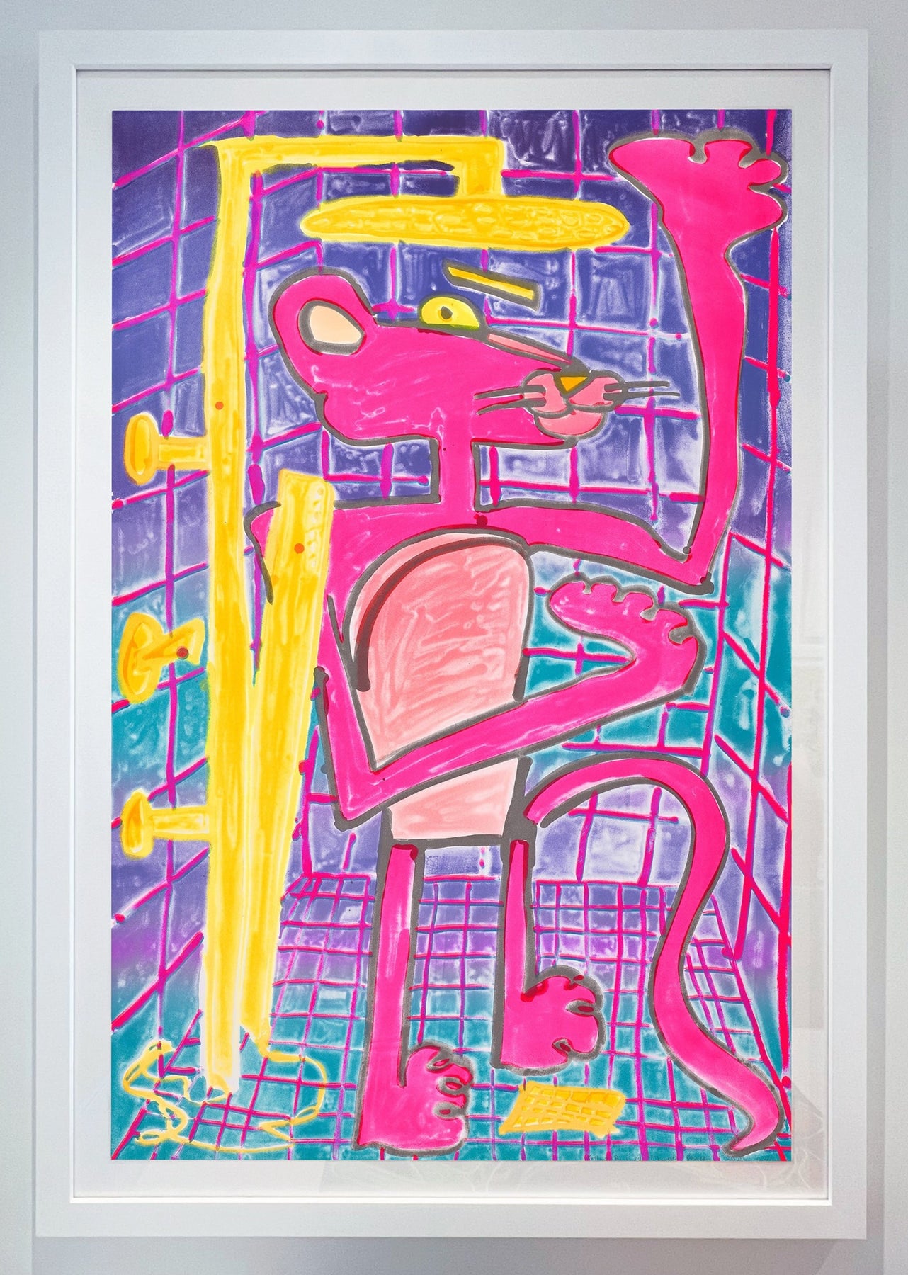 Katherine Bernhardt is a contemporary American artist whose work combines a bright color pallet and repetitive patterns with pop culture characters and consumer goods. Working quickly to create energetic compositions, Bernhardt’s paintings reflect the influence of graffiti art, color field painting, and action painting, with an emphasis on creating interesting textures and emphasizing the geometric form of her subject matter. Her work draws focus to the visual interest of otherwise mundane contemporary products. Bernhardt’s work is in the collections of the Hirshhorn Museum and Sculpture Garden, the Rubell Museum, the Portland Museum of Art, and others.