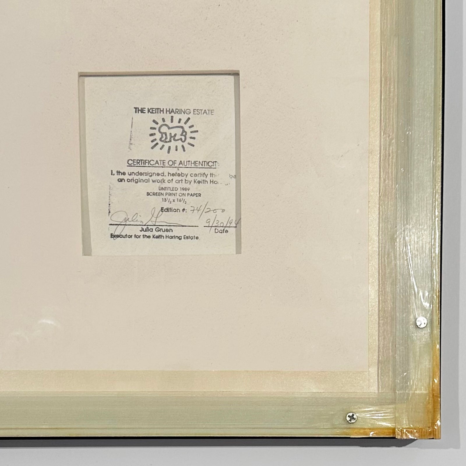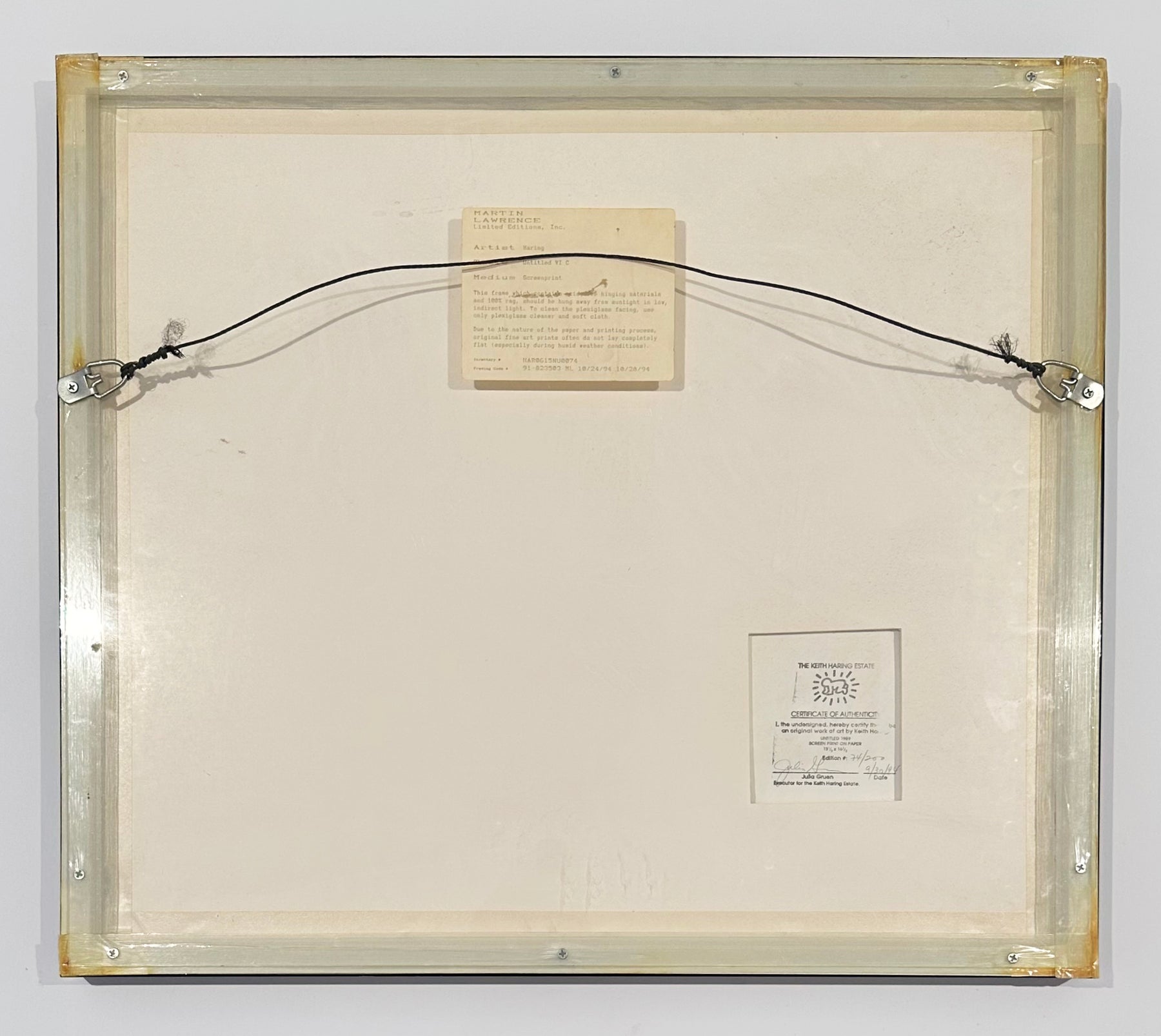Keith Haring was born in 1958 in Reading, Pennsylvania and grew up in nearby Kutztown, Pennsylvania. At a young age, he showed a penchant for line drawing, and admired the pop culture imagery of Dr. Seuss and Walt Disney. He attend the Ivy School of Professional Art in Pittsburgh for two semesters and eventually enrolled at the School of Visual Arts in New York. It was in late-1970s and early-1980s New York that Haring's personal style developed. There he discovered a thriving artists' community that seemed to exist outside the world of galleries and museums. Influenced by graffiti writers and street art, he honed what would become the signature appearance of his work: the heavy use of line, vivid fields of color, and simplified humanoid and geometric forms. Throughout the 1980s, Haring achieved international recognition for his images, taking part in over 100 solo and group exhibitions. In 1986 he opened the Pop Shop in Soho, which sold shirts, posters and other memorabilia bearing his images. Today his work is instantly recognizable, as it had been sought by artists and performers such as Andy Warhol, William Burroughs, Yoko Ono, and Madonna. Haring was diagnosed with AIDS in 1988, and died two years later.