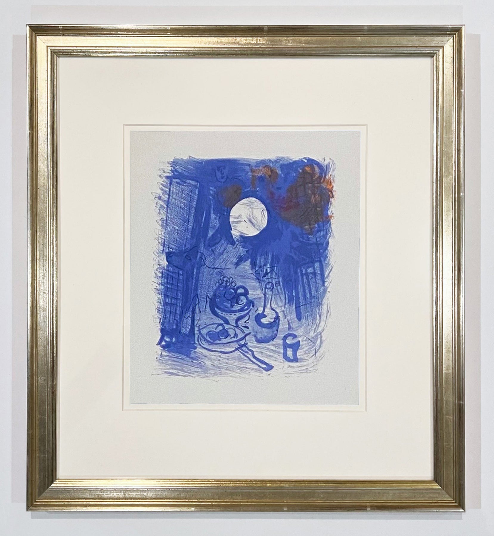 Marc Chagall was born in Vitebsk, Byelorussia, in 1887 to a poor Hasidic family. The eldest of nine children, Marc Chagall studied first in a heder before moving to a secular Russian school, where he began to display his artistic talent. With his mother's support, and despite his father's disapproval, Chagall pursued his interest in art, going to St. Petersburg in 1907 to study art with Leon Bakst. Influenced by contemporary Russian painting, Chagall's distinctive, child-like style, often centering on images from his childhood, began to emerge. From 1910 to 1914, Marc Chagall lived in Paris, and there absorbed the works of the leading cubist, surrealist, and fauvist painters. It was during this period that Chagall painted some of his most famous paintings of the Jewish shtetl or village, and developed the features that became recognizable trademarks of his art. Strong and often bright colors portray the world with a dreamlike, non-realistic simplicity, and the fusion of fantasy, religion, and nostalgia infuses his work with a joyous quality. Animals, workmen, lovers, and musicians populate his figures; the "fiddler on the roof" recurs frequently, often hovering within another scene. Chagall's work of this period displays the influence of contemporary French painting, but his style remains independent of any one school of art. He exhibited regularly in the Salon des Independants. In 1914, before the outbreak of World War I, Marc Chagall held a one-man show in Berlin, exhibiting work dominated by Jewish images and personages. During the war, he resided in Russia, and in 1917, endorsing the revolution, he was appointed Commissar for Fine Arts in Vitebsk and then director of the newly established Free Academy of Art. The Bolshevik authorities, however, frowned upon Chagall's style of art as too modern, and in 1922, Marc Chagall left Russia, settling in France one year later. He lived there permanently except for the years 1941 - 1948 when, fleeing France during World War II, he resided in the United States. Chagall's horror over the Nazi rise to power is expressed in works depicting Jewish martyrs and Jewish refugees. In addition to images of the Hassidic world, Chagall's paintings are inspired by themes from the Bible. His fascination with the Bible culminated in a series of over 100 etchings illustrating the Bible, many of which incorporate elements from Jewish folklore and from religious life in Vitebsk. Chagall's other illustrations include works by Gogol, La Fontaine, Y. L. Peretz, and his autobiographical Ma Vie (1931; My Life 1960) and Chagall by Chagall (1979) Marc Chagall painted with a variety of media, such as oils, water colors, and gouaches. His work also expanded to other forms of art, including ceramics, mosaics, and stained glass. Among his most famous building decorations are the ceiling of the Opera House in Paris, murals at the New York Metropolitan Opera, a glass window at the United Nations, and decorations at the Vatican Israel, which Marc Chagall first visited in 1931 for the opening of the Tel Aviv Art Museum, is likewise endowed with some of Chagall's work, most notably the twelve stained glass windows at Hadassah Hospital and wall decorations at the Knesset. Marc Chagall received many prizes and much recognition for his work. He was also one of very few artists to exhibit work at the Louvre in their lifetime. Marc Chagall's involvement with printmaking dates to 1922 and his return to Berlin after World War I. In the course of trying to recover the paintings he had left behind with Sturm Gallery's director Herwarth Walden in 1914, Walter Feilchenfeldt, the director of the Cassirer Gallery, offered to publish Chagall's then recently completed autobiography Mein Leben (My Life) to be illustrated with etchings. Although the book was never published due to translation problems, a suite of 20 etchings was created by the artist in the medium of dry-point etching depicting scenes and figures in Chagall's newly evolved naïve-realistic style. Chagall had never before been introduced to printmaking techniques and became very enamored with them, trying his hand with woodcuts and lithography, too. He felt that in these mediums his narrative flair had found its proper expression. Chagall wrote in 1960, "Since I started using a pencil, I have sought for this certain something that could spread like a stream toward unknown and alluring shores." And again, "When I held a lithographic stone or a copperplate in my hand I thought I was touching a talisman. It seemed to me that I could put all my joys and sorrows in it....Everything that touched my life through the years, births, deaths, weddings, flowers, animals, birds, the poor workers, my parents, lovers in the night, the biblical prophets, on the street, at home, in the temple and in heaven. And as I grew older, the tragedy of life within us and around us."1 It is in this sense that Chagall did lithographs, and they have become the stream that carries the message of his painting into the wide world. Fortuitously, it was a printmaking commission that brought Marc Chagall back to Paris in 1923. The famous dealer and editor, Ambroise Vollard, invited him to do some book illustrations and the artist requested the book be the Russian author Gogol's Dead Souls. So it was that Marc Chagall engraved 107 etchings on this theme in the course of only two years. Although in style they are related to the Mein Leben dry-points, their technique is obviously more elaborate and refined. Indicative of how the various creative mediums are related, the artist found that in the process of developing engraved imagery to illustrate Gogol he was able to revive his own Russian themes. As he had been longing to surround himself with the paintings he had lost in the course of WWI and his sojourn in Russia, he seized upon this inspiration to reconstruct many of his earlier missing canvasses. Other themes also evolved that were connected to his more recent Mo
