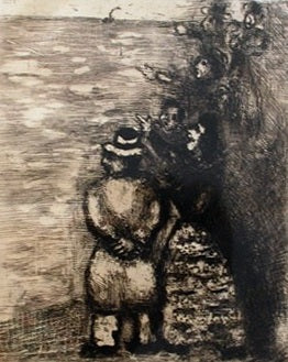 Marc Chagall was born in Vitebsk, Byelorussia, in 1887 to a poor Hasidic family. The eldest of nine children, Marc Chagall studied first in a heder before moving to a secular Russian school, where he began to display his artistic talent. With his mother's support, and despite his father's disapproval, Chagall pursued his interest in art, going to St. Petersburg in 1907 to study art with Leon Bakst. Influenced by contemporary Russian painting, Chagall's distinctive, child-like style, often centering on images from his childhood, began to emerge. From 1910 to 1914, Marc Chagall lived in Paris, and there absorbed the works of the leading cubist, surrealist, and fauvist painters. It was during this period that Chagall painted some of his most famous paintings of the Jewish shtetl or village, and developed the features that became recognizable trademarks of his art. Strong and often bright colors portray the world with a dreamlike, non-realistic simplicity, and the fusion of fantasy, religion, and nostalgia infuses his work with a joyous quality. Animals, workmen, lovers, and musicians populate his figures; the "fiddler on the roof" recurs frequently, often hovering within another scene. Chagall's work of this period displays the influence of contemporary French painting, but his style remains independent of any one school of art. He exhibited regularly in the Salon des Independants. In 1914, before the outbreak of World War I, Marc Chagall held a one-man show in Berlin, exhibiting work dominated by Jewish images and personages. During the war, he resided in Russia, and in 1917, endorsing the revolution, he was appointed Commissar for Fine Arts in Vitebsk and then director of the newly established Free Academy of Art. The Bolshevik authorities, however, frowned upon Chagall's style of art as too modern, and in 1922, Marc Chagall left Russia, settling in France one year later. He lived there permanently except for the years 1941 - 1948 when, fleeing France during World War II, he resided in the United States. Chagall's horror over the Nazi rise to power is expressed in works depicting Jewish martyrs and Jewish refugees. In addition to images of the Hassidic world, Chagall's paintings are inspired by themes from the Bible. His fascination with the Bible culminated in a series of over 100 etchings illustrating the Bible, many of which incorporate elements from Jewish folklore and from religious life in Vitebsk. Chagall's other illustrations include works by Gogol, La Fontaine, Y. L. Peretz, and his autobiographical Ma Vie (1931; My Life 1960) and Chagall by Chagall (1979) Marc Chagall painted with a variety of media, such as oils, water colors, and gouaches. His work also expanded to other forms of art, including ceramics, mosaics, and stained glass. Among his most famous building decorations are the ceiling of the Opera House in Paris, murals at the New York Metropolitan Opera, a glass window at the United Nations, and decorations at the Vatican Israel, which Marc Chagall first visited in 1931 for the opening of the Tel Aviv Art Museum, is likewise endowed with some of Chagall's work, most notably the twelve stained glass windows at Hadassah Hospital and wall decorations at the Knesset. Marc Chagall received many prizes and much recognition for his work. He was also one of very few artists to exhibit work at the Louvre in their lifetime. Marc Chagall's involvement with printmaking dates to 1922 and his return to Berlin after World War I. In the course of trying to recover the paintings he had left behind with Sturm Gallery's director Herwarth Walden in 1914, Walter Feilchenfeldt, the director of the Cassirer Gallery, offered to publish Chagall's then recently completed autobiography Mein Leben (My Life) to be illustrated with etchings. Although the book was never published due to translation problems, a suite of 20 etchings was created by the artist in the medium of dry-point etching depicting scenes and figures in Chagall's newly evolved naïve-realistic style. Chagall had never before been introduced to printmaking techniques and became very enamored with them, trying his hand with woodcuts and lithography, too. He felt that in these mediums his narrative flair had found its proper expression. Chagall wrote in 1960, "Since I started using a pencil, I have sought for this certain something that could spread like a stream toward unknown and alluring shores." And again, "When I held a lithographic stone or a copperplate in my hand I thought I was touching a talisman. It seemed to me that I could put all my joys and sorrows in it....Everything that touched my life through the years, births, deaths, weddings, flowers, animals, birds, the poor workers, my parents, lovers in the night, the biblical prophets, on the street, at home, in the temple and in heaven. And as I grew older, the tragedy of life within us and around us."1 It is in this sense that Chagall did lithographs, and they have become the stream that carries the message of his painting into the wide world. Fortuitously, it was a printmaking commission that brought Marc Chagall back to Paris in 1923. The famous dealer and editor, Ambroise Vollard, invited him to do some book illustrations and the artist requested the book be the Russian author Gogol's Dead Souls. So it was that Marc Chagall engraved 107 etchings on this theme in the course of only two years. Although in style they are related to the Mein Leben dry-points, their technique is obviously more elaborate and refined. Indicative of how the various creative mediums are related, the artist found that in the process of developing engraved imagery to illustrate Gogol he was able to revive his own Russian themes. As he had been longing to surround himself with the paintings he had lost in the course of WWI and his sojourn in Russia, he seized upon this inspiration to reconstruct many of his earlier missing canvasses. Other themes also evolved that were connected to his more recent Mo