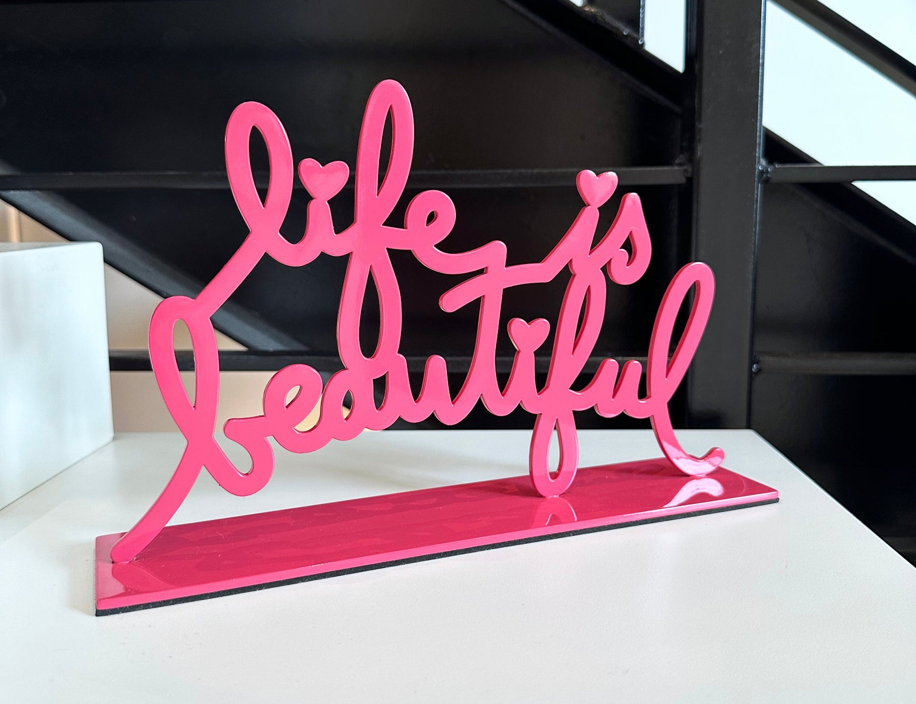 Mr. Brainwash, Life is Beautiful (Pink), 2022, Signed, Coated metal sculpture, Edition 15/50, 7" x 10 1/2" x 2 1/2" Image Size