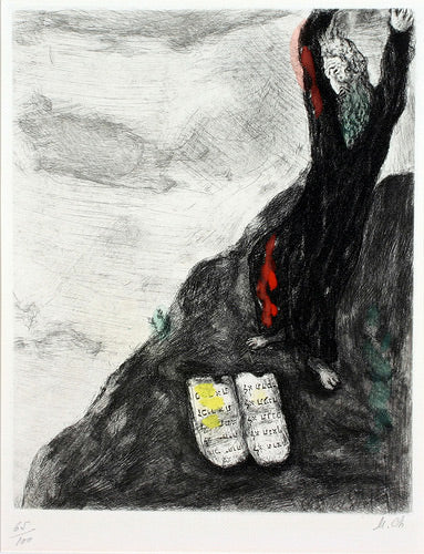 Marc Chagall was born in Vitebsk, Byelorussia, in 1887 to a poor Hasidic family. The eldest of nine children, Marc Chagall studied first in a heder before moving to a secular Russian school, where he began to display his artistic talent. With his mother's support, and despite his father's disapproval, Chagall pursued his interest in art, going to St. Petersburg in 1907 to study art with Leon Bakst. Influenced by contemporary Russian painting, Chagall's distinctive, child-like style, often centering on images from his childhood, began to emerge. From 1910 to 1914, Marc Chagall lived in Paris, and there absorbed the works of the leading cubist, surrealist, and fauvist painters. It was during this period that Chagall painted some of his most famous paintings of the Jewish shtetl or village, and developed the features that became recognizable trademarks of his art. Strong and often bright colors portray the world with a dreamlike, non-realistic simplicity, and the fusion of fantasy, religion, and nostalgia infuses his work with a joyous quality. Animals, workmen, lovers, and musicians populate his figures; the "fiddler on the roof" recurs frequently, often hovering within another scene. Chagall's work of this period displays the influence of contemporary French painting, but his style remains independent of any one school of art. He exhibited regularly in the Salon des Independants. In 1914, before the outbreak of World War I, Marc Chagall held a one-man show in Berlin, exhibiting work dominated by Jewish images and personages. During the war, he resided in Russia, and in 1917, endorsing the revolution, he was appointed Commissar for Fine Arts in Vitebsk and then director of the newly established Free Academy of Art. The Bolshevik authorities, however, frowned upon Chagall's style of art as too modern, and in 1922, Marc Chagall left Russia, settling in France one year later. He lived there permanently except for the years 1941 - 1948 when, fleeing France during World War II, he resided in the United States. Chagall's horror over the Nazi rise to power is expressed in works depicting Jewish martyrs and Jewish refugees. In addition to images of the Hassidic world, Chagall's paintings are inspired by themes from the Bible. His fascination with the Bible culminated in a series of over 100 etchings illustrating the Bible, many of which incorporate elements from Jewish folklore and from religious life in Vitebsk. Chagall's other illustrations include works by Gogol, La Fontaine, Y. L. Peretz, and his autobiographical Ma Vie (1931; My Life 1960) and Chagall by Chagall (1979) Marc Chagall painted with a variety of media, such as oils, water colors, and gouaches. His work also expanded to other forms of art, including ceramics, mosaics, and stained glass. Among his most famous building decorations are the ceiling of the Opera House in Paris, murals at the New York Metropolitan Opera, a glass window at the United Nations, and decorations at the Vatican Israel, which Marc Chagall first visited in 1931 for the opening of the Tel Aviv Art Museum, is likewise endowed with some of Chagall's work, most notably the twelve stained glass windows at Hadassah Hospital and wall decorations at the Knesset. Marc Chagall received many prizes and much recognition for his work. He was also one of very few artists to exhibit work at the Louvre in their lifetime. Marc Chagall's involvement with printmaking dates to 1922 and his return to Berlin after World War I. In the course of trying to recover the paintings he had left behind with Sturm Gallery's director Herwarth Walden in 1914, Walter Feilchenfeldt, the director of the Cassirer Gallery, offered to publish Chagall's then recently completed autobiography Mein Leben (My Life) to be illustrated with etchings. Although the book was never published due to translation problems, a suite of 20 etchings was created by the artist in the medium of dry-point etching depicting scenes and figures in Chagall's newly evolved naïve-realistic style. Chagall had never before been introduced to printmaking techniques and became very enamored with them, trying his hand with woodcuts and lithography, too. He felt that in these mediums his narrative flair had found its proper expression. Chagall wrote in 1960, "Since I started using a pencil, I have sought for this certain something that could spread like a stream toward unknown and alluring shores." And again, "When I held a lithographic stone or a copperplate in my hand I thought I was touching a talisman. It seemed to me that I could put all my joys and sorrows in it....Everything that touched my life through the years, births, deaths, weddings, flowers, animals, birds, the poor workers, my parents, lovers in the night, the biblical prophets, on the street, at home, in the temple and in heaven. And as I grew older, the tragedy of life within us and around us."1 It is in this sense that Chagall did lithographs, and they have become the stream that carries the message of his painting into the wide world. Fortuitously, it was a printmaking commission that brought Marc Chagall back to Paris in 1923. The famous dealer and editor, Ambroise Vollard, invited him to do some book illustrations and the artist requested the book be the Russian author Gogol's Dead Souls. So it was that Marc Chagall engraved 107 etchings on this theme in the course of only two years. Although in style they are related to the Mein Leben dry-points, their technique is obviously more elaborate and refined. Indicative of how the various creative mediums are related, the artist found that in the process of developing engraved imagery to illustrate Gogol he was able to revive his own Russian themes. As he had been longing to surround himself with the paintings he had lost in the course of WWI and his sojourn in Russia, he seized upon this inspiration to reconstruct many of his earlier missing canvasses. Other themes also evolved that were connected to his more recent Mo