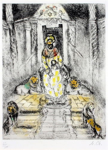 Marc Chagall was born in Vitebsk, Byelorussia, in 1887 to a poor Hasidic family. The eldest of nine children, Marc Chagall studied first in a heder before moving to a secular Russian school, where he began to display his artistic talent. With his mother's support, and despite his father's disapproval, Chagall pursued his interest in art, going to St. Petersburg in 1907 to study art with Leon Bakst. Influenced by contemporary Russian painting, Chagall's distinctive, child-like style, often centering on images from his childhood, began to emerge. From 1910 to 1914, Marc Chagall lived in Paris, and there absorbed the works of the leading cubist, surrealist, and fauvist painters. It was during this period that Chagall painted some of his most famous paintings of the Jewish shtetl or village, and developed the features that became recognizable trademarks of his art. Strong and often bright colors portray the world with a dreamlike, non-realistic simplicity, and the fusion of fantasy, religion, and nostalgia infuses his work with a joyous quality. Animals, workmen, lovers, and musicians populate his figures; the "fiddler on the roof" recurs frequently, often hovering within another scene. Chagall's work of this period displays the influence of contemporary French painting, but his style remains independent of any one school of art. He exhibited regularly in the Salon des Independants. In 1914, before the outbreak of World War I, Marc Chagall held a one-man show in Berlin, exhibiting work dominated by Jewish images and personages. During the war, he resided in Russia, and in 1917, endorsing the revolution, he was appointed Commissar for Fine Arts in Vitebsk and then director of the newly established Free Academy of Art. The Bolshevik authorities, however, frowned upon Chagall's style of art as too modern, and in 1922, Marc Chagall left Russia, settling in France one year later. He lived there permanently except for the years 1941 - 1948 when, fleeing France during World War II, he resided in the United States. Chagall's horror over the Nazi rise to power is expressed in works depicting Jewish martyrs and Jewish refugees. In addition to images of the Hassidic world, Chagall's paintings are inspired by themes from the Bible. His fascination with the Bible culminated in a series of over 100 etchings illustrating the Bible, many of which incorporate elements from Jewish folklore and from religious life in Vitebsk. Chagall's other illustrations include works by Gogol, La Fontaine, Y. L. Peretz, and his autobiographical Ma Vie (1931; My Life 1960) and Chagall by Chagall (1979) Marc Chagall painted with a variety of media, such as oils, water colors, and gouaches. His work also expanded to other forms of art, including ceramics, mosaics, and stained glass. Among his most famous building decorations are the ceiling of the Opera House in Paris, murals at the New York Metropolitan Opera, a glass window at the United Nations, and decorations at the Vatican Israel, which Marc Chagall first visited in 1931 for the opening of the Tel Aviv Art Museum, is likewise endowed with some of Chagall's work, most notably the twelve stained glass windows at Hadassah Hospital and wall decorations at the Knesset. Marc Chagall received many prizes and much recognition for his work. He was also one of very few artists to exhibit work at the Louvre in their lifetime. Marc Chagall's involvement with printmaking dates to 1922 and his return to Berlin after World War I. In the course of trying to recover the paintings he had left behind with Sturm Gallery's director Herwarth Walden in 1914, Walter Feilchenfeldt, the director of the Cassirer Gallery, offered to publish Chagall's then recently completed autobiography Mein Leben (My Life) to be illustrated with etchings. Although the book was never published due to translation problems, a suite of 20 etchings was created by the artist in the medium of dry-point etching depicting scenes and figures in Chagall's newly evolved naïve-realistic style. Chagall had never before been introduced to printmaking techniques and became very enamored with them, trying his hand with woodcuts and lithography, too. He felt that in these mediums his narrative flair had found its proper expression. Chagall wrote in 1960, "Since I started using a pencil, I have sought for this certain something that could spread like a stream toward unknown and alluring shores." And again, "When I held a lithographic stone or a copperplate in my hand I thought I was touching a talisman. It seemed to me that I could put all my joys and sorrows in it....Everything that touched my life through the years, births, deaths, weddings, flowers, animals, birds, the poor workers, my parents, lovers in the night, the biblical prophets, on the street, at home, in the temple and in heaven. And as I grew older, the tragedy of life within us and around us."1 It is in this sense that Chagall did lithographs, and they have become the stream that carries the message of his painting into the wide world. Fortuitously, it was a printmaking commission that brought Marc Chagall back to Paris in 1923. The famous dealer and editor, Ambroise Vollard, invited him to do some book illustrations and the artist requested the book be the Russian author Gogol's Dead Souls. So it was that Marc Chagall engraved 107 etchings on this theme in the course of only two years. Although in style they are related to the Mein Leben dry-points, their technique is obviously more elaborate and refined. Indicative of how the various creative mediums are related, the artist found that in the process of developing engraved imagery to illustrate Gogol he was able to revive his own Russian themes. As he had been longing to surround himself with the paintings he had lost in the course of WWI and his sojourn in Russia, he seized upon this inspiration to reconstruct many of his earlier missing canvasses. Other themes also evolved that were connected to his more recent Mo