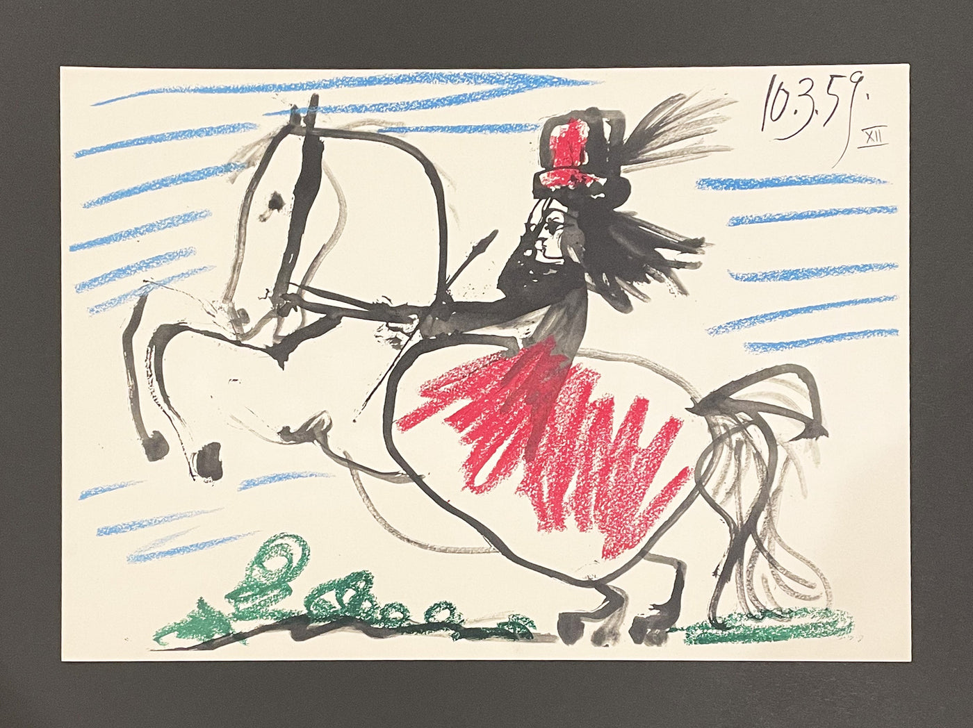 Pablo Picasso was born on October 25, 1881, in Málaga, Spain. The son of an academic painter, José Ruiz Blanco, he began to draw at an early age. In 1895, the Picasso family moved to Barcelona. It was there that Pablo studied at La Lonja, the local academy of fine arts. His association with the patrons of the café Els Quatre Gats in the late 1890s was crucial to his early artistic development in that the café was a nexus of social life among artists, authors, musicians, and the like, as well as the site of several music performances and tertulias ('literary gatherings'). In 1900, Pablo Picasso's first exhibition took place in Barcelona, and in the fall of the same year he visited Paris for the first time. It was in Paris where he observed the paintings of Edouard Manet, Gustave Courbet, and Henri Toulouse-Lautrec. He settled there in April 1904, and soon his circle of friends included the poet Guillaume Apollinaire, writer Max Jacob, Gertrude and Leo Stein, and art dealers Ambroise Vollard and Berthe Weill. Picasso's visual style and choice of subject matter developed dramatically over a short period of time. The time between 1901 and 1904 has come be known as his 'Blue Period,' 1905 his 'Rose Period,' from 1908 to 1911 his Analytic Cubist phase, and from 1912 forward his Synthetic Cubist phase. The Blue Period is named for Picasso's color palette at the time, and is distinguished by its subject matter: vagrants, outcasts, prostitutes, and otherwise marginalized people. The Rose Period marked a brightening of Picasso's palette: pinks, beiges, roses, and light blues. His choice of subject matter followed suit: clowns, harlequins, and saltimbanques ('circus people'). Picasso's name is synonymous with the development of Cubism, which is the permutation of several artistic trends and of the styles of certain artists. Through Gertrude and Leo Stein, Picasso knew Henri Matisse, who had stirred audiences in 1905 with paintings displaying harsh, dissonant colors. Critics chided Matisse's paintings, while Picasso admired them. He also admired the so-called 'primitive' works of Henri Rousseau. While in Paris, Picasso frequented the Musée d'Ethnographie du Trocadéro, where he saw works of indigenous African art, and in Spain discovered ancient Iberian sculpture. Through a collaboration with the artist Georges Braque, Picasso gradually combined his influences into a wholly original style, which fragmented three-dimensional forms into abstract geometric shapes that intertwined and overlapped each other. His first major Cubist work was the renowned Les Demoiselles d'Avignon, which he completed in 1907 but didn't not show to anyone until 1916. By 1936, the Spanish Civil War affected Pablo Picasso immensely, and the following year he completed Guernica, which depicts the bombing of the Spanish city of the same name. Picasso's association with the Communist Party began in 1944, and in the latter half of the decade he lived in the southern France. Among the large number of Picasso exhibitions that were held during the artist's lifetime, those at Museum of Modern Art in New York in 1939 and at the Musée des Arts Décoratifs in Paris in 1955 were the most significant. In 1961, the artist married Jacqueline Roque, and they moved to the town of Mougins. He continued to work in painting, drawing, prints, ceramics, and sculpture there until his death on April 8, 1973.