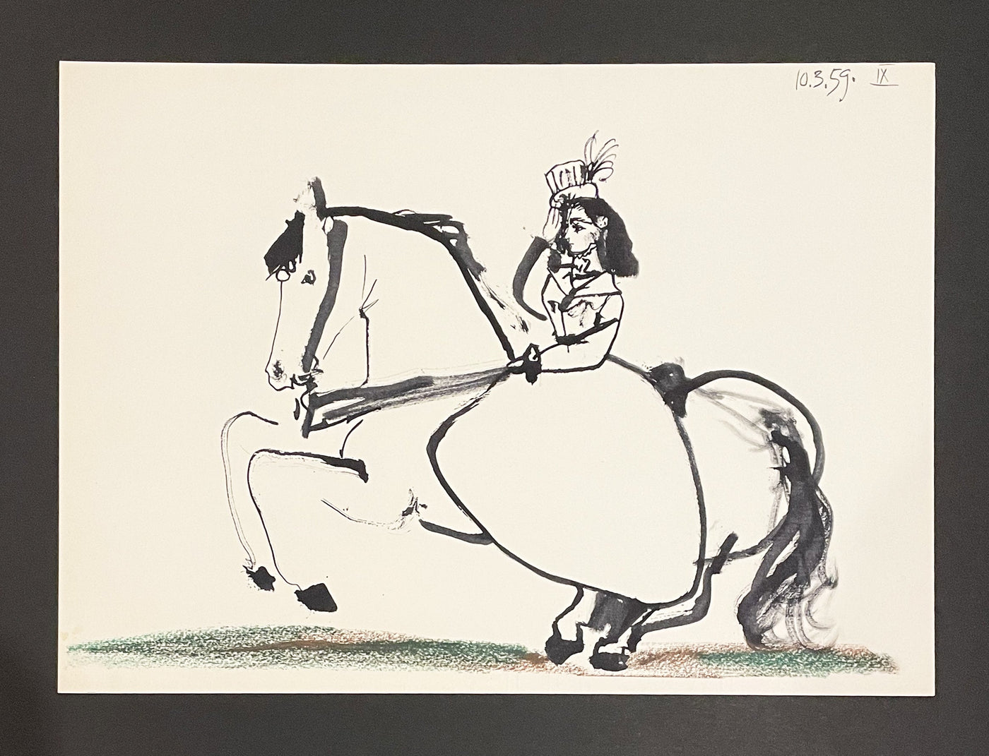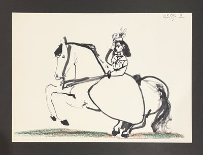 Pablo Picasso was born on October 25, 1881, in Málaga, Spain. The son of an academic painter, José Ruiz Blanco, he began to draw at an early age. In 1895, the Picasso family moved to Barcelona. It was there that Pablo studied at La Lonja, the local academy of fine arts. His association with the patrons of the café Els Quatre Gats in the late 1890s was crucial to his early artistic development in that the café was a nexus of social life among artists, authors, musicians, and the like, as well as the site of several music performances and tertulias ('literary gatherings'). In 1900, Pablo Picasso's first exhibition took place in Barcelona, and in the fall of the same year he visited Paris for the first time. It was in Paris where he observed the paintings of Edouard Manet, Gustave Courbet, and Henri Toulouse-Lautrec. He settled there in April 1904, and soon his circle of friends included the poet Guillaume Apollinaire, writer Max Jacob, Gertrude and Leo Stein, and art dealers Ambroise Vollard and Berthe Weill. Picasso's visual style and choice of subject matter developed dramatically over a short period of time. The time between 1901 and 1904 has come be known as his 'Blue Period,' 1905 his 'Rose Period,' from 1908 to 1911 his Analytic Cubist phase, and from 1912 forward his Synthetic Cubist phase. The Blue Period is named for Picasso's color palette at the time, and is distinguished by its subject matter: vagrants, outcasts, prostitutes, and otherwise marginalized people. The Rose Period marked a brightening of Picasso's palette: pinks, beiges, roses, and light blues. His choice of subject matter followed suit: clowns, harlequins, and saltimbanques ('circus people'). Picasso's name is synonymous with the development of Cubism, which is the permutation of several artistic trends and of the styles of certain artists. Through Gertrude and Leo Stein, Picasso knew Henri Matisse, who had stirred audiences in 1905 with paintings displaying harsh, dissonant colors. Critics chided Matisse's paintings, while Picasso admired them. He also admired the so-called 'primitive' works of Henri Rousseau. While in Paris, Picasso frequented the Musée d'Ethnographie du Trocadéro, where he saw works of indigenous African art, and in Spain discovered ancient Iberian sculpture. Through a collaboration with the artist Georges Braque, Picasso gradually combined his influences into a wholly original style, which fragmented three-dimensional forms into abstract geometric shapes that intertwined and overlapped each other. His first major Cubist work was the renowned Les Demoiselles d'Avignon, which he completed in 1907 but didn't not show to anyone until 1916. By 1936, the Spanish Civil War affected Pablo Picasso immensely, and the following year he completed Guernica, which depicts the bombing of the Spanish city of the same name. Picasso's association with the Communist Party began in 1944, and in the latter half of the decade he lived in the southern France. Among the large number of Picasso exhibitions that were held during the artist's lifetime, those at Museum of Modern Art in New York in 1939 and at the Musée des Arts Décoratifs in Paris in 1955 were the most significant. In 1961, the artist married Jacqueline Roque, and they moved to the town of Mougins. He continued to work in painting, drawing, prints, ceramics, and sculpture there until his death on April 8, 1973.
