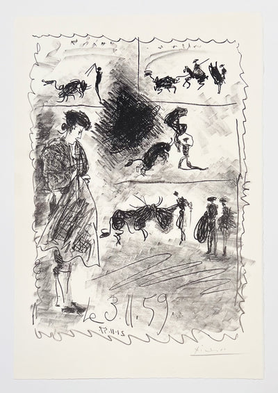 Pablo Picasso was born on October 25, 1881, in Málaga, Spain. The son of an academic painter, José Ruiz Blanco, he began to draw at an early age. In 1895, the Picasso family moved to Barcelona. It was there that Pablo studied at La Lonja, the local academy of fine arts. His association with the patrons of the café Els Quatre Gats in the late 1890s was crucial to his early artistic development in that the café was a nexus of social life among artists, authors, musicians, and the like, as well as the site of several music performances and tertulias ('literary gatherings'). In 1900, Pablo Picasso's first exhibition took place in Barcelona, and in the fall of the same year he visited Paris for the first time. It was in Paris where he observed the paintings of Edouard Manet, Gustave Courbet, and Henri Toulouse-Lautrec. He settled there in April 1904, and soon his circle of friends included the poet Guillaume Apollinaire, writer Max Jacob, Gertrude and Leo Stein, and art dealers Ambroise Vollard and Berthe Weill. Picasso's visual style and choice of subject matter developed dramatically over a short period of time. The time between 1901 and 1904 has come be known as his 'Blue Period,' 1905 his 'Rose Period,' from 1908 to 1911 his Analytic Cubist phase, and from 1912 forward his Synthetic Cubist phase. The Blue Period is named for Picasso's color palette at the time, and is distinguished by its subject matter: vagrants, outcasts, prostitutes, and otherwise marginalized people. The Rose Period marked a brightening of Picasso's palette: pinks, beiges, roses, and light blues. His choice of subject matter followed suit: clowns, harlequins, and saltimbanques ('circus people'). Picasso's name is synonymous with the development of Cubism, which is the permutation of several artistic trends and of the styles of certain artists. Through Gertrude and Leo Stein, Picasso knew Henri Matisse, who had stirred audiences in 1905 with paintings displaying harsh, dissonant colors. Critics chided Matisse's paintings, while Picasso admired them. He also admired the so-called 'primitive' works of Henri Rousseau. While in Paris, Picasso frequented the Musée d'Ethnographie du Trocadéro, where he saw works of indigenous African art, and in Spain discovered ancient Iberian sculpture. Through a collaboration with the artist Georges Braque, Picasso gradually combined his influences into a wholly original style, which fragmented three-dimensional forms into abstract geometric shapes that intertwined and overlapped each other. His first major Cubist work was the renowned Les Demoiselles d'Avignon, which he completed in 1907 but didn't not show to anyone until 1916. By 1936, the Spanish Civil War affected Pablo Picasso immensely, and the following year he completed Guernica, which depicts the bombing of the Spanish city of the same name. Picasso's association with the Communist Party began in 1944, and in the latter half of the decade he lived in the southern France. Among the large number of Picasso exhibitions that were held during the artist's lifetime, those at Museum of Modern Art in New York in 1939 and at the Musée des Arts Décoratifs in Paris in 1955 were the most significant. In 1961, the artist married Jacqueline Roque, and they moved to the town of Mougins. He continued to work in painting, drawing, prints, ceramics, and sculpture there until his death on April 8, 1973.