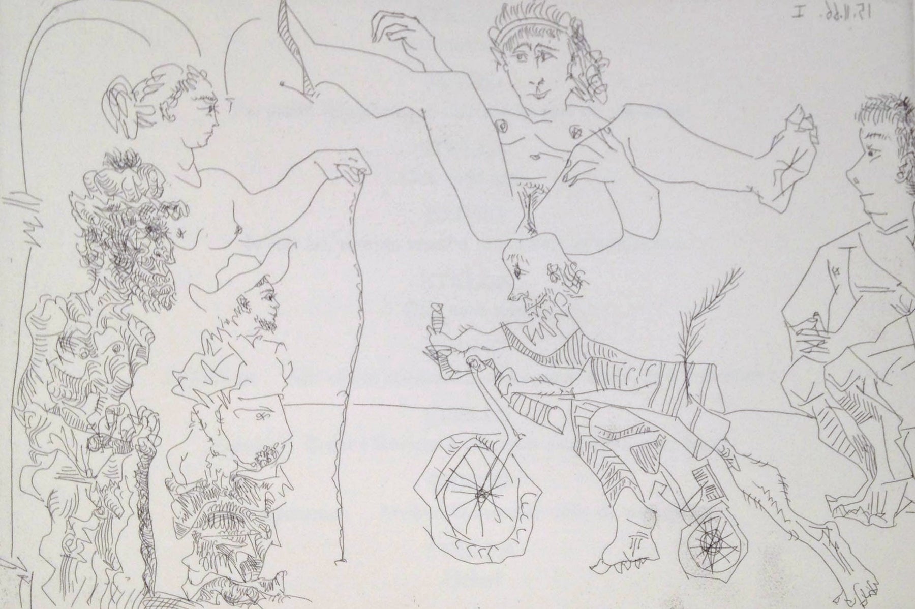 Pablo Picasso, Pablo Picasso Cocu Magnifique, 1968 Cocu Magnifique Portfolio, (Cramer 140), 1968, Unsigned, Etching on Rives wove, Edition 68/180, 15" x 11 Sheet Size, 12" x 8" Image Size
