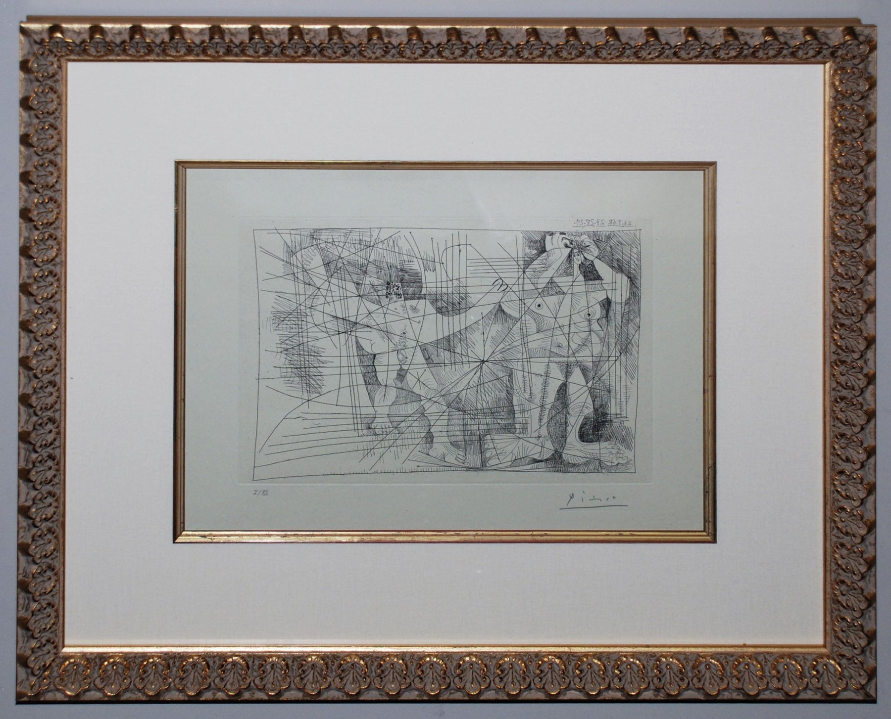 Pablo Picasso was born on October 25, 1881, in Málaga, Spain. The son of an academic painter, José Ruiz Blanco, he began to draw at an early age. In 1895, the Picasso family moved to Barcelona. It was there that Pablo studied at La Lonja, the local academy of fine arts. His association with the patrons of the café Els Quatre Gats in the late 1890s was crucial to his early artistic development in that the café was a nexus of social life among artists, authors, musicians, and the like, as well as the site of several music performances and tertulias ('literary gatherings'). In 1900, Pablo Picasso's first exhibition took place in Barcelona, and in the fall of the same year he visited Paris for the first time. It was in Paris where he observed the paintings of Edouard Manet, Gustave Courbet, and Henri Toulouse-Lautrec. He settled there in April 1904, and soon his circle of friends included the poet Guillaume Apollinaire, writer Max Jacob, Gertrude and Leo Stein, and art dealers Ambroise Vollard and Berthe Weill. Picasso's visual style and choice of subject matter developed dramatically over a short period of time. The time between 1901 and 1904 has come be known as his 'Blue Period,' 1905 his 'Rose Period,' from 1908 to 1911 his Analytic Cubist phase, and from 1912 forward his Synthetic Cubist phase. The Blue Period is named for Picasso's color palette at the time, and is distinguished by its subject matter: vagrants, outcasts, prostitutes, and otherwise marginalized people. The Rose Period marked a brightening of Picasso's palette: pinks, beiges, roses, and light blues. His choice of subject matter followed suit: clowns, harlequins, and saltimbanques ('circus people'). Picasso's name is synonymous with the development of Cubism, which is the permutation of several artistic trends and of the styles of certain artists. Through Gertrude and Leo Stein, Picasso knew Henri Matisse, who had stirred audiences in 1905 with paintings displaying harsh, dissonant colors. Critics chided Matisse's paintings, while Picasso admired them. He also admired the so-called 'primitive' works of Henri Rousseau. While in Paris, Picasso frequented the Musée d'Ethnographie du Trocadéro, where he saw works of indigenous African art, and in Spain discovered ancient Iberian sculpture. Through a collaboration with the artist Georges Braque, Picasso gradually combined his influences into a wholly original style, which fragmented three-dimensional forms into abstract geometric shapes that intertwined and overlapped each other. His first major Cubist work was the renowned Les Demoiselles d'Avignon, which he completed in 1907 but didn't not show to anyone until 1916. By 1936, the Spanish Civil War affected Pablo Picasso immensely, and the following year he completed Guernica, which depicts the bombing of the Spanish city of the same name. Picasso's association with the Communist Party began in 1944, and in the latter half of the decade he lived in the southern France. Among the large number of Picasso exhibitions that were held during the artist's lifetime, those at Museum of Modern Art in New York in 1939 and at the Musée des Arts Décoratifs in Paris in 1955 were the most significant. In 1961, the artist married Jacqueline Roque, and they moved to the town of Mougins. He continued to work in painting, drawing, prints, ceramics, and sculpture there until his death on April 8, 1973.