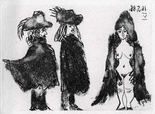 Pablo Picasso was born on October 25, 1881, in Málaga, Spain. The son of an academic painter, José Ruiz Blanco, he began to draw at an early age. In 1895, the Picasso family moved to Barcelona. It was there that Pablo studied at La Lonja, the local academy of fine arts. His association with the patrons of the café Els Quatre Gats in the late 1890s was crucial to his early artistic development in that the café was a nexus of social life among artists, authors, musicians, and the like, as well as the site of several music performances and tertulias ('literary gatherings'). In 1900, Pablo Picasso's first exhibition took place in Barcelona, and in the fall of the same year he visited Paris for the first time. It was in Paris where he observed the paintings of Edouard Manet, Gustave Courbet, and Henri Toulouse-Lautrec. He settled there in April 1904, and soon his circle of friends included the poet Guillaume Apollinaire, writer Max Jacob, Gertrude and Leo Stein, and art dealers Ambroise Vollard and Berthe Weill. Picasso's visual style and choice of subject matter developed dramatically over a short period of time. The time between 1901 and 1904 has come be known as his 'Blue Period,' 1905 his 'Rose Period,' from 1908 to 1911 his Analytic Cubist phase, and from 1912 forward his Synthetic Cubist phase. The Blue Period is named for Picasso's color palette at the time, and is distinguished by its subject matter: vagrants, outcasts, prostitutes, and otherwise marginalized people. The Rose Period marked a brightening of Picasso's palette: pinks, beiges, roses, and light blues. His choice of subject matter followed suit: clowns, harlequins, and saltimbanques ('circus people'). Picasso's name is synonymous with the development of Cubism, which is the permutation of several artistic trends and of the styles of certain artists. Through Gertrude and Leo Stein, Picasso knew Henri Matisse, who had stirred audiences in 1905 with paintings displaying harsh, dissonant colors. Critics chided Matisse's paintings, while Picasso admired them. He also admired the so-called 'primitive' works of Henri Rousseau. While in Paris, Picasso frequented the Musée d'Ethnographie du Trocadéro, where he saw works of indigenous African art, and in Spain discovered ancient Iberian sculpture. Through a collaboration with the artist Georges Braque, Picasso gradually combined his influences into a wholly original style, which fragmented three-dimensional forms into abstract geometric shapes that intertwined and overlapped each other. His first major Cubist work was the renowned Les Demoiselles d'Avignon, which he completed in 1907 but didn't not show to anyone until 1916. By 1936, the Spanish Civil War affected Pablo Picasso immensely, and the following year he completed Guernica, which depicts the bombing of the Spanish city of the same name. Picasso's association with the Communist Party began in 1944, and in the latter half of the decade he lived in the southern France. Among the large number of Picasso exhibitions that were held during the artist's lifetime, those at Museum of Modern Art in New York in 1939 and at the Musée des Arts Décoratifs in Paris in 1955 were the most significant. In 1961, the artist married Jacqueline Roque, and they moved to the town of Mougins. He continued to work in painting, drawing, prints, ceramics, and sculpture there until his death on April 8, 1973.