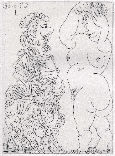 Pablo Picasso Jeune Femme Montrant son Sexe a Deux Courtisans
