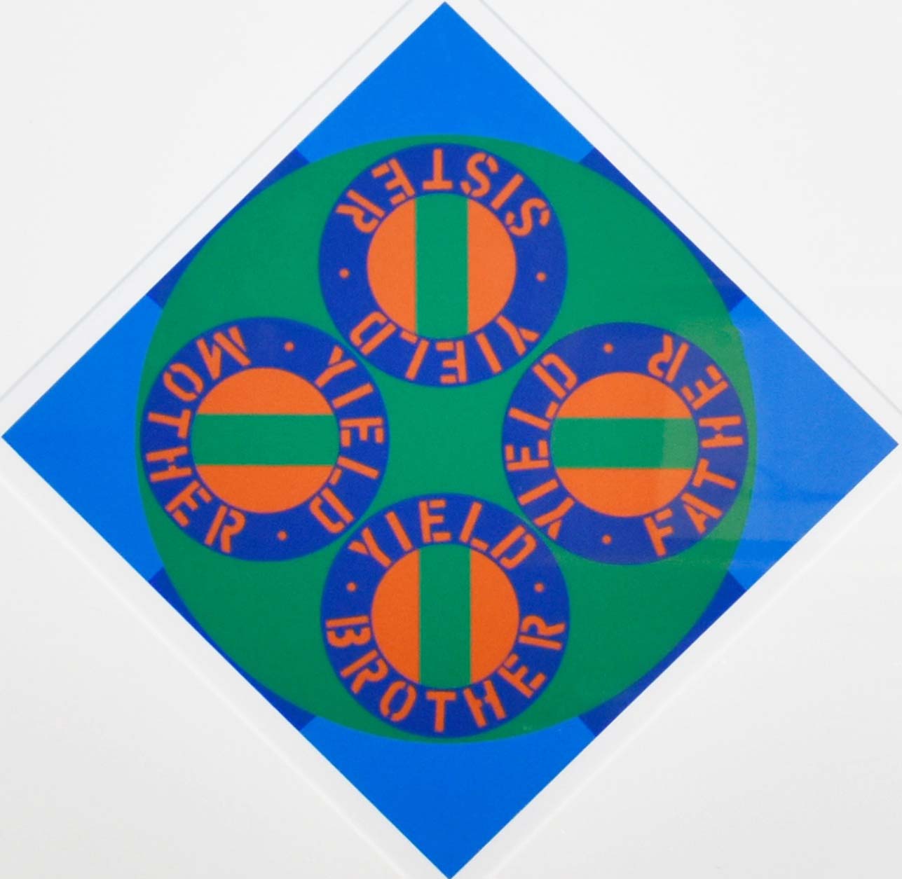 Robert Indiana was born Robert Clark in New Castle, Indiana, on September 13th, 1928. His family later located to Indianapolis, where he attended high school. He moved to New York City in 1954, where he joined the pop art movement. Robert Indiana first gained international attention in the 1960s for combining the American vernacular of road and shop signs with an elevated, conceptual approach that transformed these familiar images into abstractions of American identity. Indiana's best-known works consist of bold, simple, or iconic images, often encapsulated in short words such as EAT, HUG, or his most famous example, LOVE. The image for the LOVE piece was originally designed for a Christmas card for New York's Museum of Modern Art in 1964. Later, the same image was featured on an eight-cent United States Postal Service stamp, the first of their regular series of "love stamps." Three-dimensional sculptures of the same image can be found at a number of American museums and institutions. More recently, Indiana reformulated his iconic style to suit a new political generation by designing a logo for President Barack Obama's 2008 campaign, substituting the word "hope" for "love." A stainless steel sculpture of HOPE was unveiled at the Pepsi Center in Denver in advance of the 2008 Democratic National Convention formally recognizing Obama's candidacy. Indiana continues to produce works of art that are both novel and familiar, most recently designing a variation of LOVE for Google to replace the search engine's well-known logo on Valentine's Day 2011.