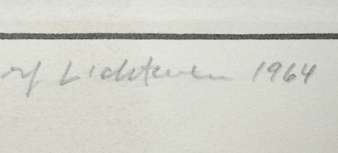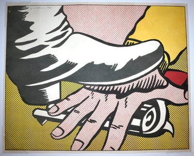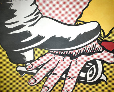 Roy Lichtenstein was born in New York in 1923. He grew up under no specific artistic influence, though at fourteen he began to study painting at the Parson's School of Design, from 1940 to 1943 at the Art Students' League, and from 1946 to 1949 at Ohio State University. Together with Andy Warhol, Lichtenstein is considered a harbinger of the Pop Art movement. Lichtenstein's first experiments with popular images date to 1956, when abstract expressionism was the dominant art movement. Though Lichtenstein had experimented with abstract expressionism, he came to prominence with a painting of Mickey Mouse and Donald Duck. Lichtenstein allegedly painted it for his children who had provoked him by saying that he could not paint as well as the images in the comic books. Lichtenstein worked to a great extent with stencils, producing rows of oversized dots intended to make his paintings or prints look like mass-produced commercial products. He wanted his paintings to look machine-made, with no brushstrokes seen. Lichtenstein produced several prints from various techniques -including lithographs, screenprints, etchings and woodcuts- and would often combine these techniques into one print. His imagery typically contained ironic, humorous, and witty content. Lichtenstein once said: "I'd rather use the word 'dealing with' than 'parody.' I am sure there are certain aspects of irony, but I get really involved in making the paintings when I am working on them, and I think just to make parodies or to be ironic about something in the past is much too much of a joke for that to carry your work as a work of art."