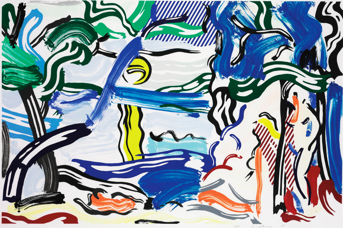 Roy Lichtenstein was born in New York in 1923. He grew up under no specific artistic influence, though at fourteen he began to study painting at the Parson's School of Design, from 1940 to 1943 at the Art Students' League, and from 1946 to 1949 at Ohio State University. Together with Andy Warhol, Lichtenstein is considered a harbinger of the Pop Art movement. Lichtenstein's first experiments with popular images date to 1956, when abstract expressionism was the dominant art movement. Though Lichtenstein had experimented with abstract expressionism, he came to prominence with a painting of Mickey Mouse and Donald Duck. Lichtenstein allegedly painted it for his children who had provoked him by saying that he could not paint as well as the images in the comic books. Lichtenstein worked to a great extent with stencils, producing rows of oversized dots intended to make his paintings or prints look like mass-produced commercial products. He wanted his paintings to look machine-made, with no brushstrokes seen. Lichtenstein produced several prints from various techniques -including lithographs, screenprints, etchings and woodcuts- and would often combine these techniques into one print. His imagery typically contained ironic, humorous, and witty content. Lichtenstein once said: "I'd rather use the word 'dealing with' than 'parody.' I am sure there are certain aspects of irony, but I get really involved in making the paintings when I am working on them, and I think just to make parodies or to be ironic about something in the past is much too much of a joke for that to carry your work as a work of art."