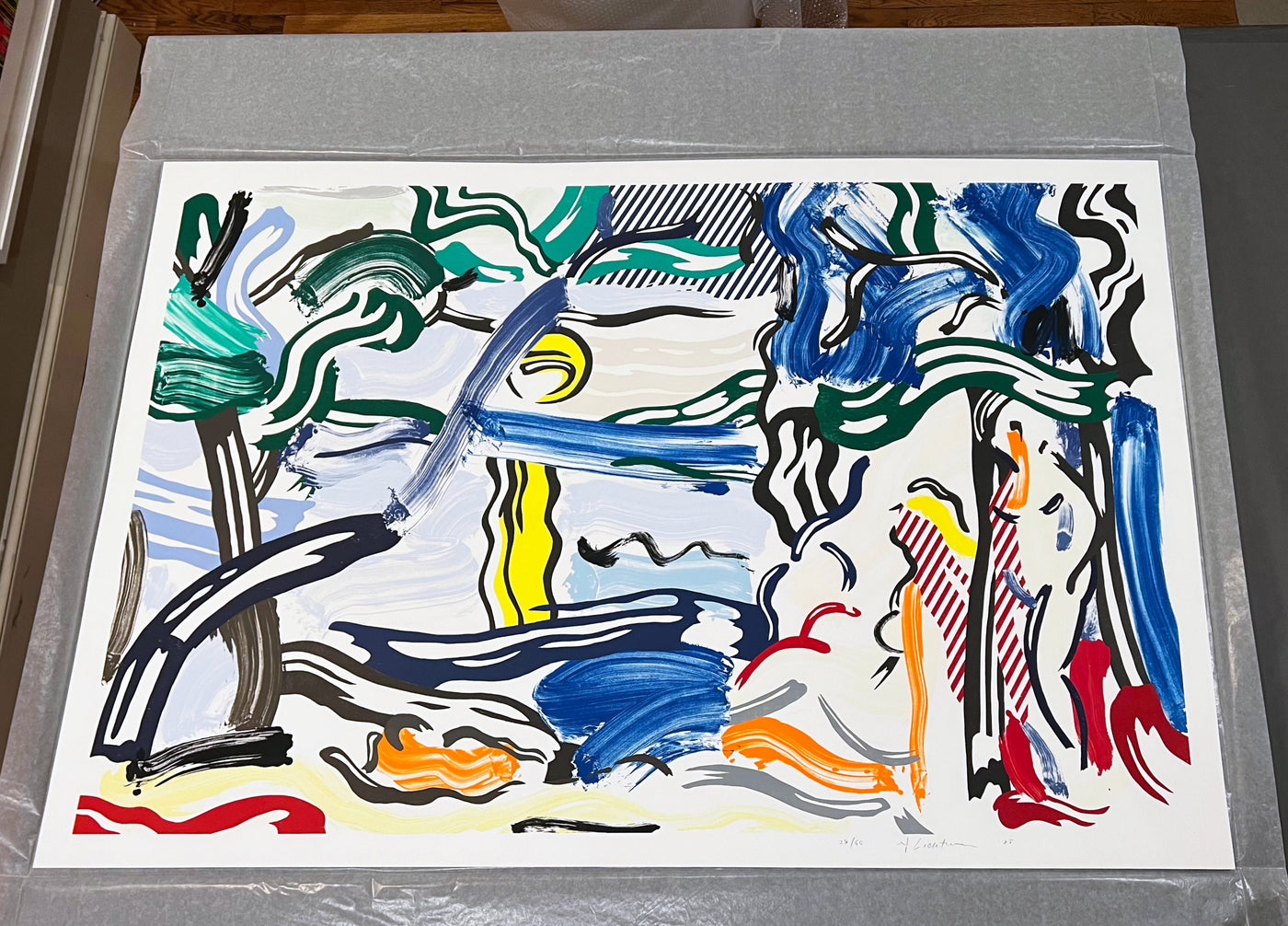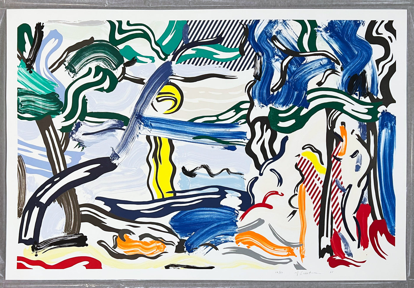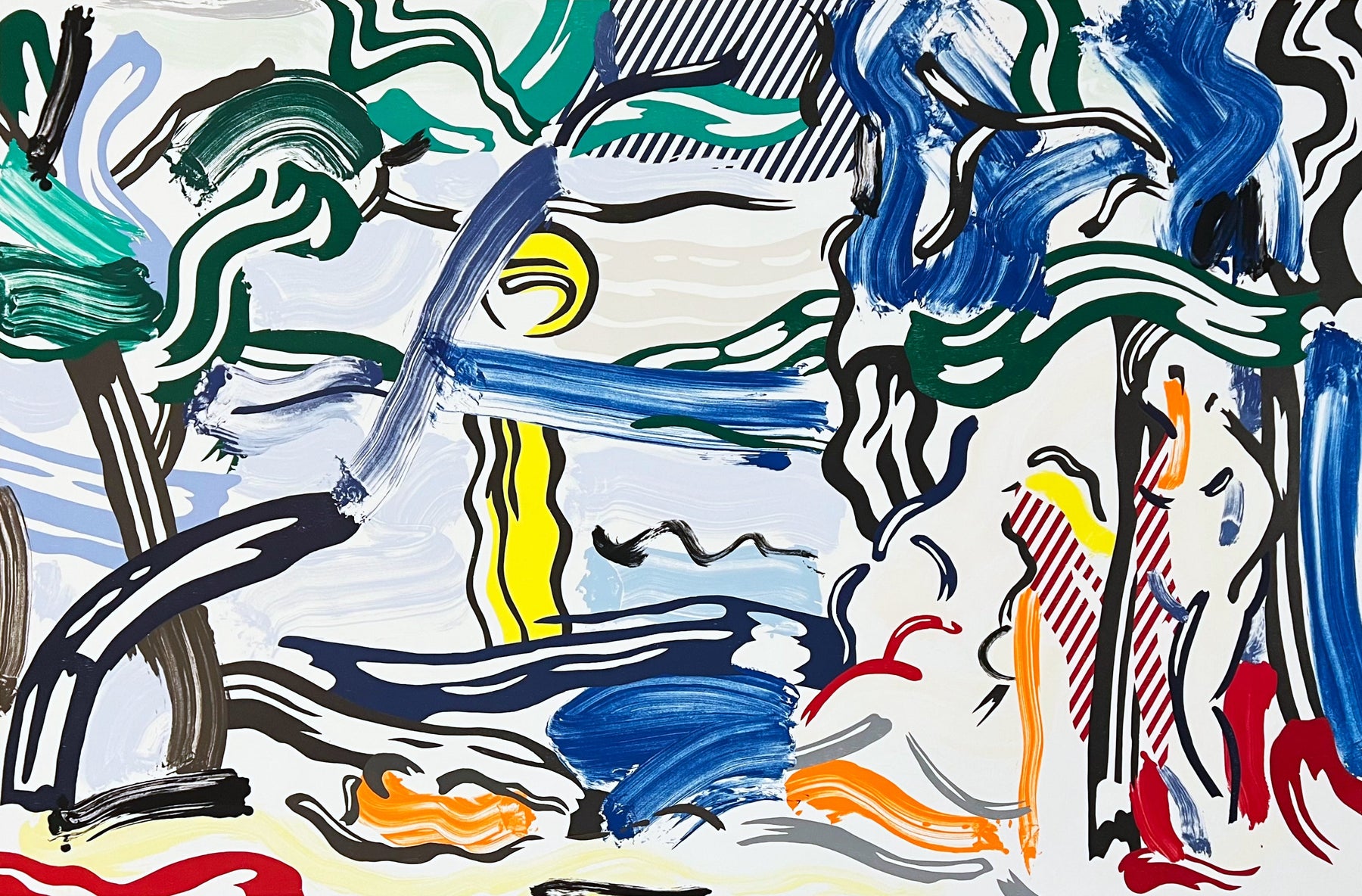 Roy Lichtenstein, Moonscape from The Landscape Series, (Corlett 212), 1985, Signed, Lithograph, woodcut, and screenprint on Arches 88 paper, Edition 28/60, 37 1/4" x 55 1/4" Sheet Size, 34 1/4" x 52 3/8" Image Size