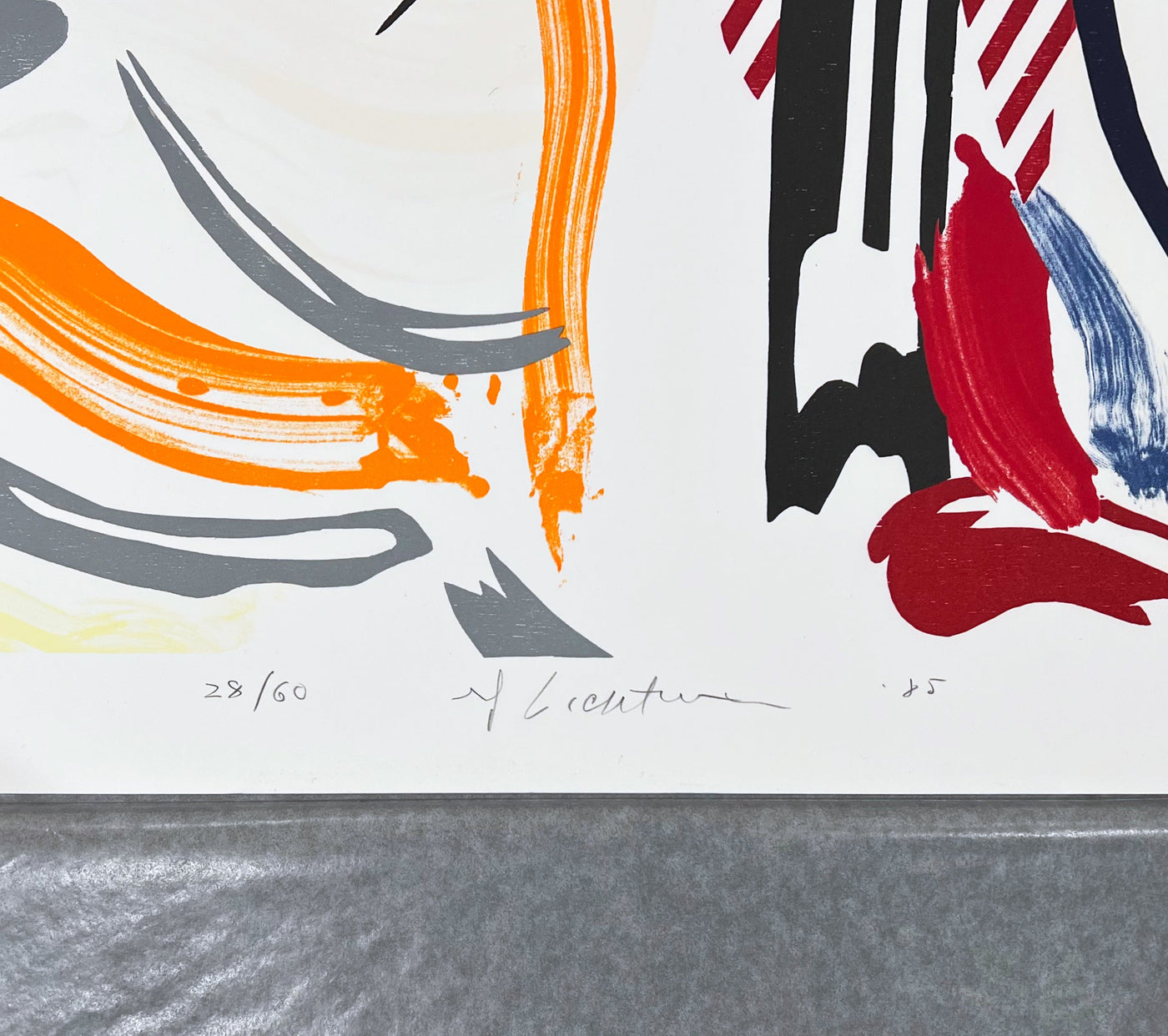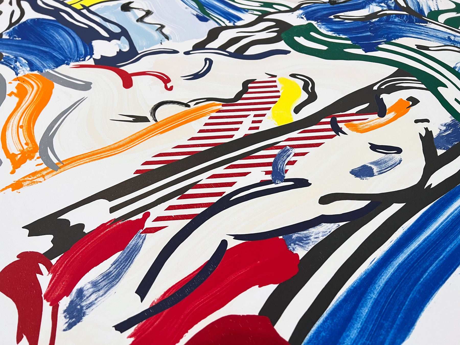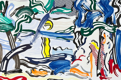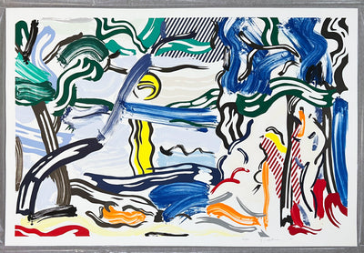 Roy Lichtenstein was born in New York in 1923. He grew up under no specific artistic influence, though at fourteen he began to study painting at the Parson's School of Design, from 1940 to 1943 at the Art Students' League, and from 1946 to 1949 at Ohio State University. Together with Andy Warhol, Lichtenstein is considered a harbinger of the Pop Art movement. Lichtenstein's first experiments with popular images date to 1956, when abstract expressionism was the dominant art movement. Though Lichtenstein had experimented with abstract expressionism, he came to prominence with a painting of Mickey Mouse and Donald Duck. Lichtenstein allegedly painted it for his children who had provoked him by saying that he could not paint as well as the images in the comic books. Lichtenstein worked to a great extent with stencils, producing rows of oversized dots intended to make his paintings or prints look like mass-produced commercial products. He wanted his paintings to look machine-made, with no brushstrokes seen. Lichtenstein produced several prints from various techniques -including lithographs, screenprints, etchings and woodcuts- and would often combine these techniques into one print. His imagery typically contained ironic, humorous, and witty content. Lichtenstein once said: "I'd rather use the word 'dealing with' than 'parody.' I am sure there are certain aspects of irony, but I get really involved in making the paintings when I am working on them, and I think just to make parodies or to be ironic about something in the past is much too much of a joke for that to carry your work as a work of art."