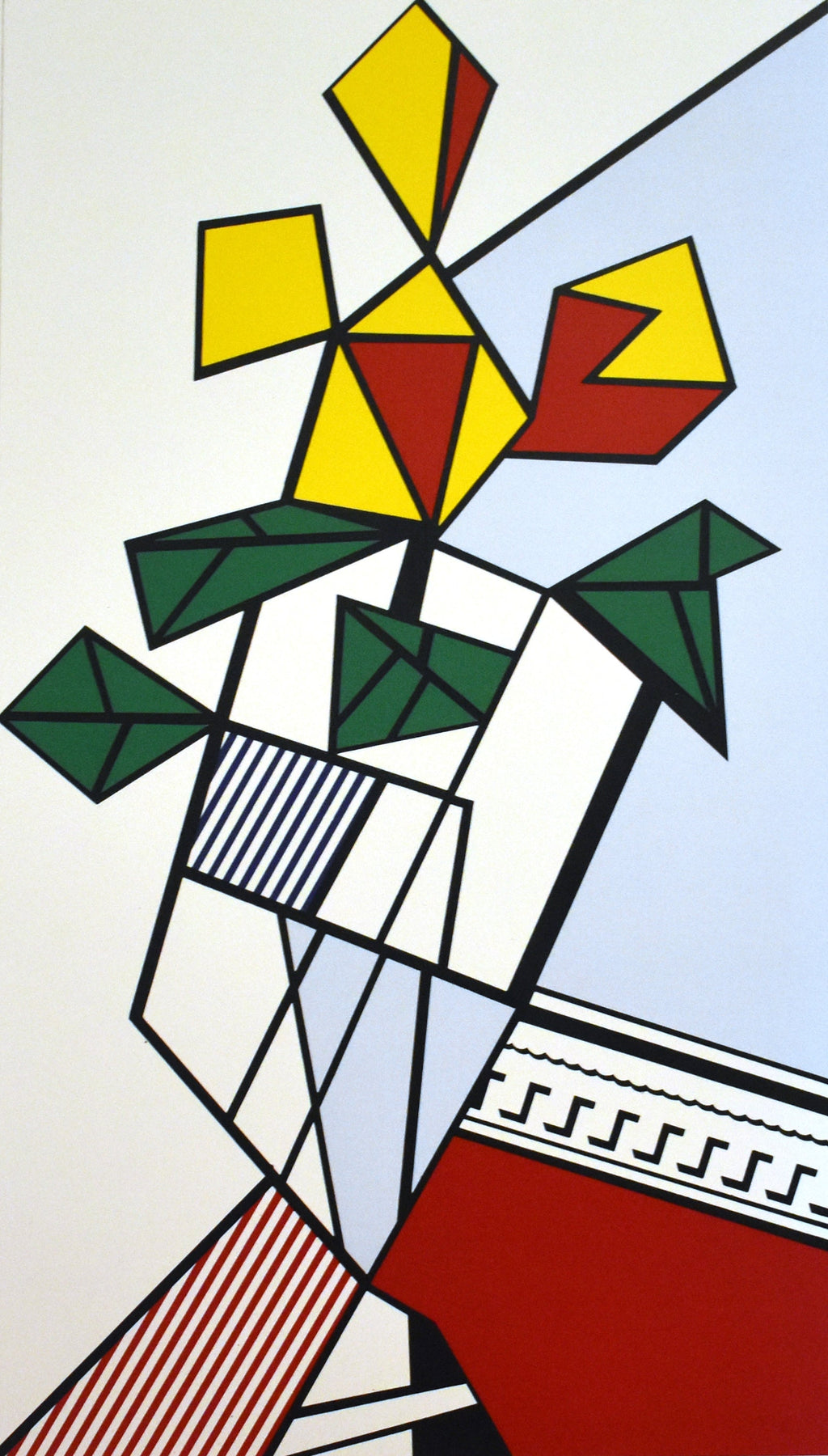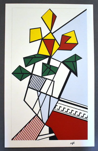 Roy Lichtenstein was born in New York in 1923. He grew up under no specific artistic influence, though at fourteen he began to study painting at the Parson's School of Design, from 1940 to 1943 at the Art Students' League, and from 1946 to 1949 at Ohio State University. Together with Andy Warhol, Lichtenstein is considered a harbinger of the Pop Art movement. Lichtenstein's first experiments with popular images date to 1956, when abstract expressionism was the dominant art movement. Though Lichtenstein had experimented with abstract expressionism, he came to prominence with a painting of Mickey Mouse and Donald Duck. Lichtenstein allegedly painted it for his children who had provoked him by saying that he could not paint as well as the images in the comic books. Lichtenstein worked to a great extent with stencils, producing rows of oversized dots intended to make his paintings or prints look like mass-produced commercial products. He wanted his paintings to look machine-made, with no brushstrokes seen. Lichtenstein produced several prints from various techniques -including lithographs, screenprints, etchings and woodcuts- and would often combine these techniques into one print. His imagery typically contained ironic, humorous, and witty content. Lichtenstein once said: "I'd rather use the word 'dealing with' than 'parody.' I am sure there are certain aspects of irony, but I get really involved in making the paintings when I am working on them, and I think just to make parodies or to be ironic about something in the past is much too much of a joke for that to carry your work as a work of art."
