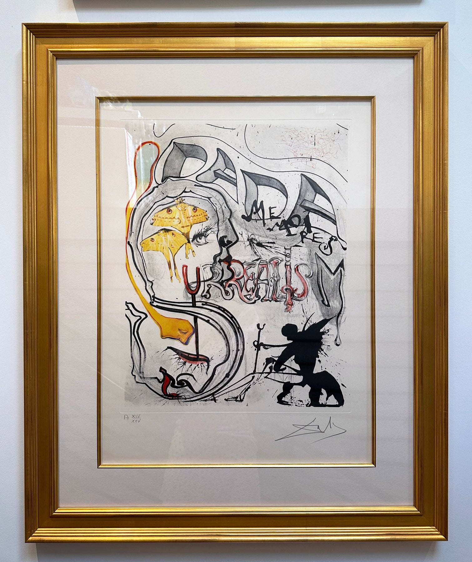 The surrealist Salvador Dali is considered to be one of the masters of 20th-Century art. His work juxtaposes a meticulous academic technique with depictions of hallucinatory characters in fantastic dreamscapes. He described his art as 'hand-painted dream photographs,' and had certain preferred and recurring images, such as the human figure with half-open drawers protruding from it, burning giraffes, and watches bent and flowing as if made from melting wax. Salvador Domenec Felip Jacint Dali Domenech was born May 11, 1904 in Figueras, Catalonia, Spain. His father, a prominent notary, encouraged his artistic inclinations and arranged for drawing lessons at age ten from the Spanish impressionist painter, Ramon Pichot. At eighteen, Dali moved to Madrid to study painting at the Academy of Arts. He developed a reputation as an eccentric, attracting attention with his manner of dress, hairstyle, and provocative comments on art. The artist experimented with forms of Cubism and Dadaism during his studies. Dali was expelled before final exams, after asserting that those judging his work were not competent enough to grade him. After leaving the Academy, Dali went to Paris where he met Spanish painters Pablo Picasso and Joan Miro. He established himself as the principal figure of a group of surrealist artists grouped around French poet Andre Breton. The surrealists hailed what Dali called the 'paranoiac-critical' method of accessing the subconscious for greater artistic creativity. Essentially, it is the ability of the artist or the viewer to perceive multiple images within the same configuration and a process through which Dali found new and unique ways to view the world around him. Years later Breton turned away from Dali, accusing him of supporting fascism, excessive self-presentation, and financial greediness. He was officially expelled from the group in 1934, in part because of his controversial political views, and was henceforth spoken about by the surrealists in past-tense, as if he were dead. Breton later coined the nickname Avida Dollars for Dali, an anagram of his name meaning 'greedy for dollars.' In addition to Surrealism, psychologist Dr. Sigmund Freud's theory of the unconscious -introduced to Dali in Freud's book The Interpretation of Dreams- also strongly influenced Dali's work and philosophy. Throughout the 1920s and early 1930s, Dali perfected the personal style that made him famous: a world of the unconscious that is recalled during one's dreams. In his work, he would juxtapose incongruous, unrelated, and often bizarre objects against desolate landscapes. This disturbing blend of precise realism and dreamlike fantasy became his hallmark. In 1929, Dali met his wife-to-be Gala. Gala (born Elena Ivanovna Diakonova), a Russian immigrant eleven years his senior, was then married to the surrealist poet Paul Éluard. Dali and Gala were married in a civil service in 1934, and again in a church after Eluard's death. Gala was Dali's muse, inspiration, lover, and model, as well as his business manager. Dali had his first one-man show in New York in 1933. With a $500 loan from Pablo Picasso, Dali was able to visit the United States for the first time a year later. In the late 1930s, he made several trips to Italy to study the art of the sixteenth and seventeenth centuries, eventually becaming an admirer of Raphael. In 1940, Dali and Gala claimed permanent residency in the United States in order to evade World War II. During his eight years in the U.S., Dali found great success, having a series of spectacular exhibitions, including a retrospective show at the Museum of Modern Art in New York. He also understood how the media worked and used it to its full potential. His attention seeking comments and flamboyant appearance -a long cape, walking stick, haughty expression, and upturned waxed mustache- helped raise him to celebrity status. He once famously said: "Every morning upon awakening, I experience a supreme pleasure: that of being Salvador Dali." His persona brought him numerous patrons. He executed portraits commissioned by celebrities such as Helena Rubinstein or Jack Warner, designed jewelry for Coco Chanel, and even storyboarded the Walt Disney short film Destiny and designed a dream sequence for Alfred Hitchcock's Spellbound. Dali had been producing limited edition prints as early as the 1930s, however the images he created in the 1960s with publishers Sidney and Phyllis Lucas are considered by collectors the apex of Dali's lithographs. His publishers encouraged the incorporation of classical themes with Surrealism, and together they assembled fascinating graphic works. Gala died in 1982, and Dali's health deteriorated thereafter. He suffered from palsy, and had injuries from a suspicious fire in his house in Pubol in 1984. The end of his life was spent in seclusion, first in Pubol and later in his apartments at Torre Galatea. Dali died on January 23, 1989 in his birth town, Figueras.
