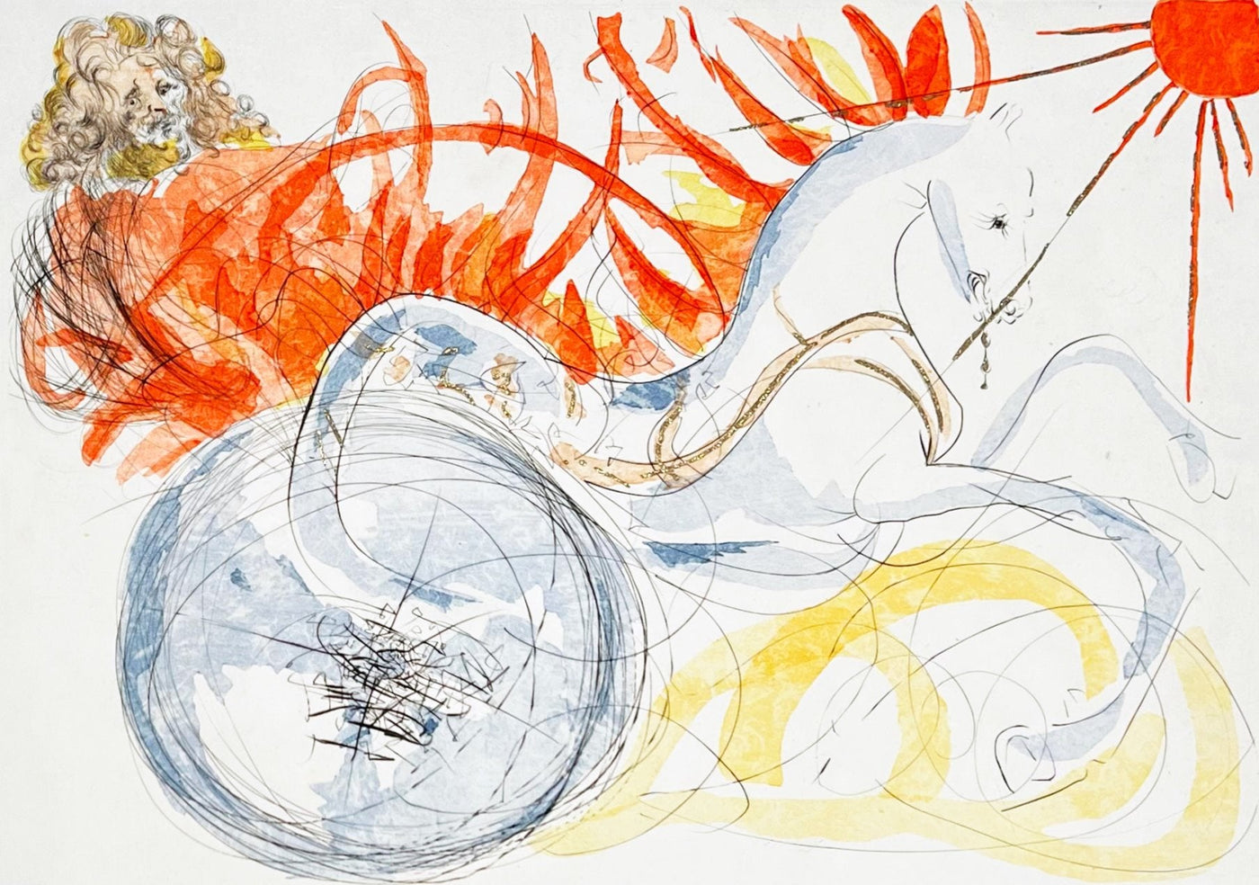 The surrealist Salvador Dali is considered to be one of the masters of 20th-Century art. His work juxtaposes a meticulous academic technique with depictions of hallucinatory characters in fantastic dreamscapes. He described his art as 'hand-painted dream photographs,' and had certain preferred and recurring images, such as the human figure with half-open drawers protruding from it, burning giraffes, and watches bent and flowing as if made from melting wax. Salvador Domenec Felip Jacint Dali Domenech was born May 11, 1904 in Figueras, Catalonia, Spain. His father, a prominent notary, encouraged his artistic inclinations and arranged for drawing lessons at age ten from the Spanish impressionist painter, Ramon Pichot. At eighteen, Dali moved to Madrid to study painting at the Academy of Arts. He developed a reputation as an eccentric, attracting attention with his manner of dress, hairstyle, and provocative comments on art. The artist experimented with forms of Cubism and Dadaism during his studies. Dali was expelled before final exams, after asserting that those judging his work were not competent enough to grade him. After leaving the Academy, Dali went to Paris where he met Spanish painters Pablo Picasso and Joan Miro. He established himself as the principal figure of a group of surrealist artists grouped around French poet Andre Breton. The surrealists hailed what Dali called the 'paranoiac-critical' method of accessing the subconscious for greater artistic creativity. Essentially, it is the ability of the artist or the viewer to perceive multiple images within the same configuration and a process through which Dali found new and unique ways to view the world around him. Years later Breton turned away from Dali, accusing him of supporting fascism, excessive self-presentation, and financial greediness. He was officially expelled from the group in 1934, in part because of his controversial political views, and was henceforth spoken about by the surrealists in past-tense, as if he were dead. Breton later coined the nickname Avida Dollars for Dali, an anagram of his name meaning 'greedy for dollars.' In addition to Surrealism, psychologist Dr. Sigmund Freud's theory of the unconscious -introduced to Dali in Freud's book The Interpretation of Dreams- also strongly influenced Dali's work and philosophy. Throughout the 1920s and early 1930s, Dali perfected the personal style that made him famous: a world of the unconscious that is recalled during one's dreams. In his work, he would juxtapose incongruous, unrelated, and often bizarre objects against desolate landscapes. This disturbing blend of precise realism and dreamlike fantasy became his hallmark. In 1929, Dali met his wife-to-be Gala. Gala (born Elena Ivanovna Diakonova), a Russian immigrant eleven years his senior, was then married to the surrealist poet Paul Éluard. Dali and Gala were married in a civil service in 1934, and again in a church after Eluard's death. Gala was Dali's muse, inspiration, lover, and model, as well as his business manager. Dali had his first one-man show in New York in 1933. With a $500 loan from Pablo Picasso, Dali was able to visit the United States for the first time a year later. In the late 1930s, he made several trips to Italy to study the art of the sixteenth and seventeenth centuries, eventually becaming an admirer of Raphael. In 1940, Dali and Gala claimed permanent residency in the United States in order to evade World War II. During his eight years in the U.S., Dali found great success, having a series of spectacular exhibitions, including a retrospective show at the Museum of Modern Art in New York. He also understood how the media worked and used it to its full potential. His attention seeking comments and flamboyant appearance -a long cape, walking stick, haughty expression, and upturned waxed mustache- helped raise him to celebrity status. He once famously said: "Every morning upon awakening, I experience a supreme pleasure: that of being Salvador Dali." His persona brought him numerous patrons. He executed portraits commissioned by celebrities such as Helena Rubinstein or Jack Warner, designed jewelry for Coco Chanel, and even storyboarded the Walt Disney short film Destiny and designed a dream sequence for Alfred Hitchcock's Spellbound. Dali had been producing limited edition prints as early as the 1930s, however the images he created in the 1960s with publishers Sidney and Phyllis Lucas are considered by collectors the apex of Dali's lithographs. His publishers encouraged the incorporation of classical themes with Surrealism, and together they assembled fascinating graphic works. Gala died in 1982, and Dali's health deteriorated thereafter. He suffered from palsy, and had injuries from a suspicious fire in his house in Pubol in 1984. The end of his life was spent in seclusion, first in Pubol and later in his apartments at Torre Galatea. Dali died on January 23, 1989 in his birth town, Figueras.