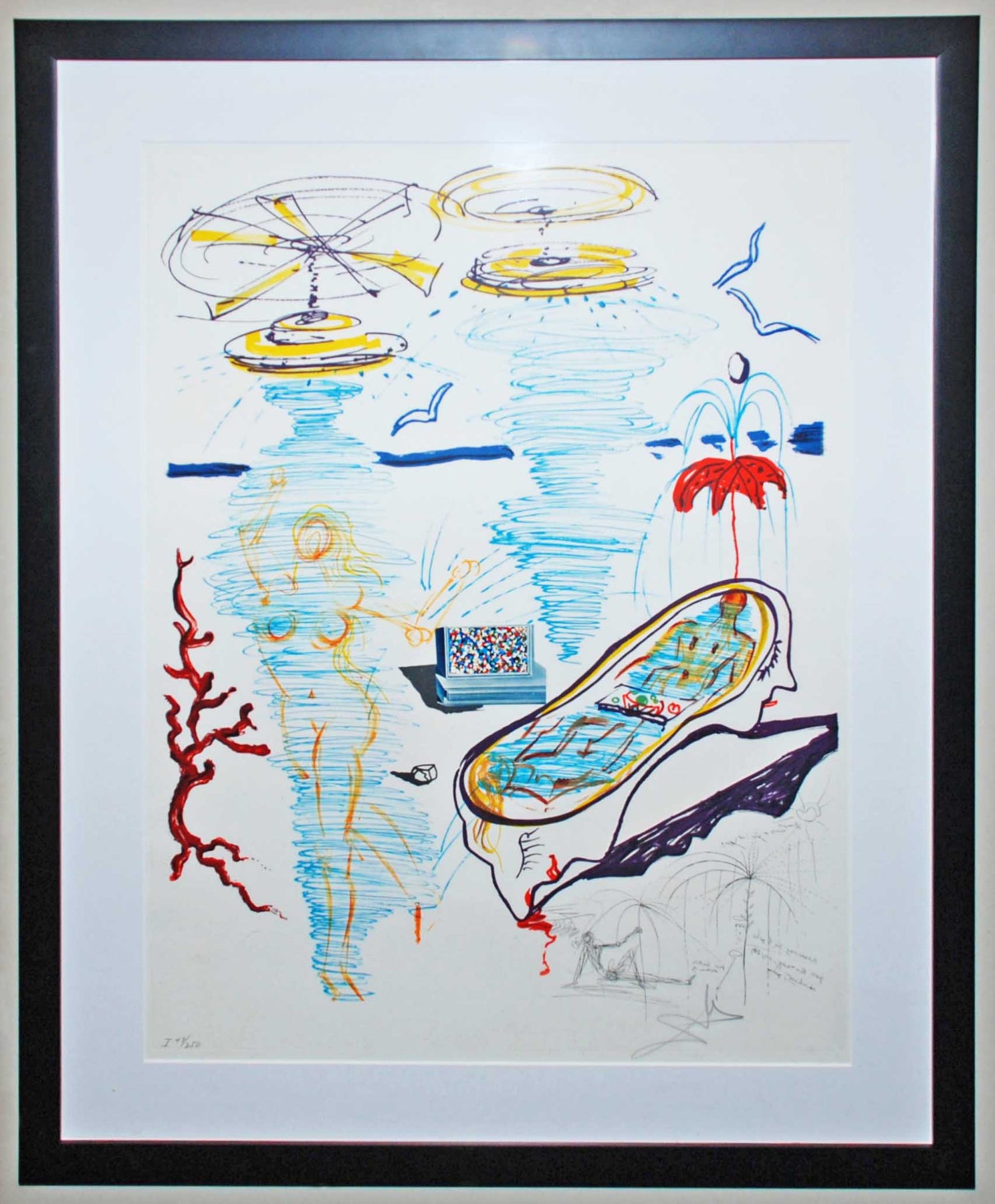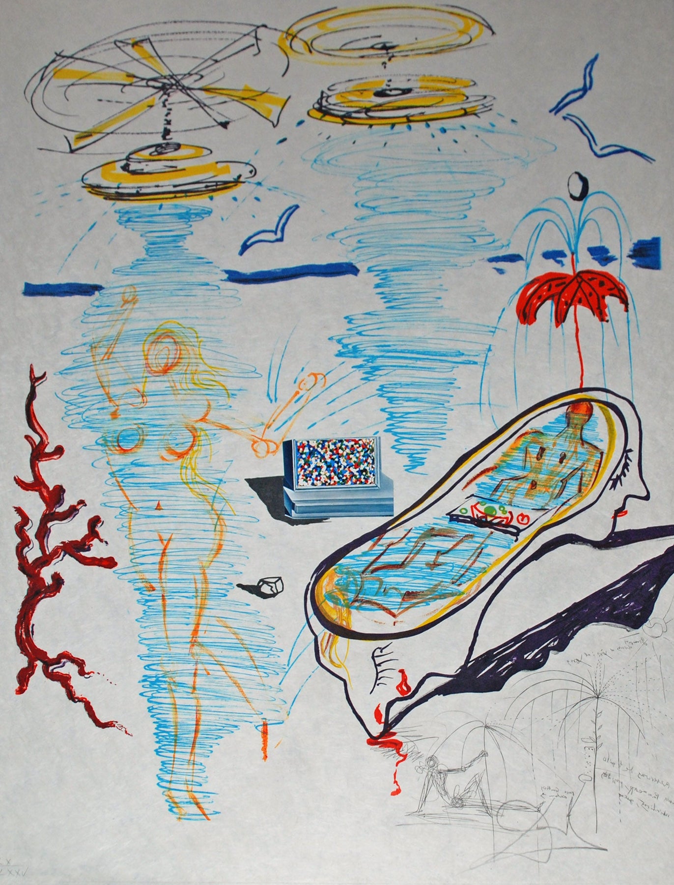 The surrealist Salvador Dali is considered to be one of the masters of 20th-Century art. His work juxtaposes a meticulous academic technique with depictions of hallucinatory characters in fantastic dreamscapes. He described his art as 'hand-painted dream photographs,' and had certain preferred and recurring images, such as the human figure with half-open drawers protruding from it, burning giraffes, and watches bent and flowing as if made from melting wax. Salvador Domenec Felip Jacint Dali Domenech was born May 11, 1904 in Figueras, Catalonia, Spain. His father, a prominent notary, encouraged his artistic inclinations and arranged for drawing lessons at age ten from the Spanish impressionist painter, Ramon Pichot. At eighteen, Dali moved to Madrid to study painting at the Academy of Arts. He developed a reputation as an eccentric, attracting attention with his manner of dress, hairstyle, and provocative comments on art. The artist experimented with forms of Cubism and Dadaism during his studies. Dali was expelled before final exams, after asserting that those judging his work were not competent enough to grade him. After leaving the Academy, Dali went to Paris where he met Spanish painters Pablo Picasso and Joan Miro. He established himself as the principal figure of a group of surrealist artists grouped around French poet Andre Breton. The surrealists hailed what Dali called the 'paranoiac-critical' method of accessing the subconscious for greater artistic creativity. Essentially, it is the ability of the artist or the viewer to perceive multiple images within the same configuration and a process through which Dali found new and unique ways to view the world around him. Years later Breton turned away from Dali, accusing him of supporting fascism, excessive self-presentation, and financial greediness. He was officially expelled from the group in 1934, in part because of his controversial political views, and was henceforth spoken about by the surrealists in past-tense, as if he were dead. Breton later coined the nickname Avida Dollars for Dali, an anagram of his name meaning 'greedy for dollars.' In addition to Surrealism, psychologist Dr. Sigmund Freud's theory of the unconscious -introduced to Dali in Freud's book The Interpretation of Dreams- also strongly influenced Dali's work and philosophy. Throughout the 1920s and early 1930s, Dali perfected the personal style that made him famous: a world of the unconscious that is recalled during one's dreams. In his work, he would juxtapose incongruous, unrelated, and often bizarre objects against desolate landscapes. This disturbing blend of precise realism and dreamlike fantasy became his hallmark. In 1929, Dali met his wife-to-be Gala. Gala (born Elena Ivanovna Diakonova), a Russian immigrant eleven years his senior, was then married to the surrealist poet Paul Éluard. Dali and Gala were married in a civil service in 1934, and again in a church after Eluard's death. Gala was Dali's muse, inspiration, lover, and model, as well as his business manager. Dali had his first one-man show in New York in 1933. With a $500 loan from Pablo Picasso, Dali was able to visit the United States for the first time a year later. In the late 1930s, he made several trips to Italy to study the art of the sixteenth and seventeenth centuries, eventually becaming an admirer of Raphael. In 1940, Dali and Gala claimed permanent residency in the United States in order to evade World War II. During his eight years in the U.S., Dali found great success, having a series of spectacular exhibitions, including a retrospective show at the Museum of Modern Art in New York. He also understood how the media worked and used it to its full potential. His attention seeking comments and flamboyant appearance -a long cape, walking stick, haughty expression, and upturned waxed mustache- helped raise him to celebrity status. He once famously said: "Every morning upon awakening, I experience a supreme pleasure: that of being Salvador Dali." His persona brought him numerous patrons. He executed portraits commissioned by celebrities such as Helena Rubinstein or Jack Warner, designed jewelry for Coco Chanel, and even storyboarded the Walt Disney short film Destiny and designed a dream sequence for Alfred Hitchcock's Spellbound. Dali had been producing limited edition prints as early as the 1930s, however the images he created in the 1960s with publishers Sidney and Phyllis Lucas are considered by collectors the apex of Dali's lithographs. His publishers encouraged the incorporation of classical themes with Surrealism, and together they assembled fascinating graphic works. Gala died in 1982, and Dali's health deteriorated thereafter. He suffered from palsy, and had injuries from a suspicious fire in his house in Pubol in 1984. The end of his life was spent in seclusion, first in Pubol and later in his apartments at Torre Galatea. Dali died on January 23, 1989 in his birth town, Figueras.