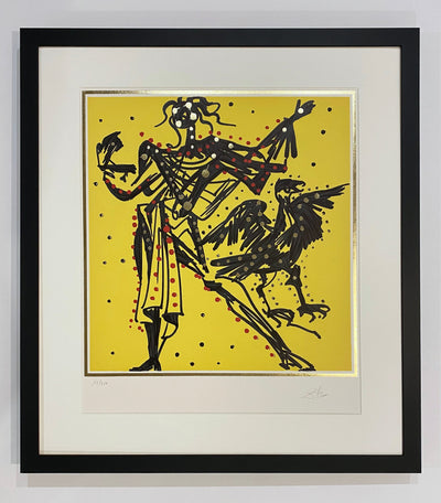 The surrealist Salvador Dali is considered to be one of the masters of 20th-Century art. His work juxtaposes a meticulous academic technique with depictions of hallucinatory characters in fantastic dreamscapes. He described his art as 'hand-painted dream photographs,' and had certain preferred and recurring images, such as the human figure with half-open drawers protruding from it, burning giraffes, and watches bent and flowing as if made from melting wax. Salvador Domenec Felip Jacint Dali Domenech was born May 11, 1904 in Figueras, Catalonia, Spain. His father, a prominent notary, encouraged his artistic inclinations and arranged for drawing lessons at age ten from the Spanish impressionist painter, Ramon Pichot. At eighteen, Dali moved to Madrid to study painting at the Academy of Arts. He developed a reputation as an eccentric, attracting attention with his manner of dress, hairstyle, and provocative comments on art. The artist experimented with forms of Cubism and Dadaism during his studies. Dali was expelled before final exams, after asserting that those judging his work were not competent enough to grade him. After leaving the Academy, Dali went to Paris where he met Spanish painters Pablo Picasso and Joan Miro. He established himself as the principal figure of a group of surrealist artists grouped around French poet Andre Breton. The surrealists hailed what Dali called the 'paranoiac-critical' method of accessing the subconscious for greater artistic creativity. Essentially, it is the ability of the artist or the viewer to perceive multiple images within the same configuration and a process through which Dali found new and unique ways to view the world around him. Years later Breton turned away from Dali, accusing him of supporting fascism, excessive self-presentation, and financial greediness. He was officially expelled from the group in 1934, in part because of his controversial political views, and was henceforth spoken about by the surrealists in past-tense, as if he were dead. Breton later coined the nickname Avida Dollars for Dali, an anagram of his name meaning 'greedy for dollars.' In addition to Surrealism, psychologist Dr. Sigmund Freud's theory of the unconscious -introduced to Dali in Freud's book The Interpretation of Dreams- also strongly influenced Dali's work and philosophy. Throughout the 1920s and early 1930s, Dali perfected the personal style that made him famous: a world of the unconscious that is recalled during one's dreams. In his work, he would juxtapose incongruous, unrelated, and often bizarre objects against desolate landscapes. This disturbing blend of precise realism and dreamlike fantasy became his hallmark. In 1929, Dali met his wife-to-be Gala. Gala (born Elena Ivanovna Diakonova), a Russian immigrant eleven years his senior, was then married to the surrealist poet Paul Éluard. Dali and Gala were married in a civil service in 1934, and again in a church after Eluard's death. Gala was Dali's muse, inspiration, lover, and model, as well as his business manager. Dali had his first one-man show in New York in 1933. With a $500 loan from Pablo Picasso, Dali was able to visit the United States for the first time a year later. In the late 1930s, he made several trips to Italy to study the art of the sixteenth and seventeenth centuries, eventually becaming an admirer of Raphael. In 1940, Dali and Gala claimed permanent residency in the United States in order to evade World War II. During his eight years in the U.S., Dali found great success, having a series of spectacular exhibitions, including a retrospective show at the Museum of Modern Art in New York. He also understood how the media worked and used it to its full potential. His attention seeking comments and flamboyant appearance -a long cape, walking stick, haughty expression, and upturned waxed mustache- helped raise him to celebrity status. He once famously said: "Every morning upon awakening, I experience a supreme pleasure: that of being Salvador Dali." His persona brought him numerous patrons. He executed portraits commissioned by celebrities such as Helena Rubinstein or Jack Warner, designed jewelry for Coco Chanel, and even storyboarded the Walt Disney short film Destiny and designed a dream sequence for Alfred Hitchcock's Spellbound. Dali had been producing limited edition prints as early as the 1930s, however the images he created in the 1960s with publishers Sidney and Phyllis Lucas are considered by collectors the apex of Dali's lithographs. His publishers encouraged the incorporation of classical themes with Surrealism, and together they assembled fascinating graphic works. Gala died in 1982, and Dali's health deteriorated thereafter. He suffered from palsy, and had injuries from a suspicious fire in his house in Pubol in 1984. The end of his life was spent in seclusion, first in Pubol and later in his apartments at Torre Galatea. Dali died on January 23, 1989 in his birth town, Figueras.