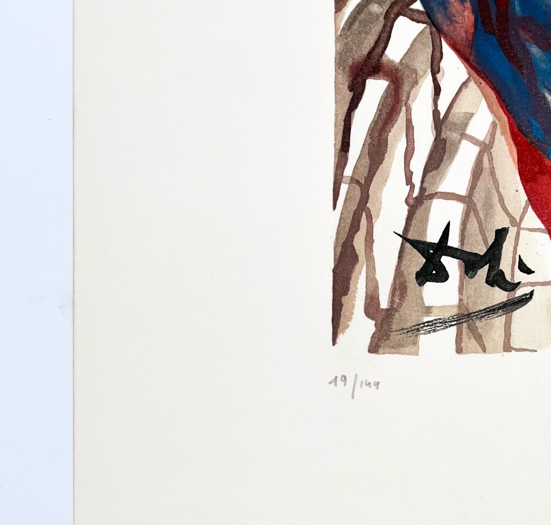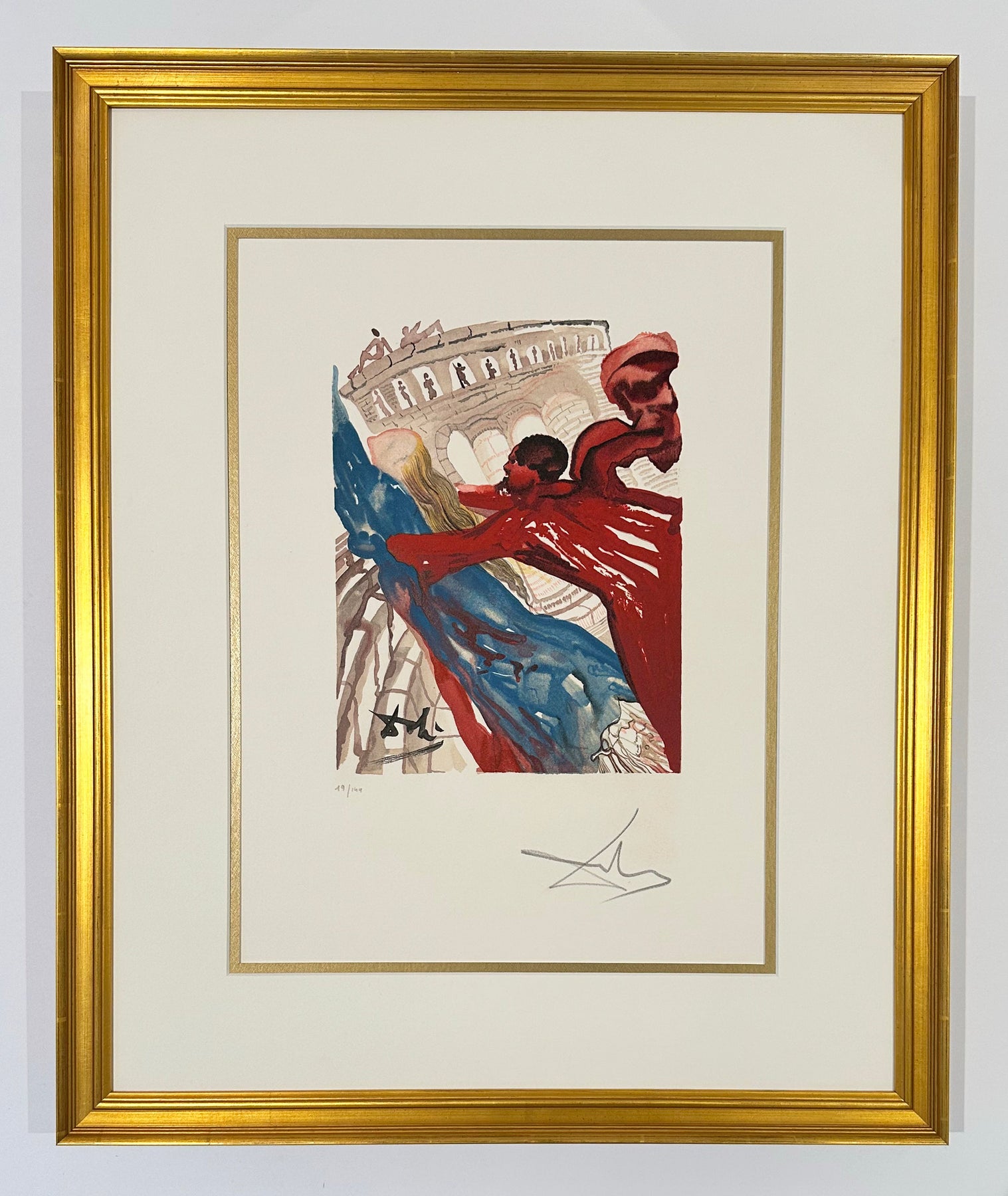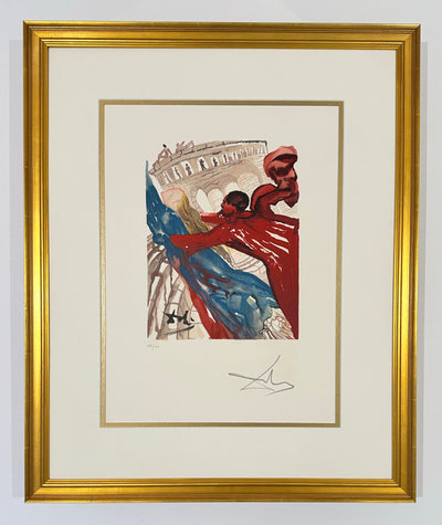 The surrealist Salvador Dali is considered to be one of the masters of 20th-Century art. His work juxtaposes a meticulous academic technique with depictions of hallucinatory characters in fantastic dreamscapes. He described his art as 'hand-painted dream photographs,' and had certain preferred and recurring images, such as the human figure with half-open drawers protruding from it, burning giraffes, and watches bent and flowing as if made from melting wax. Salvador Domenec Felip Jacint Dali Domenech was born May 11, 1904 in Figueras, Catalonia, Spain. His father, a prominent notary, encouraged his artistic inclinations and arranged for drawing lessons at age ten from the Spanish impressionist painter, Ramon Pichot. At eighteen, Dali moved to Madrid to study painting at the Academy of Arts. He developed a reputation as an eccentric, attracting attention with his manner of dress, hairstyle, and provocative comments on art. The artist experimented with forms of Cubism and Dadaism during his studies. Dali was expelled before final exams, after asserting that those judging his work were not competent enough to grade him. After leaving the Academy, Dali went to Paris where he met Spanish painters Pablo Picasso and Joan Miro. He established himself as the principal figure of a group of surrealist artists grouped around French poet Andre Breton. The surrealists hailed what Dali called the 'paranoiac-critical' method of accessing the subconscious for greater artistic creativity. Essentially, it is the ability of the artist or the viewer to perceive multiple images within the same configuration and a process through which Dali found new and unique ways to view the world around him. Years later Breton turned away from Dali, accusing him of supporting fascism, excessive self-presentation, and financial greediness. He was officially expelled from the group in 1934, in part because of his controversial political views, and was henceforth spoken about by the surrealists in past-tense, as if he were dead. Breton later coined the nickname Avida Dollars for Dali, an anagram of his name meaning 'greedy for dollars.' In addition to Surrealism, psychologist Dr. Sigmund Freud's theory of the unconscious -introduced to Dali in Freud's book The Interpretation of Dreams- also strongly influenced Dali's work and philosophy. Throughout the 1920s and early 1930s, Dali perfected the personal style that made him famous: a world of the unconscious that is recalled during one's dreams. In his work, he would juxtapose incongruous, unrelated, and often bizarre objects against desolate landscapes. This disturbing blend of precise realism and dreamlike fantasy became his hallmark. In 1929, Dali met his wife-to-be Gala. Gala (born Elena Ivanovna Diakonova), a Russian immigrant eleven years his senior, was then married to the surrealist poet Paul Éluard. Dali and Gala were married in a civil service in 1934, and again in a church after Eluard's death. Gala was Dali's muse, inspiration, lover, and model, as well as his business manager. Dali had his first one-man show in New York in 1933. With a $500 loan from Pablo Picasso, Dali was able to visit the United States for the first time a year later. In the late 1930s, he made several trips to Italy to study the art of the sixteenth and seventeenth centuries, eventually becaming an admirer of Raphael. In 1940, Dali and Gala claimed permanent residency in the United States in order to evade World War II. During his eight years in the U.S., Dali found great success, having a series of spectacular exhibitions, including a retrospective show at the Museum of Modern Art in New York. He also understood how the media worked and used it to its full potential. His attention seeking comments and flamboyant appearance -a long cape, walking stick, haughty expression, and upturned waxed mustache- helped raise him to celebrity status. He once famously said: "Every morning upon awakening, I experience a supreme pleasure: that of being Salvador Dali." His persona brought him numerous patrons. He executed portraits commissioned by celebrities such as Helena Rubinstein or Jack Warner, designed jewelry for Coco Chanel, and even storyboarded the Walt Disney short film Destiny and designed a dream sequence for Alfred Hitchcock's Spellbound. Dali had been producing limited edition prints as early as the 1930s, however the images he created in the 1960s with publishers Sidney and Phyllis Lucas are considered by collectors the apex of Dali's lithographs. His publishers encouraged the incorporation of classical themes with Surrealism, and together they assembled fascinating graphic works. Gala died in 1982, and Dali's health deteriorated thereafter. He suffered from palsy, and had injuries from a suspicious fire in his house in Pubol in 1984. The end of his life was spent in seclusion, first in Pubol and later in his apartments at Torre Galatea. Dali died on January 23, 1989 in his birth town, Figueras.