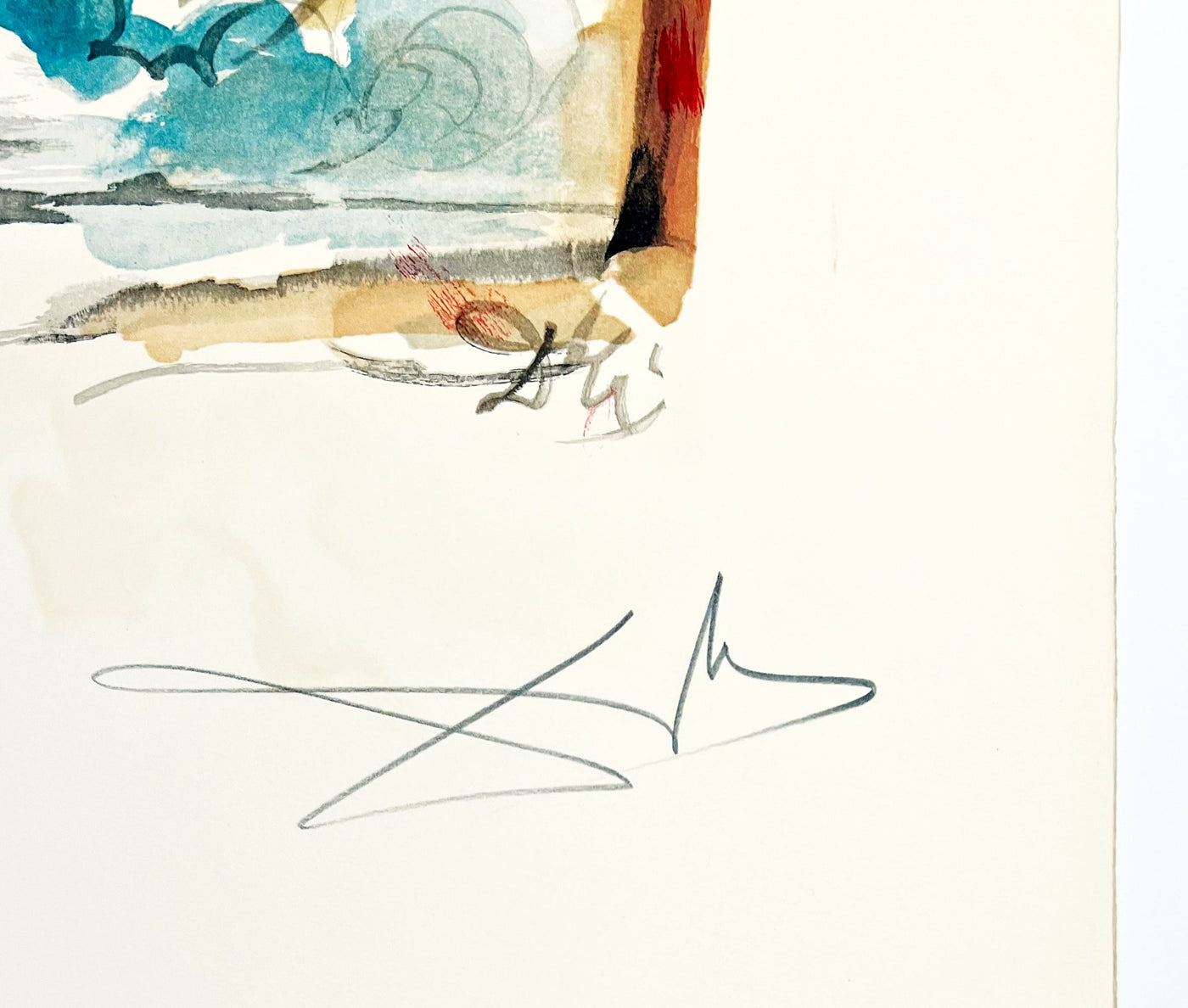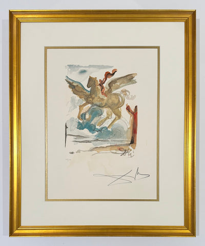 The surrealist Salvador Dali is considered to be one of the masters of 20th-Century art. His work juxtaposes a meticulous academic technique with depictions of hallucinatory characters in fantastic dreamscapes. He described his art as 'hand-painted dream photographs,' and had certain preferred and recurring images, such as the human figure with half-open drawers protruding from it, burning giraffes, and watches bent and flowing as if made from melting wax. Salvador Domenec Felip Jacint Dali Domenech was born May 11, 1904 in Figueras, Catalonia, Spain. His father, a prominent notary, encouraged his artistic inclinations and arranged for drawing lessons at age ten from the Spanish impressionist painter, Ramon Pichot. At eighteen, Dali moved to Madrid to study painting at the Academy of Arts. He developed a reputation as an eccentric, attracting attention with his manner of dress, hairstyle, and provocative comments on art. The artist experimented with forms of Cubism and Dadaism during his studies. Dali was expelled before final exams, after asserting that those judging his work were not competent enough to grade him. After leaving the Academy, Dali went to Paris where he met Spanish painters Pablo Picasso and Joan Miro. He established himself as the principal figure of a group of surrealist artists grouped around French poet Andre Breton. The surrealists hailed what Dali called the 'paranoiac-critical' method of accessing the subconscious for greater artistic creativity. Essentially, it is the ability of the artist or the viewer to perceive multiple images within the same configuration and a process through which Dali found new and unique ways to view the world around him. Years later Breton turned away from Dali, accusing him of supporting fascism, excessive self-presentation, and financial greediness. He was officially expelled from the group in 1934, in part because of his controversial political views, and was henceforth spoken about by the surrealists in past-tense, as if he were dead. Breton later coined the nickname Avida Dollars for Dali, an anagram of his name meaning 'greedy for dollars.' In addition to Surrealism, psychologist Dr. Sigmund Freud's theory of the unconscious -introduced to Dali in Freud's book The Interpretation of Dreams- also strongly influenced Dali's work and philosophy. Throughout the 1920s and early 1930s, Dali perfected the personal style that made him famous: a world of the unconscious that is recalled during one's dreams. In his work, he would juxtapose incongruous, unrelated, and often bizarre objects against desolate landscapes. This disturbing blend of precise realism and dreamlike fantasy became his hallmark. In 1929, Dali met his wife-to-be Gala. Gala (born Elena Ivanovna Diakonova), a Russian immigrant eleven years his senior, was then married to the surrealist poet Paul Éluard. Dali and Gala were married in a civil service in 1934, and again in a church after Eluard's death. Gala was Dali's muse, inspiration, lover, and model, as well as his business manager. Dali had his first one-man show in New York in 1933. With a $500 loan from Pablo Picasso, Dali was able to visit the United States for the first time a year later. In the late 1930s, he made several trips to Italy to study the art of the sixteenth and seventeenth centuries, eventually becaming an admirer of Raphael. In 1940, Dali and Gala claimed permanent residency in the United States in order to evade World War II. During his eight years in the U.S., Dali found great success, having a series of spectacular exhibitions, including a retrospective show at the Museum of Modern Art in New York. He also understood how the media worked and used it to its full potential. His attention seeking comments and flamboyant appearance -a long cape, walking stick, haughty expression, and upturned waxed mustache- helped raise him to celebrity status. He once famously said: "Every morning upon awakening, I experience a supreme pleasure: that of being Salvador Dali." His persona brought him numerous patrons. He executed portraits commissioned by celebrities such as Helena Rubinstein or Jack Warner, designed jewelry for Coco Chanel, and even storyboarded the Walt Disney short film Destiny and designed a dream sequence for Alfred Hitchcock's Spellbound. Dali had been producing limited edition prints as early as the 1930s, however the images he created in the 1960s with publishers Sidney and Phyllis Lucas are considered by collectors the apex of Dali's lithographs. His publishers encouraged the incorporation of classical themes with Surrealism, and together they assembled fascinating graphic works. Gala died in 1982, and Dali's health deteriorated thereafter. He suffered from palsy, and had injuries from a suspicious fire in his house in Pubol in 1984. The end of his life was spent in seclusion, first in Pubol and later in his apartments at Torre Galatea. Dali died on January 23, 1989 in his birth town, Figueras.