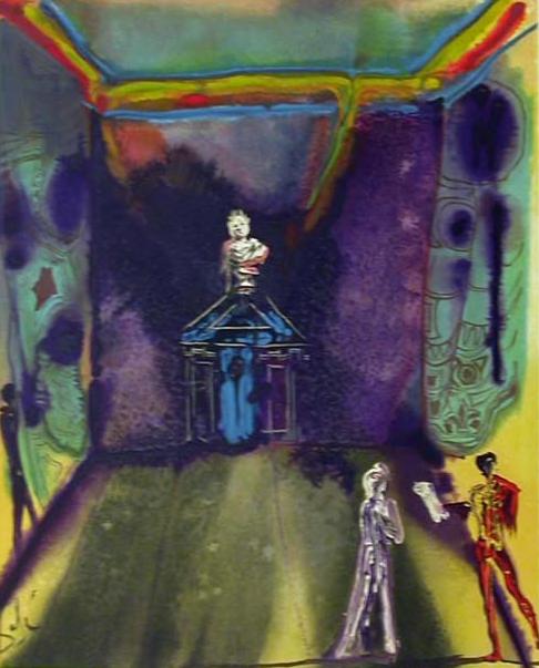 The surrealist Salvador Dali is considered to be one of the masters of 20th-Century art. His work juxtaposes a meticulous academic technique with depictions of hallucinatory characters in fantastic dreamscapes. He described his art as 'hand-painted dream photographs,' and had certain preferred and recurring images, such as the human figure with half-open drawers protruding from it, burning giraffes, and watches bent and flowing as if made from melting wax. Salvador Domenec Felip Jacint Dali Domenech was born May 11, 1904 in Figueras, Catalonia, Spain. His father, a prominent notary, encouraged his artistic inclinations and arranged for drawing lessons at age ten from the Spanish impressionist painter, Ramon Pichot. At eighteen, Dali moved to Madrid to study painting at the Academy of Arts. He developed a reputation as an eccentric, attracting attention with his manner of dress, hairstyle, and provocative comments on art. The artist experimented with forms of Cubism and Dadaism during his studies. Dali was expelled before final exams, after asserting that those judging his work were not competent enough to grade him. After leaving the Academy, Dali went to Paris where he met Spanish painters Pablo Picasso and Joan Miro. He established himself as the principal figure of a group of surrealist artists grouped around French poet Andre Breton. The surrealists hailed what Dali called the 'paranoiac-critical' method of accessing the subconscious for greater artistic creativity. Essentially, it is the ability of the artist or the viewer to perceive multiple images within the same configuration and a process through which Dali found new and unique ways to view the world around him. Years later Breton turned away from Dali, accusing him of supporting fascism, excessive self-presentation, and financial greediness. He was officially expelled from the group in 1934, in part because of his controversial political views, and was henceforth spoken about by the surrealists in past-tense, as if he were dead. Breton later coined the nickname Avida Dollars for Dali, an anagram of his name meaning 'greedy for dollars.' In addition to Surrealism, psychologist Dr. Sigmund Freud's theory of the unconscious -introduced to Dali in Freud's book The Interpretation of Dreams- also strongly influenced Dali's work and philosophy. Throughout the 1920s and early 1930s, Dali perfected the personal style that made him famous: a world of the unconscious that is recalled during one's dreams. In his work, he would juxtapose incongruous, unrelated, and often bizarre objects against desolate landscapes. This disturbing blend of precise realism and dreamlike fantasy became his hallmark. In 1929, Dali met his wife-to-be Gala. Gala (born Elena Ivanovna Diakonova), a Russian immigrant eleven years his senior, was then married to the surrealist poet Paul Éluard. Dali and Gala were married in a civil service in 1934, and again in a church after Eluard's death. Gala was Dali's muse, inspiration, lover, and model, as well as his business manager. Dali had his first one-man show in New York in 1933. With a $500 loan from Pablo Picasso, Dali was able to visit the United States for the first time a year later. In the late 1930s, he made several trips to Italy to study the art of the sixteenth and seventeenth centuries, eventually becaming an admirer of Raphael. In 1940, Dali and Gala claimed permanent residency in the United States in order to evade World War II. During his eight years in the U.S., Dali found great success, having a series of spectacular exhibitions, including a retrospective show at the Museum of Modern Art in New York. He also understood how the media worked and used it to its full potential. His attention seeking comments and flamboyant appearance -a long cape, walking stick, haughty expression, and upturned waxed mustache- helped raise him to celebrity status. He once famously said: "Every morning upon awakening, I experience a supreme pleasure: that of being Salvador Dali." His persona brought him numerous patrons. He executed portraits commissioned by celebrities such as Helena Rubinstein or Jack Warner, designed jewelry for Coco Chanel, and even storyboarded the Walt Disney short film Destiny and designed a dream sequence for Alfred Hitchcock's Spellbound. Dali had been producing limited edition prints as early as the 1930s, however the images he created in the 1960s with publishers Sidney and Phyllis Lucas are considered by collectors the apex of Dali's lithographs. His publishers encouraged the incorporation of classical themes with Surrealism, and together they assembled fascinating graphic works. Gala died in 1982, and Dali's health deteriorated thereafter. He suffered from palsy, and had injuries from a suspicious fire in his house in Pubol in 1984. The end of his life was spent in seclusion, first in Pubol and later in his apartments at Torre Galatea. Dali died on January 23, 1989 in his birth town, Figueras.