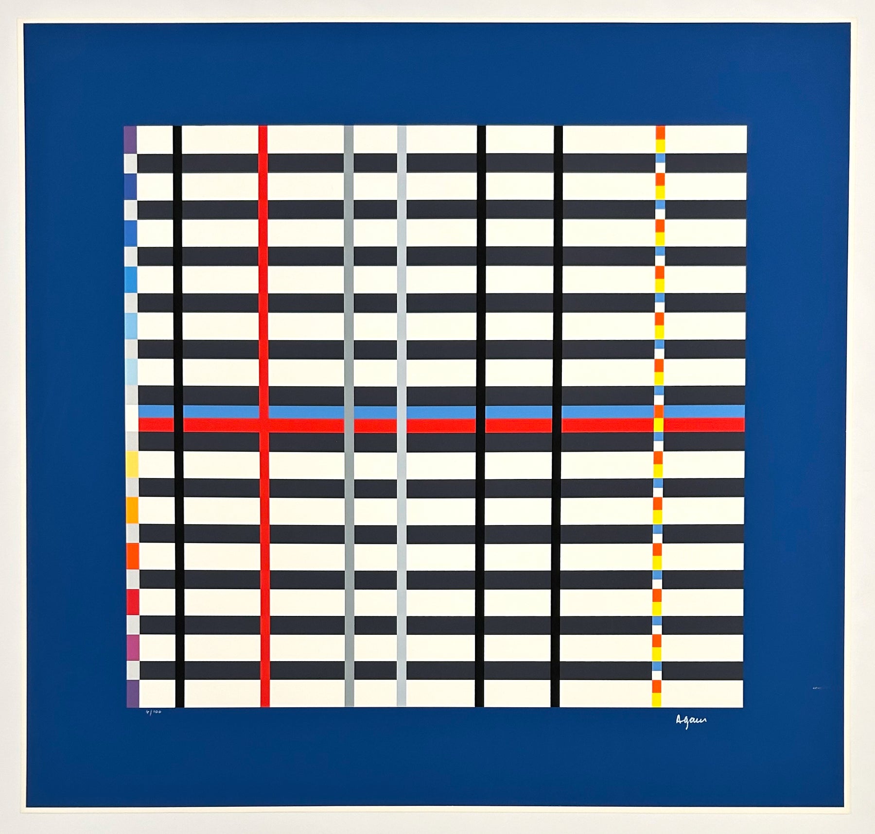Yaacov Agam, Hommage to Mondrian (Dark Blue), 1976, Signed, Serigraph in colors, Edition 4/100, 31 3/4" x 33 1/4" Framed Size, 26 1/2" x 28" Sheet Size